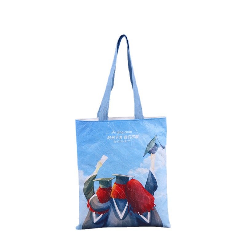 现货广告购物手提袋印LOGO揉纹杜邦纸帆布袋制定可水洗大容量冰包