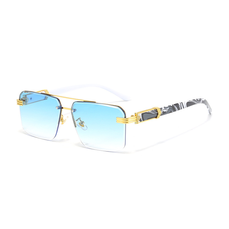 木纹腿男士钻石切边无框太阳镜 户外防紫外线sunglasses双梁墨镜