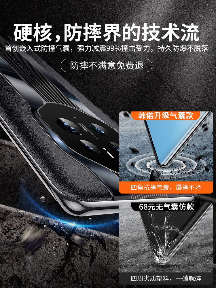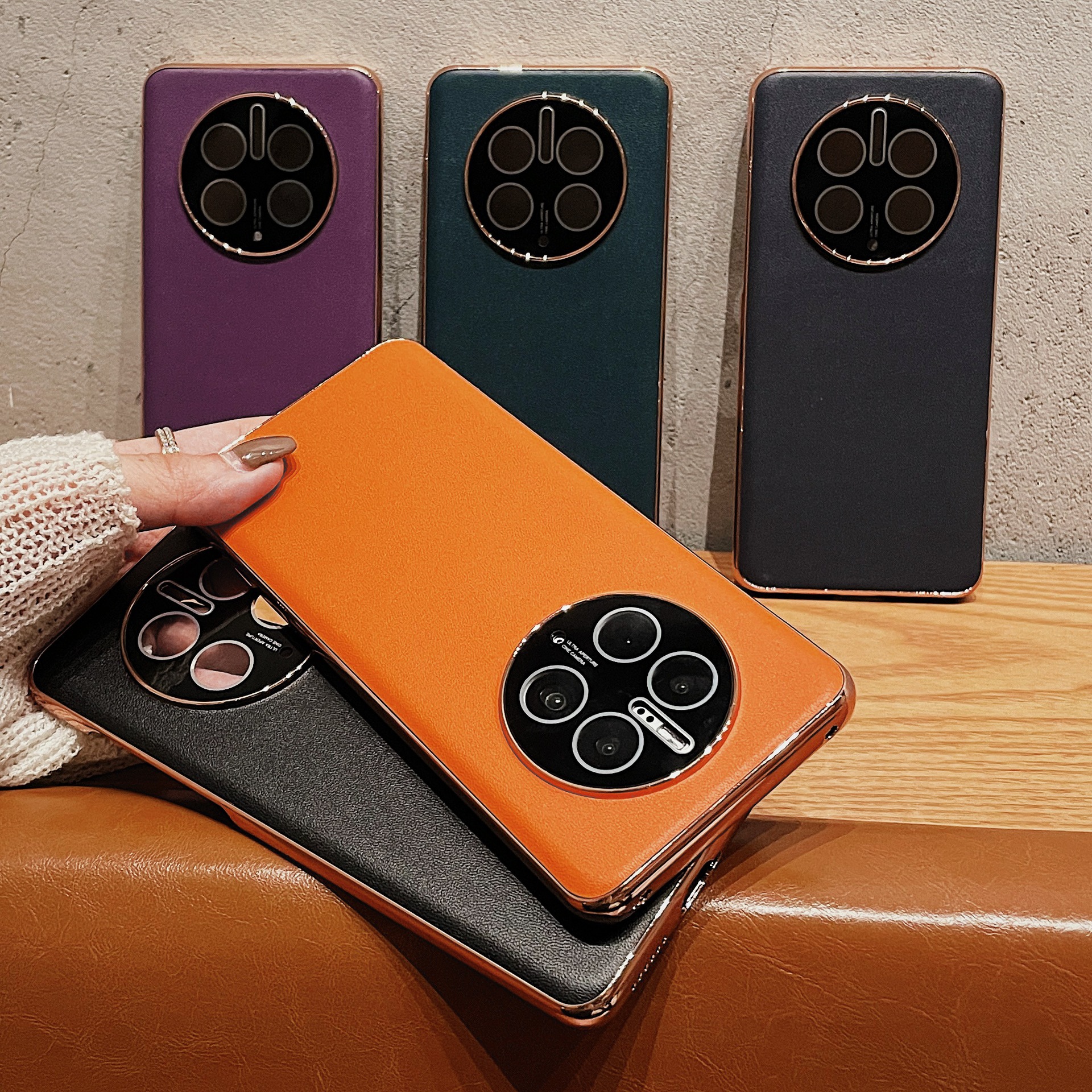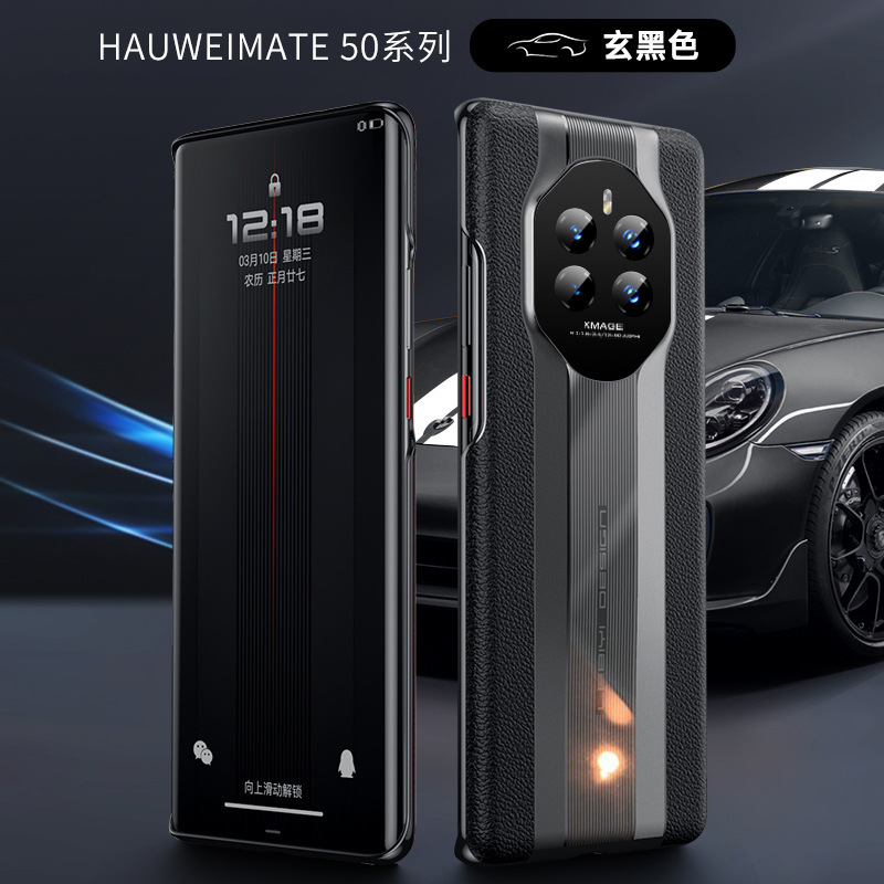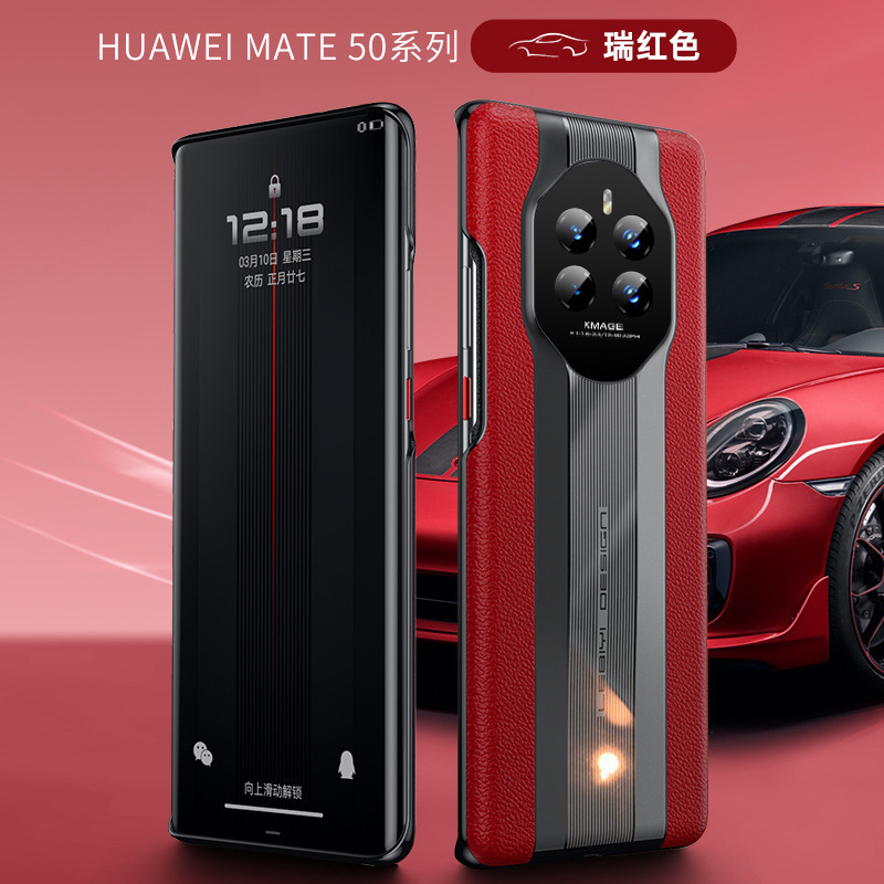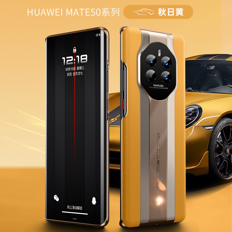 适用华为Mate60Pro电镀真皮秒变保时捷手机壳Mate50Rs皮革保护套