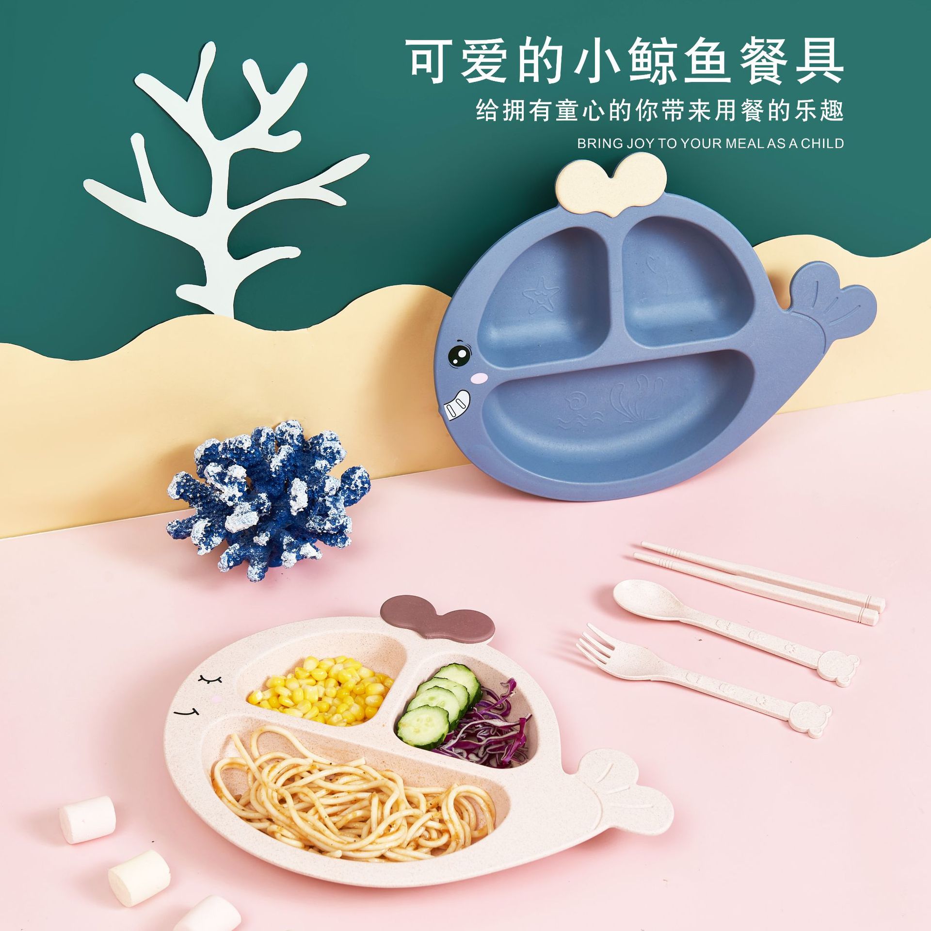 鲸鱼儿童餐盘卡通分格小学生吃饭碗幼儿园宝宝碗筷防摔餐具套装