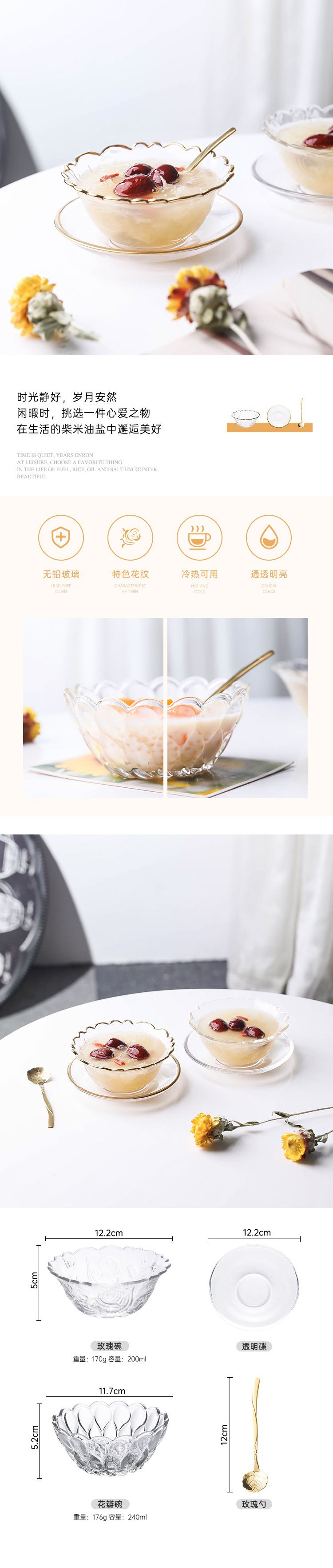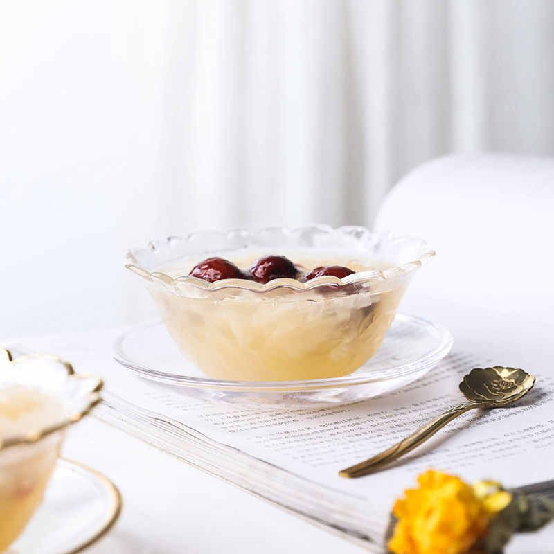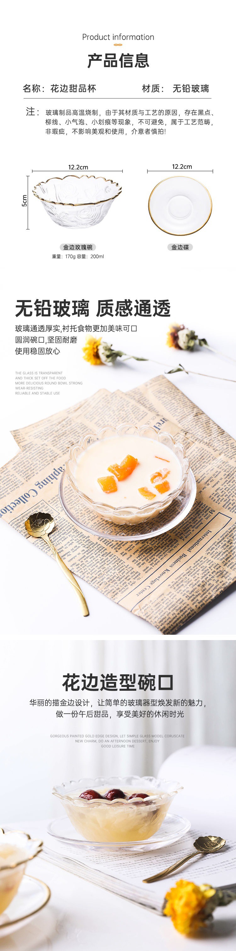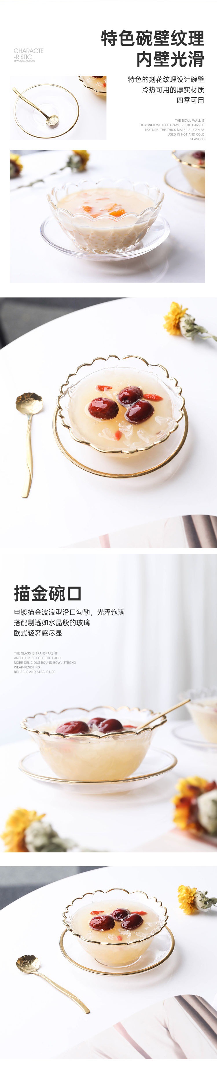 精致碗金边甜品糖水日式网红玻璃家用银耳花边养生粥燕窝盅独立站
