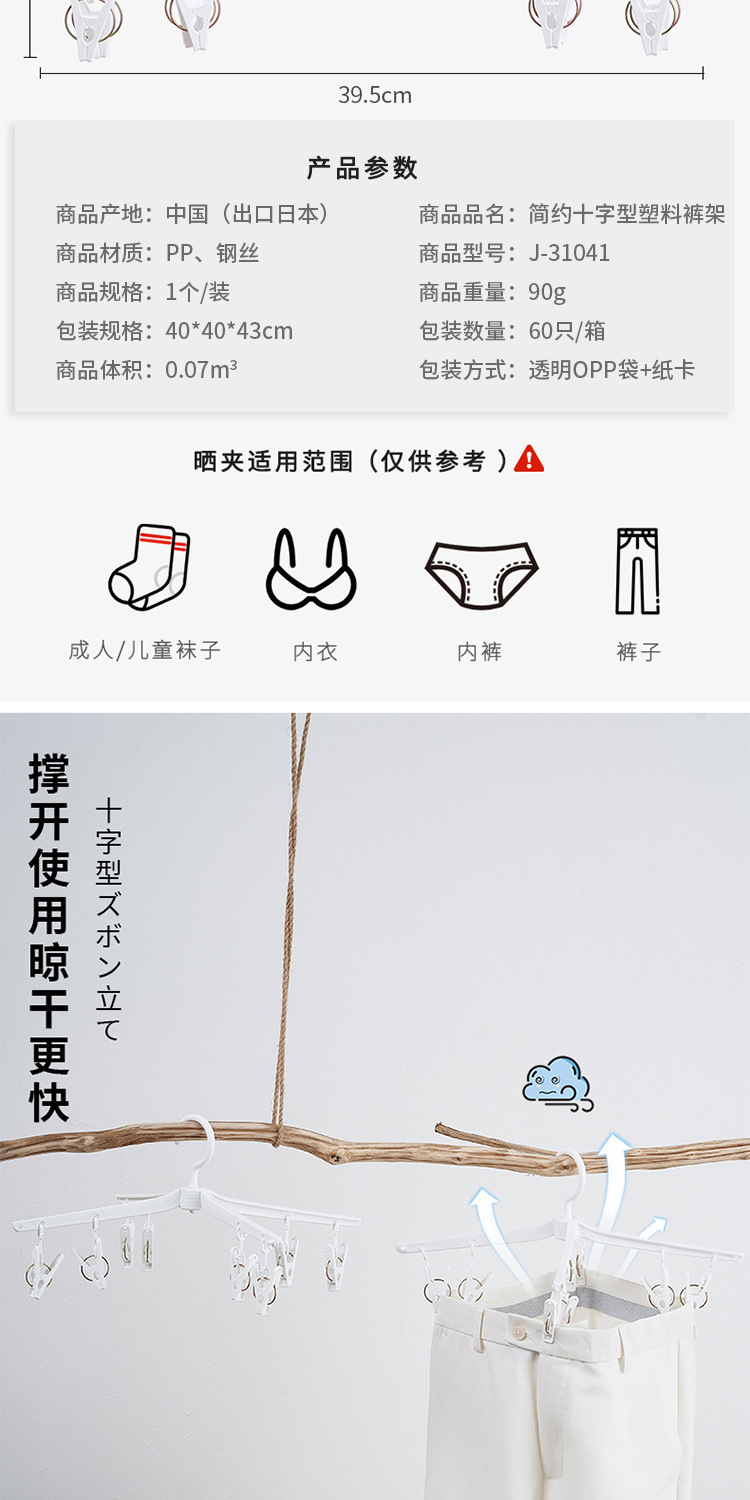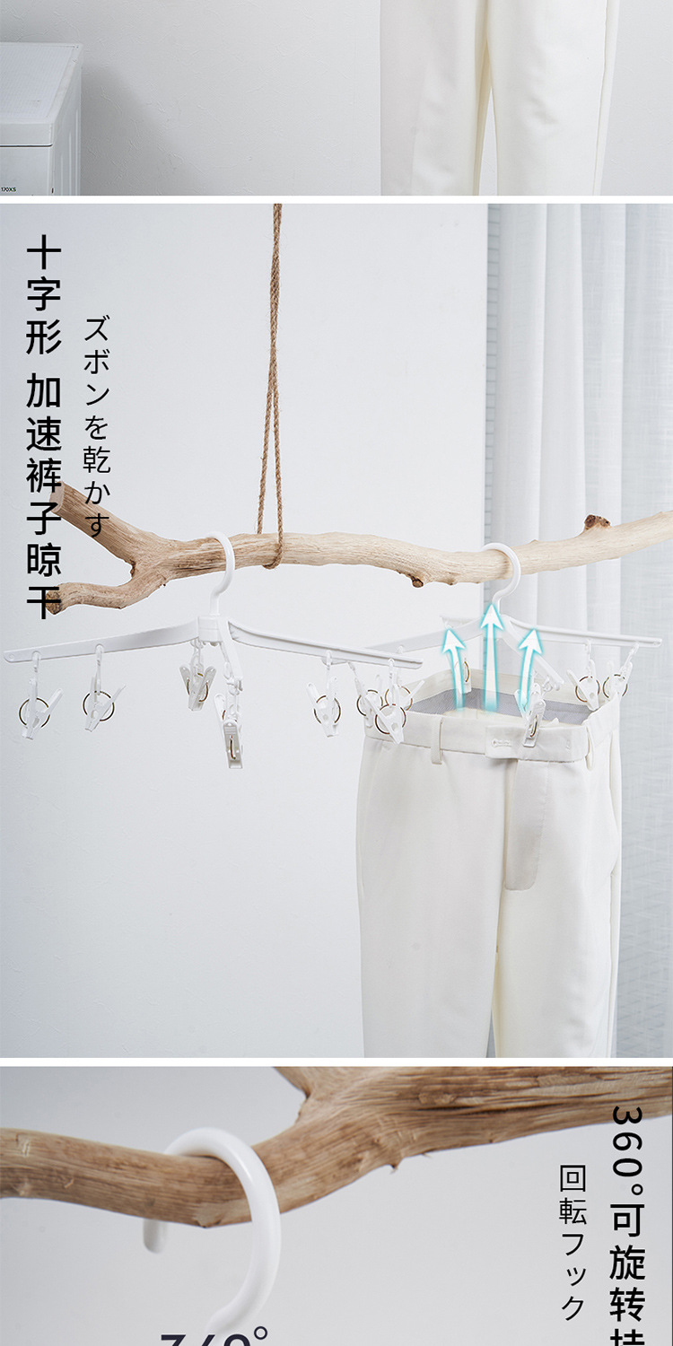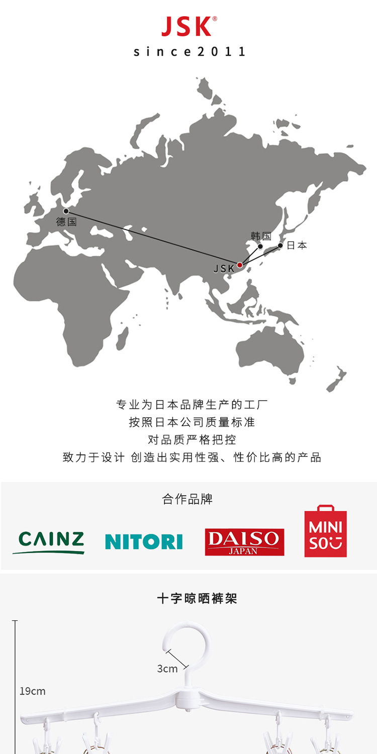 日本JSK十字衣架多功能裤架裤夹晾晒防风衣架家用可旋转带夹批发