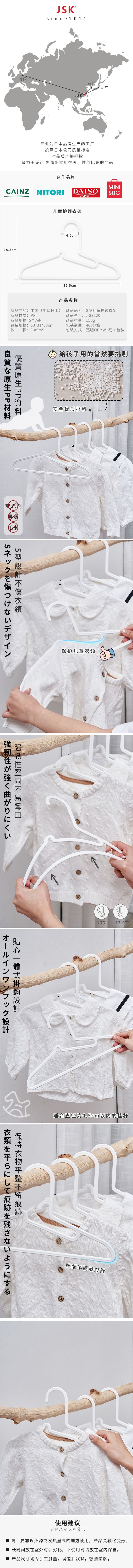 日本JSK护领儿童衣架加厚宝宝婴儿塑料衣撑衣服架小孩无痕衣架子