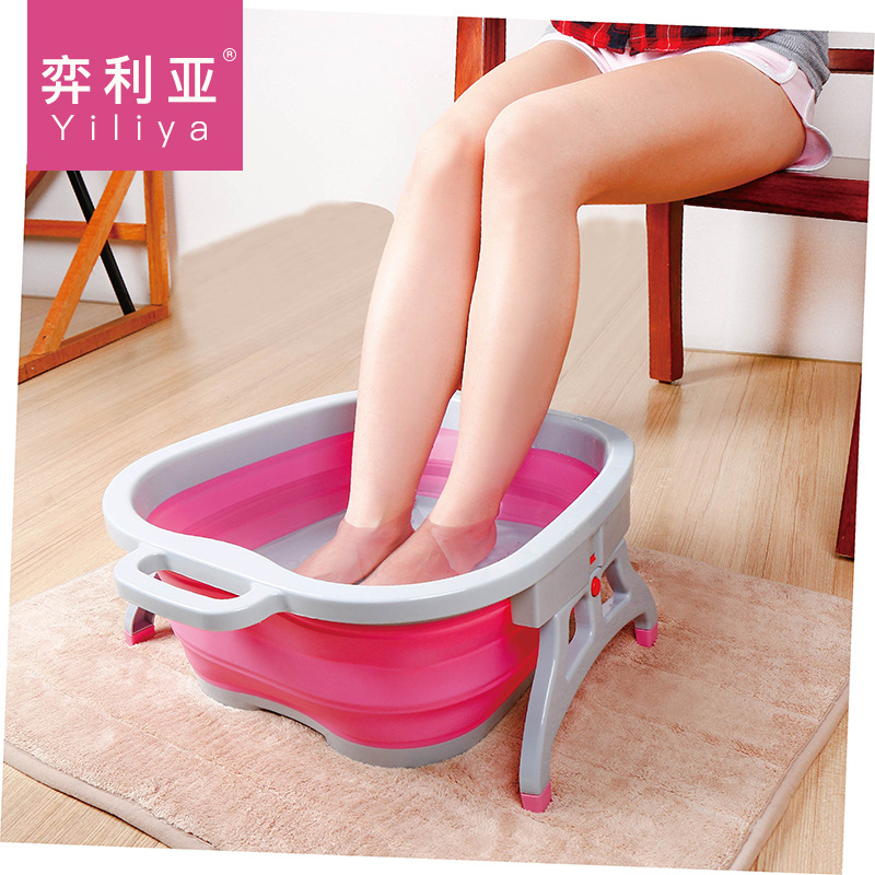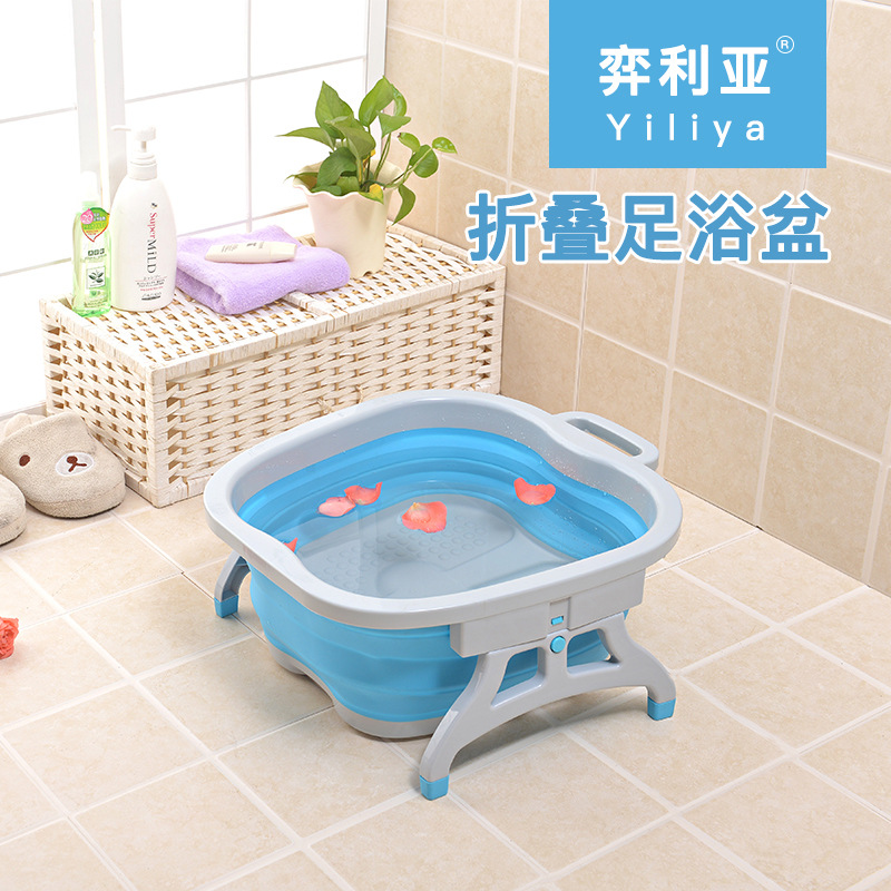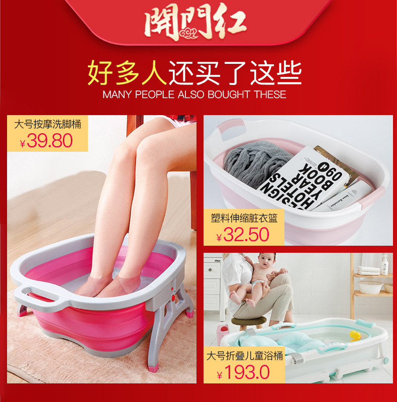 彩盒包装可折叠洗脚盆泡脚桶塑料脚底按摩桶便携式成人家用足浴盆