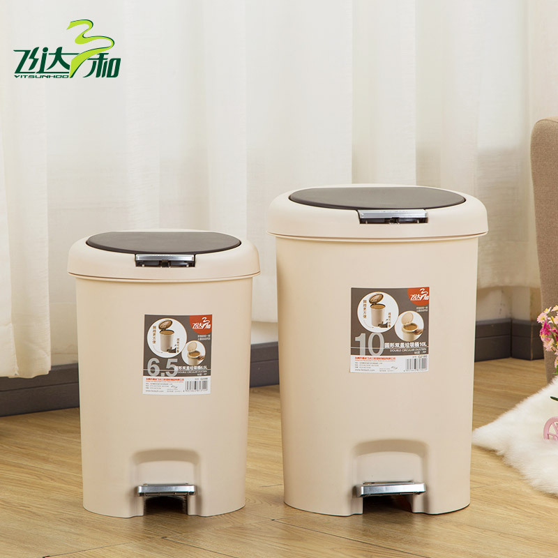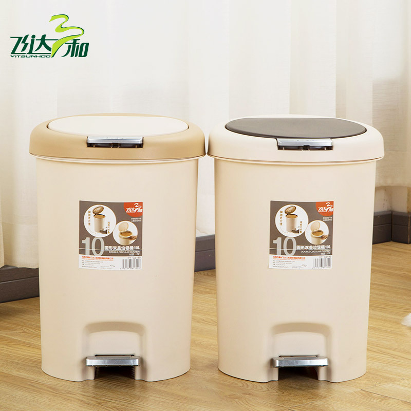 飞达三和跨境外贸欧式家用厨房创意卫生桶10L双盖脚踏垃圾桶批发