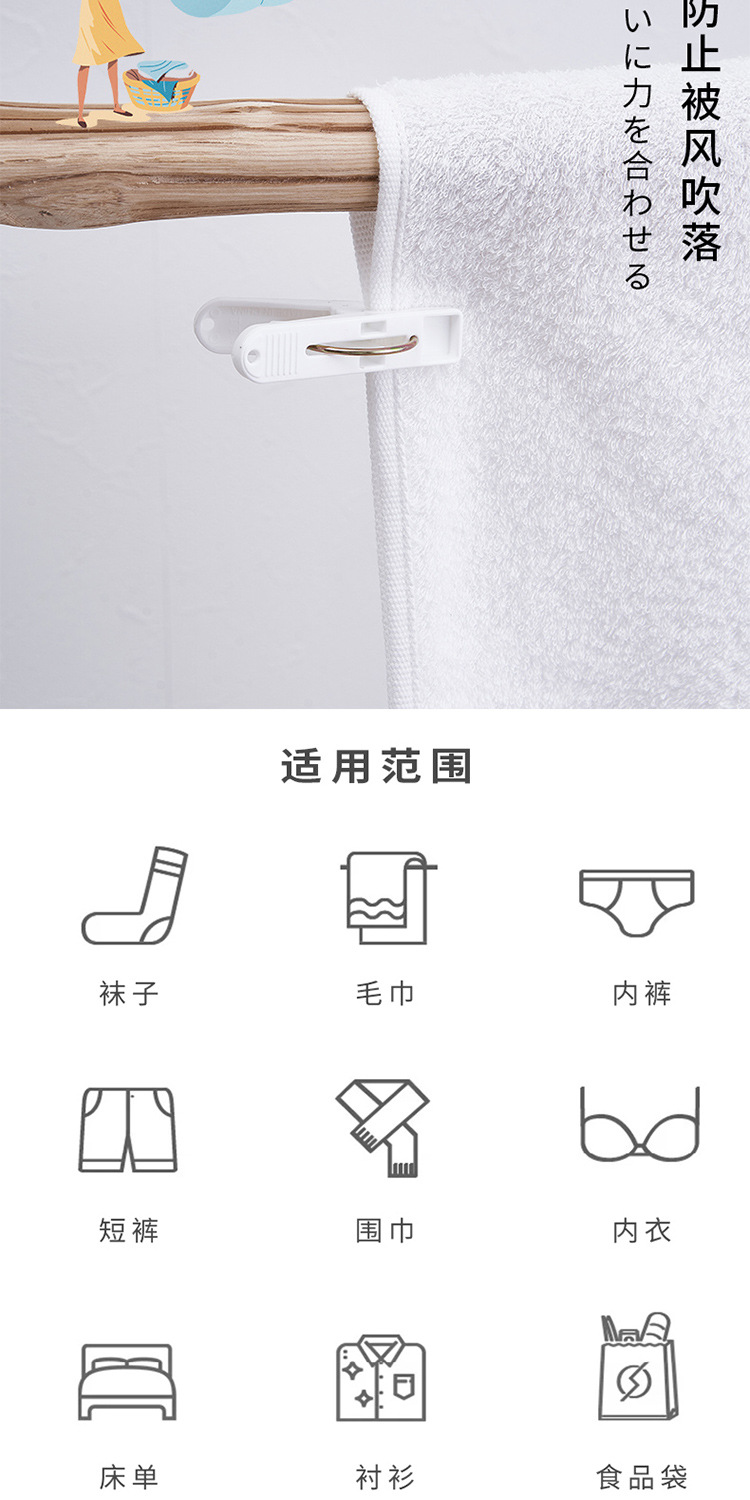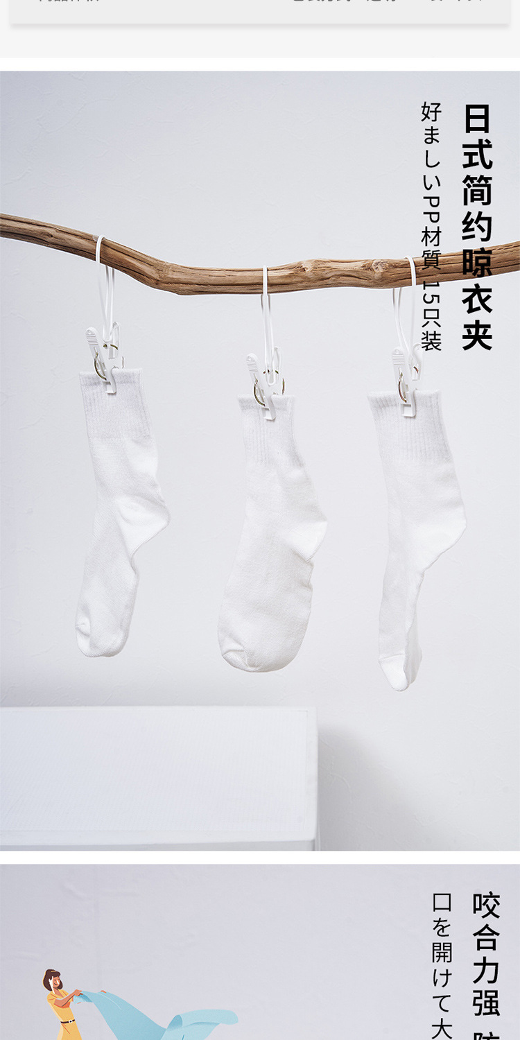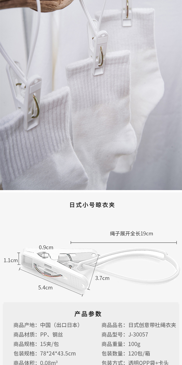 日本JSK 15个装旅游晾晒夹子带绳防风晾衣夹塑料衣夹晒毛巾袜子夹