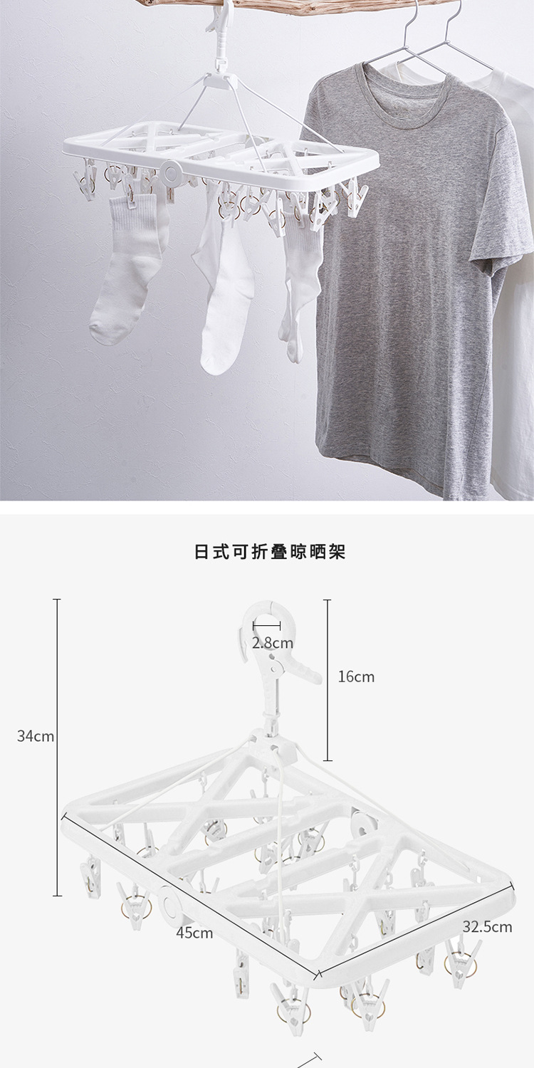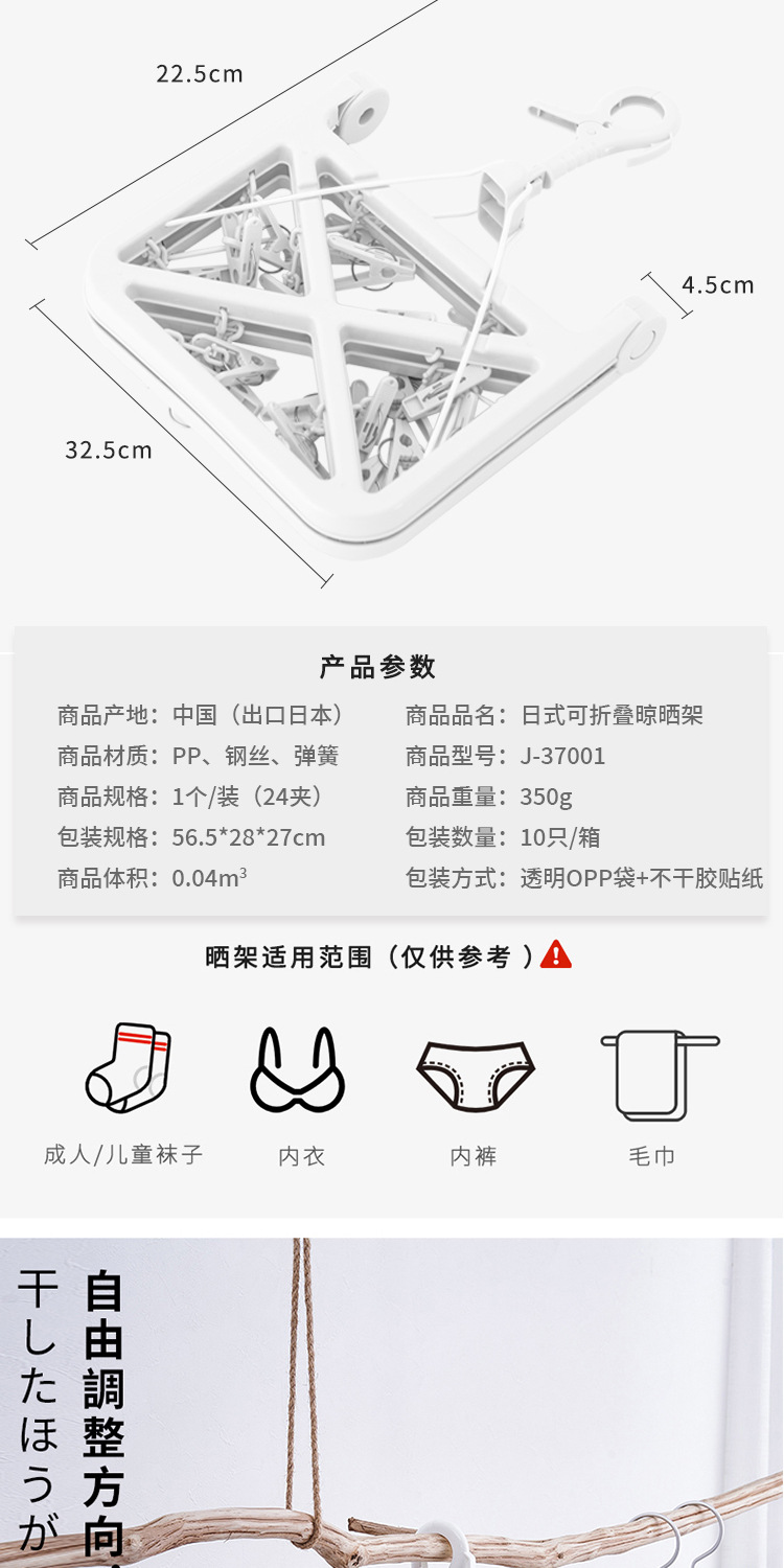 日本JSK24夹塑料成人防风可折叠衣架儿童宝宝裤袜家用多头晾衣架