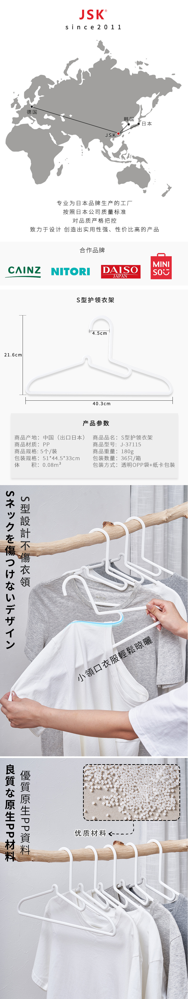 日本JSK护领衣架防肩角塑料衣挂无痕晾衣架衣柜衣服架家用挂衣撑