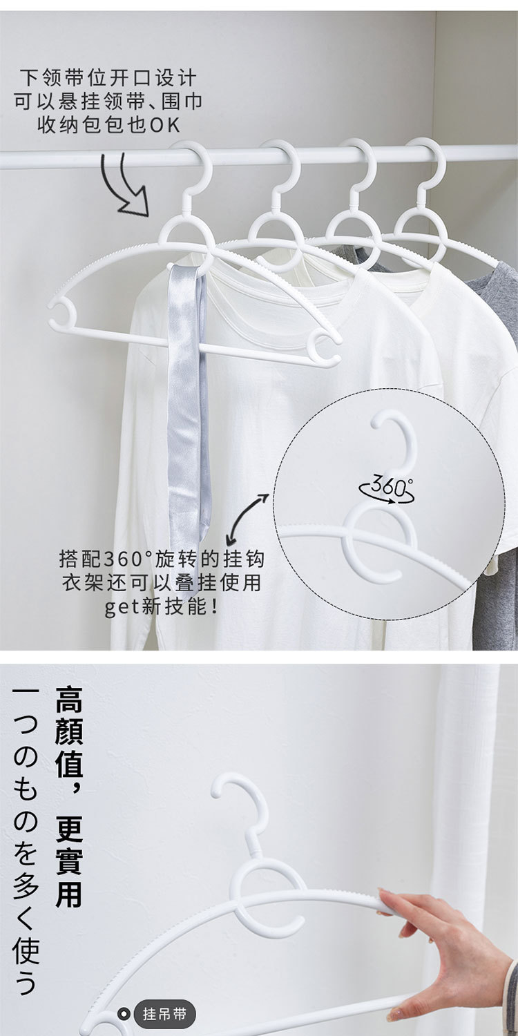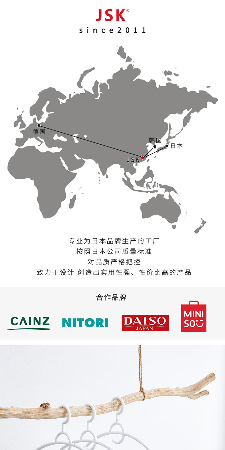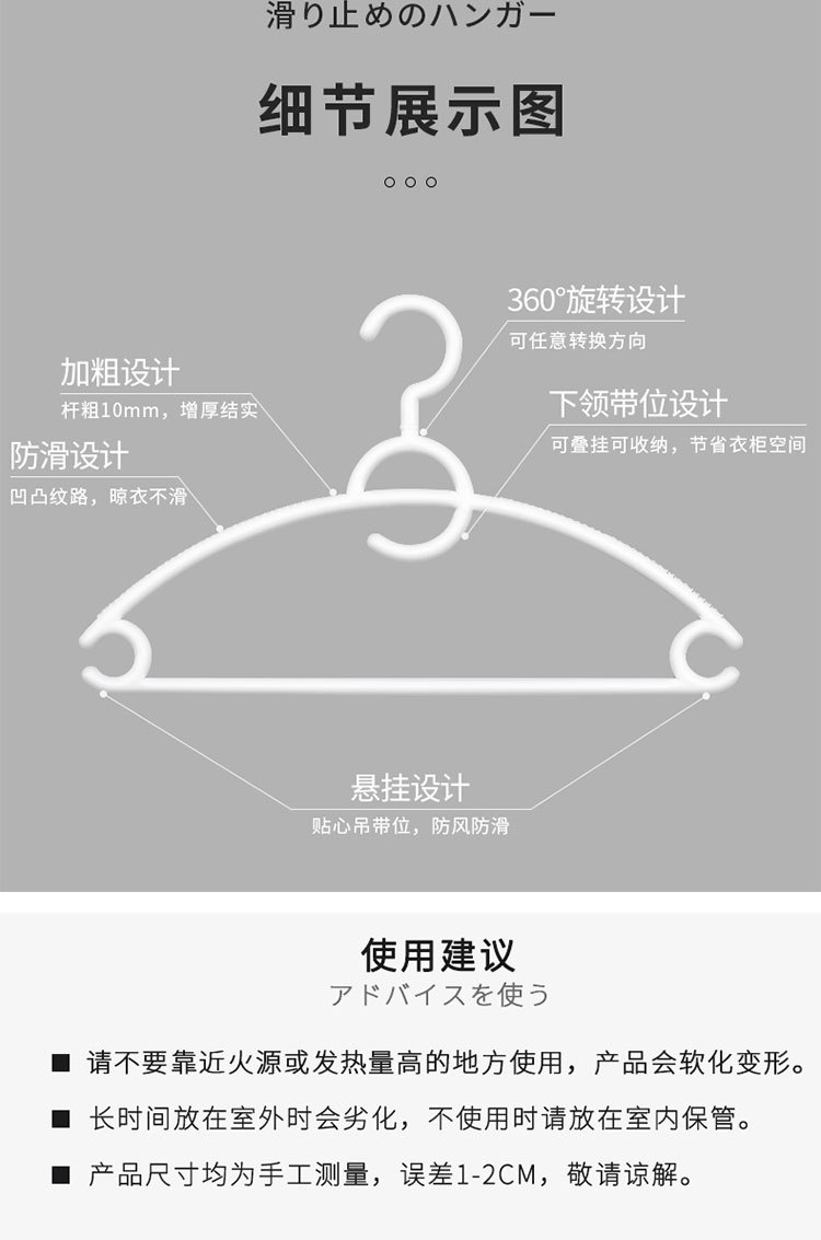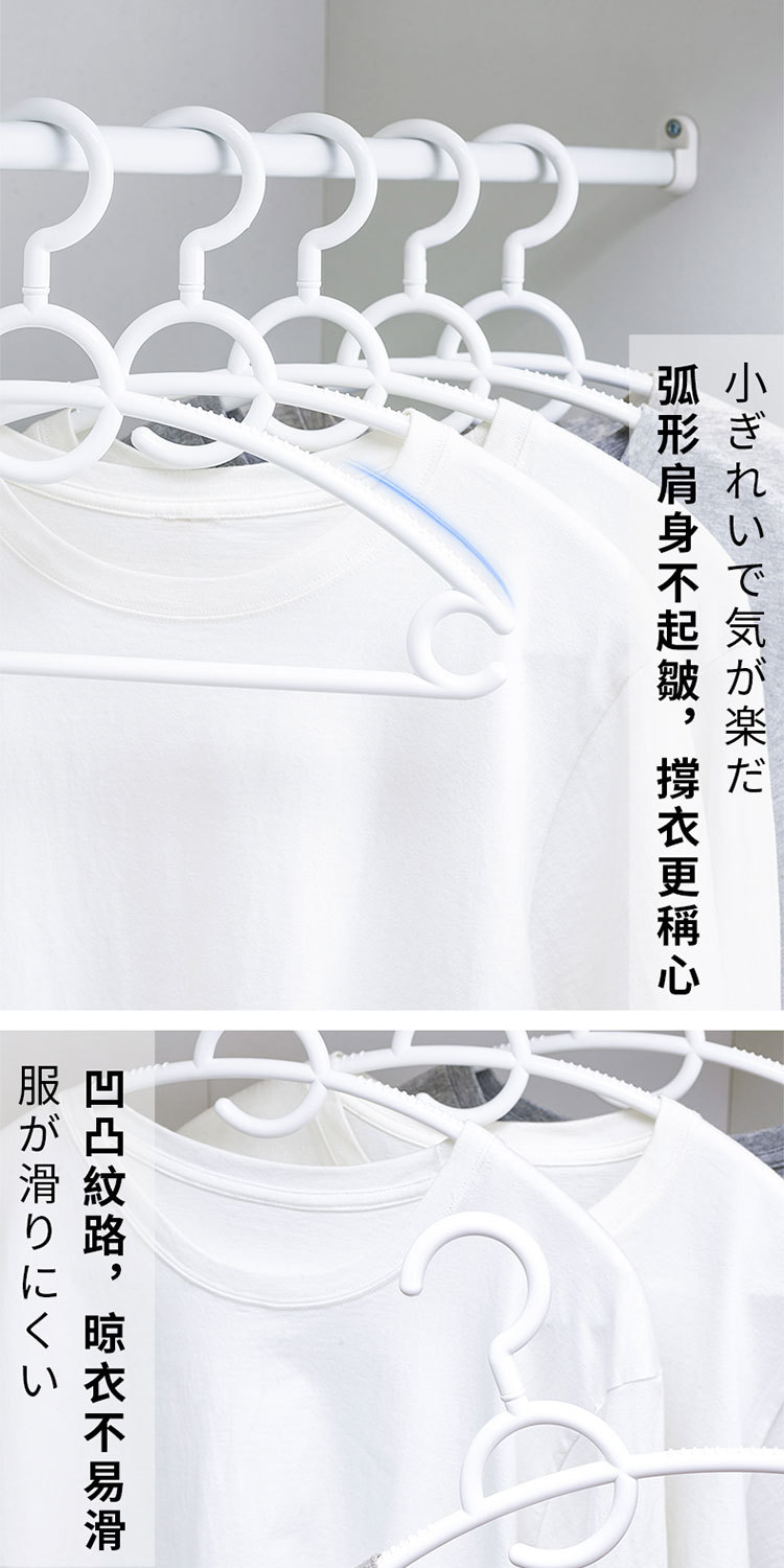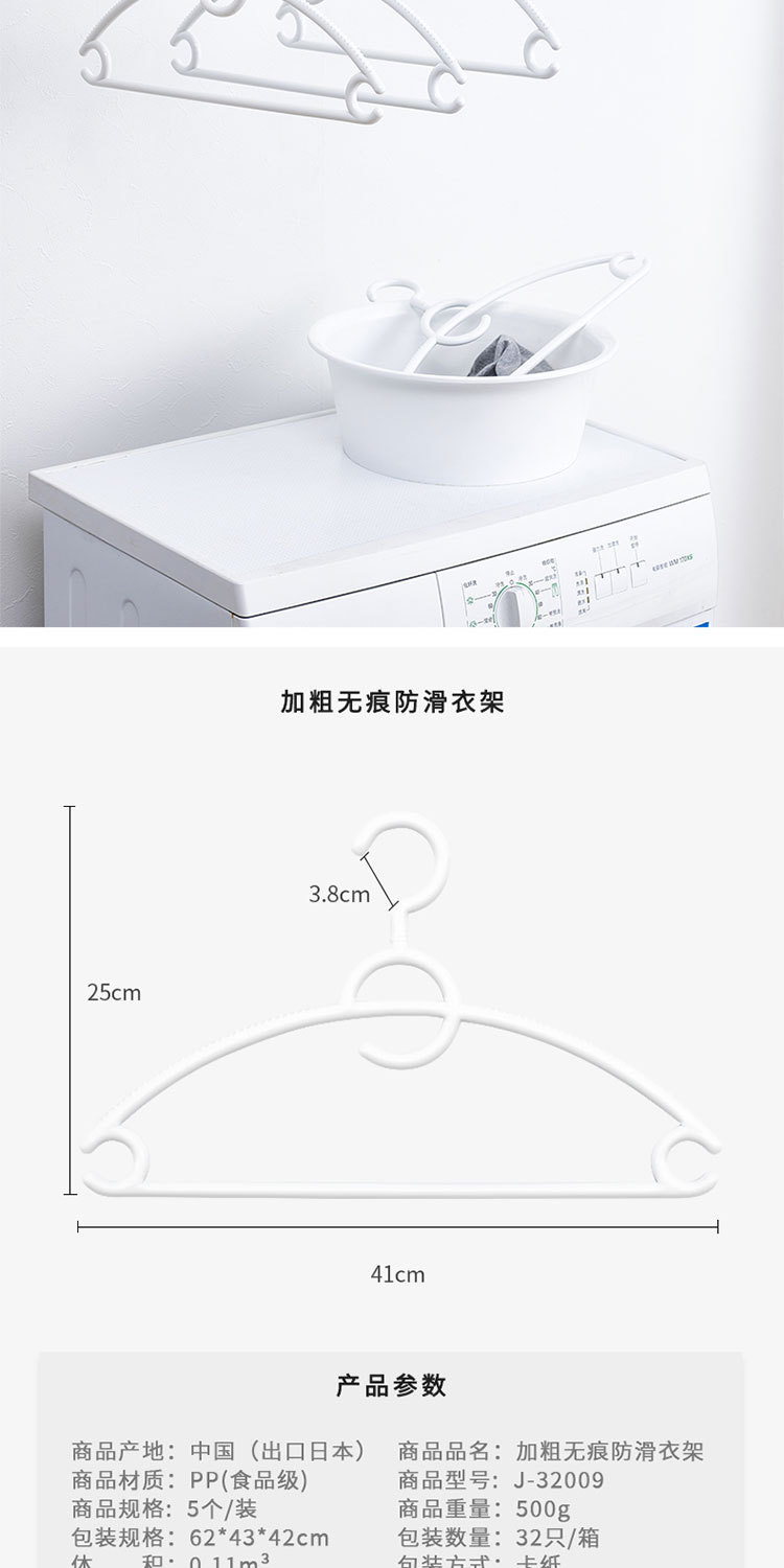 日本JSK 5个/扎41cm无痕防滑弧形 家用加粗 塑料衣架衬衫衣架批发