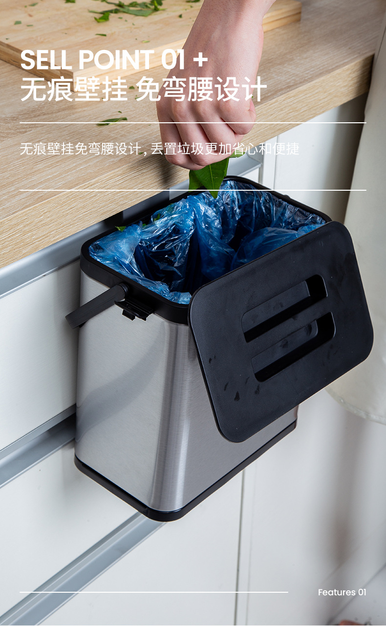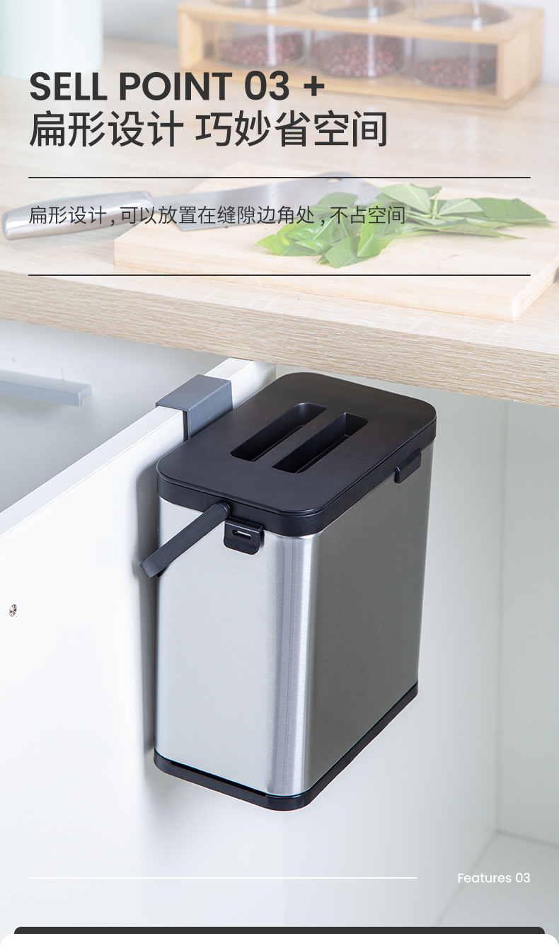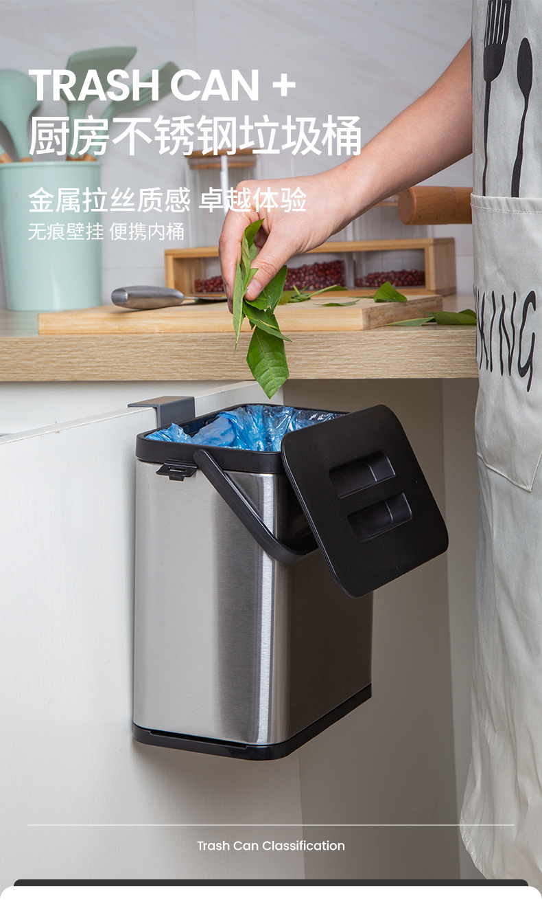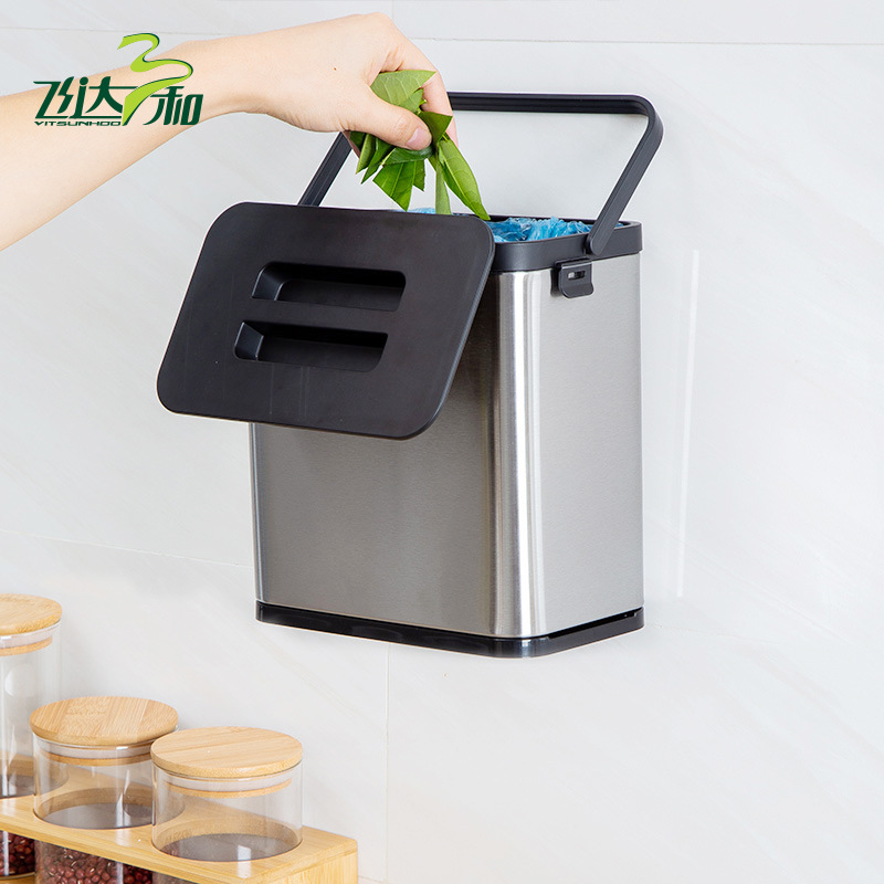 飞达三和家用不锈钢壁挂垃圾桶方形组合防潮防臭厨房卫生间垃圾桶
