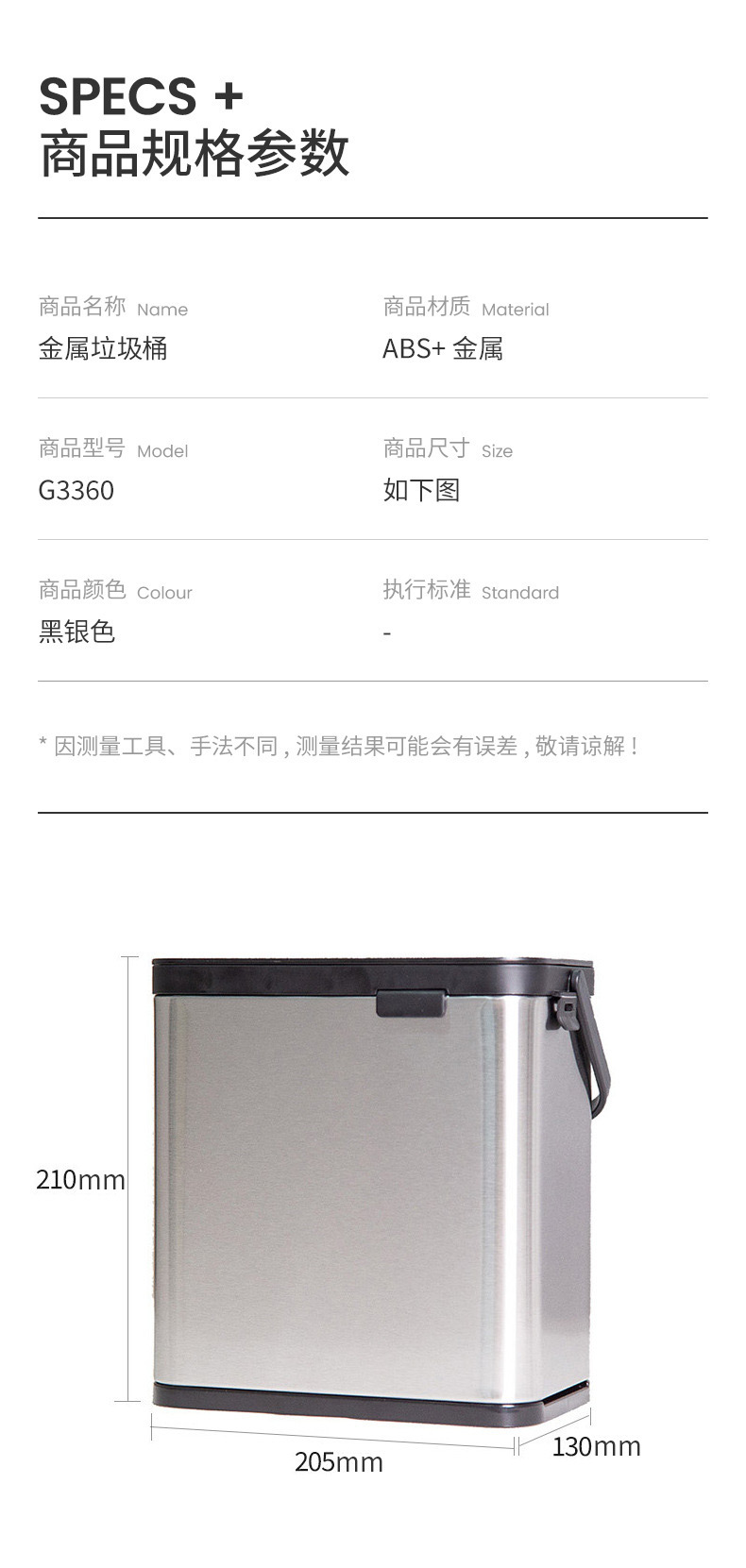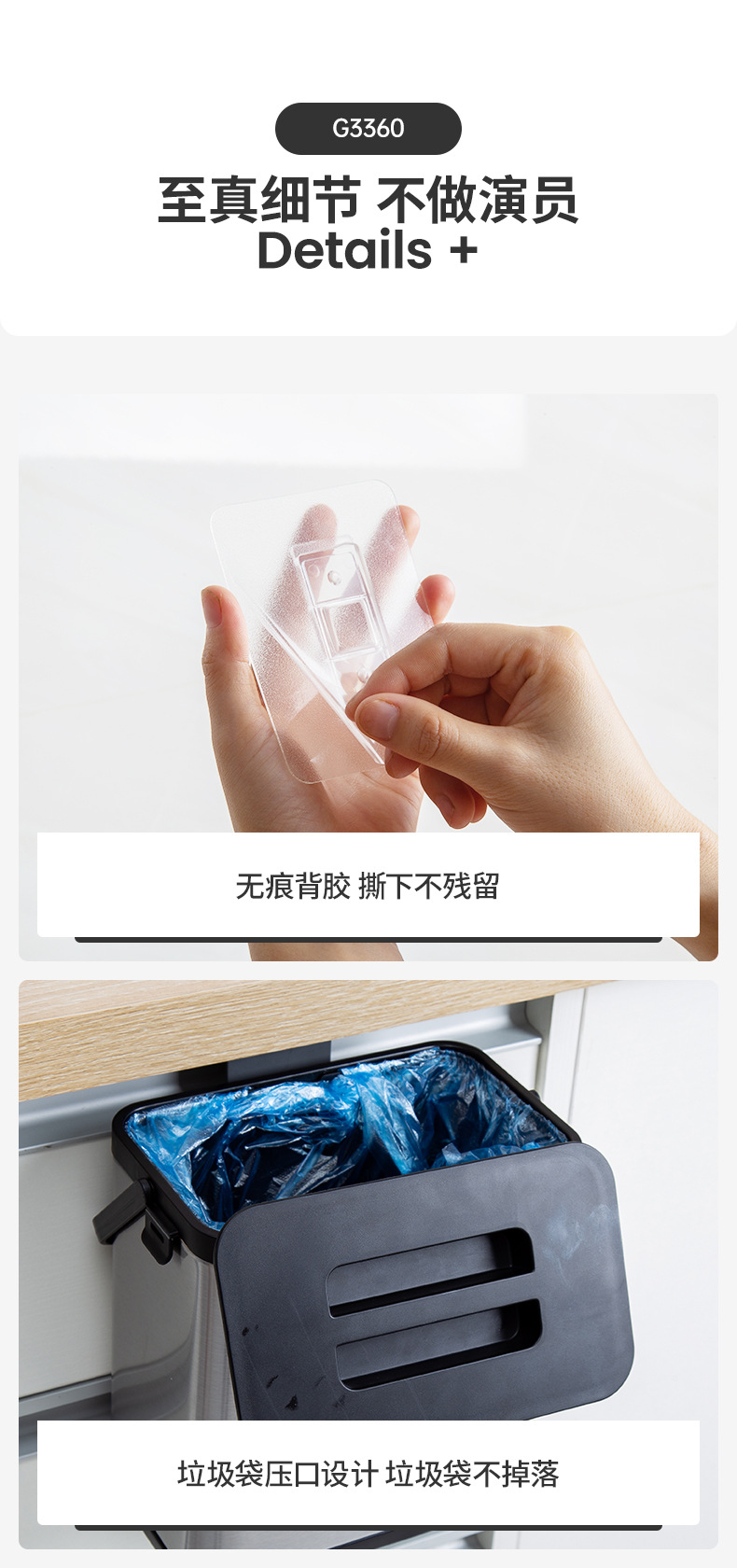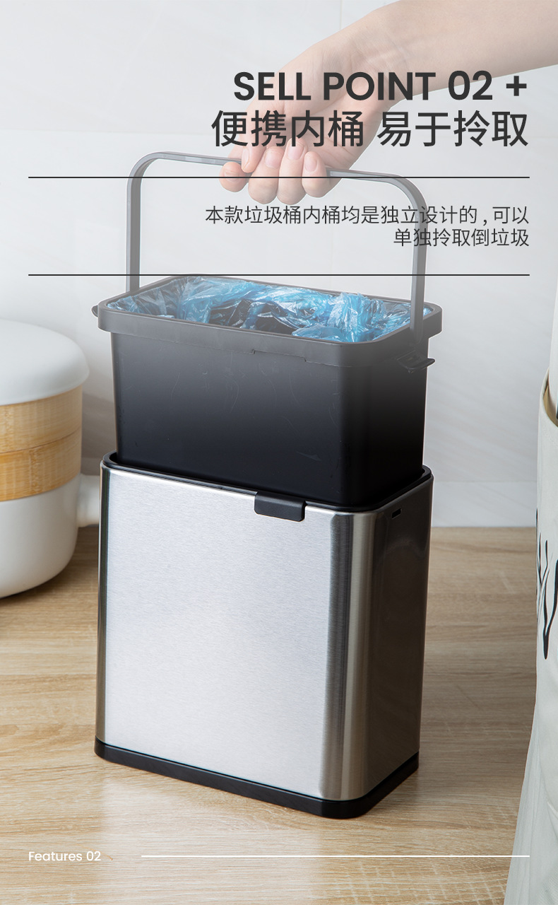 飞达三和家用不锈钢壁挂垃圾桶方形组合防潮防臭厨房卫生间垃圾桶