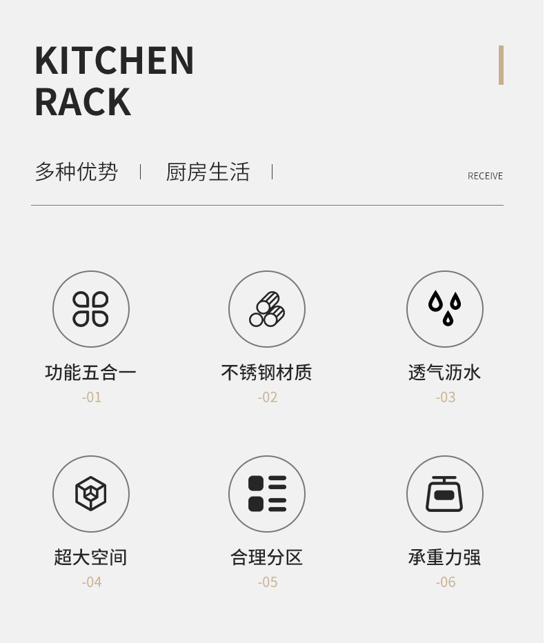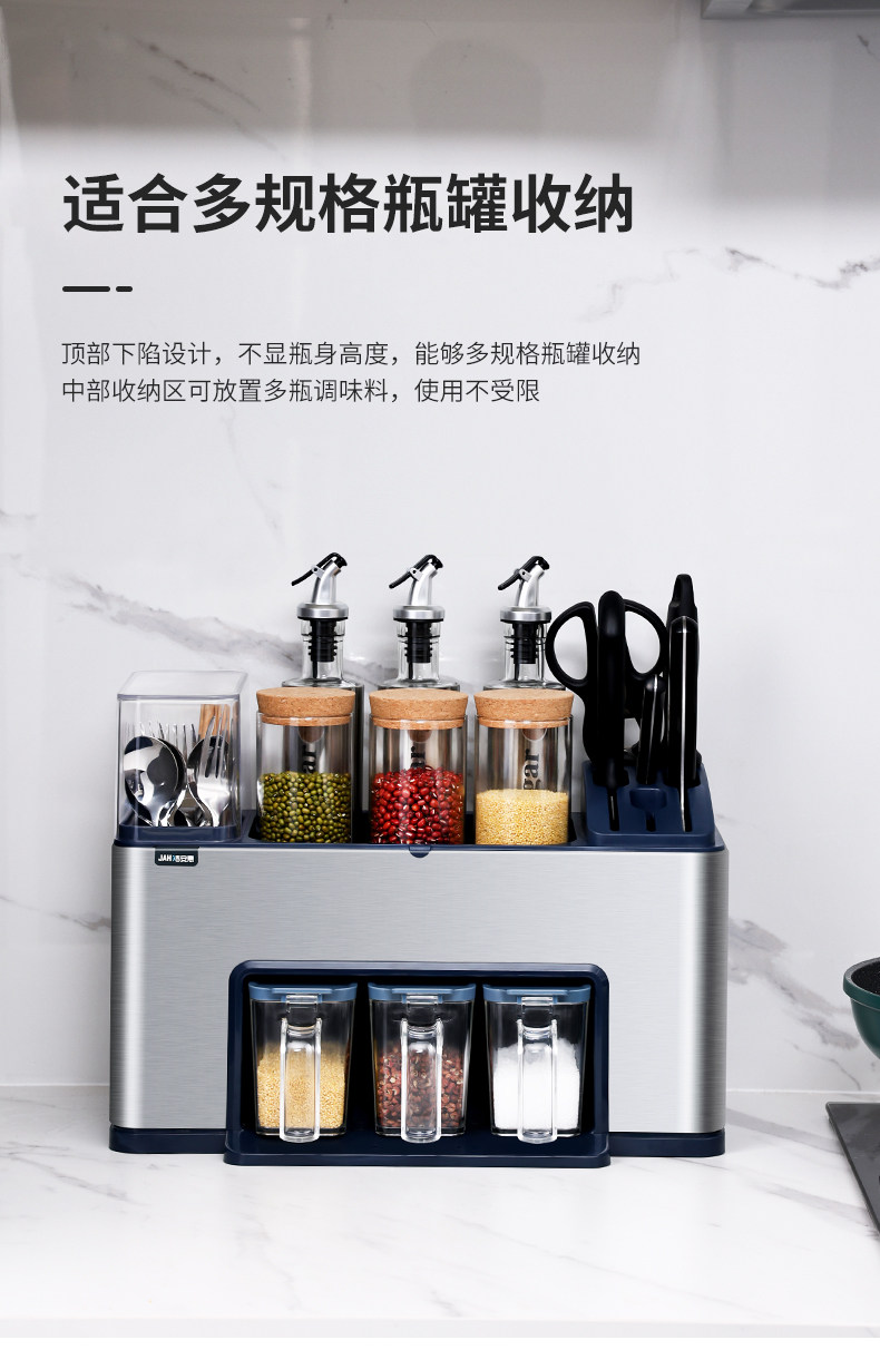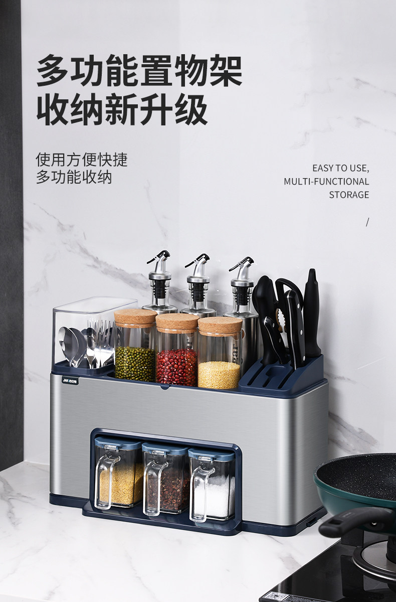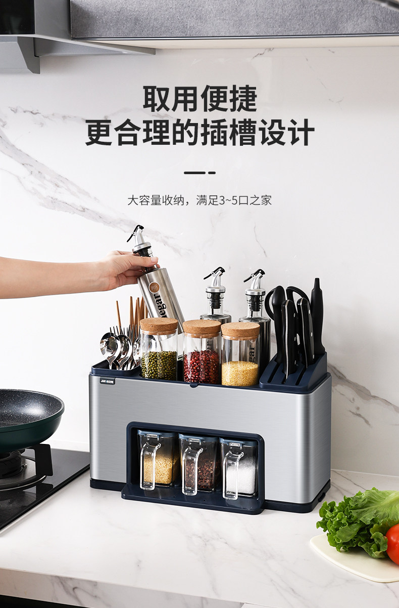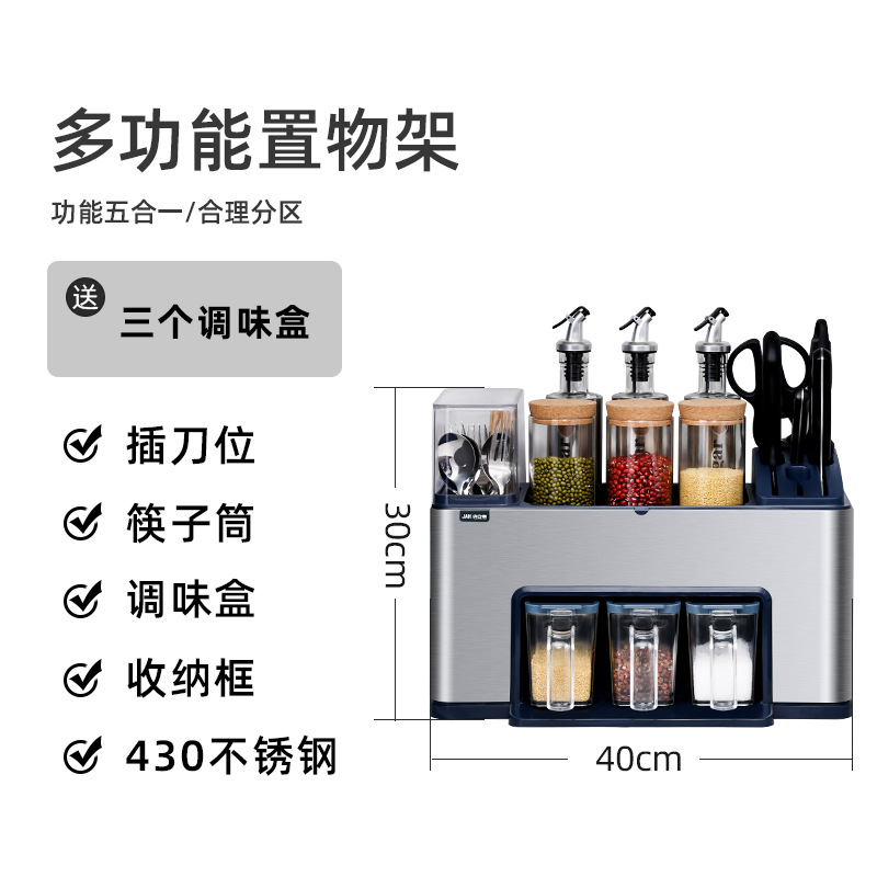 弈利亚厨房置物架家用台面刀架多功能调味罐调料瓶架子不锈钢筷子