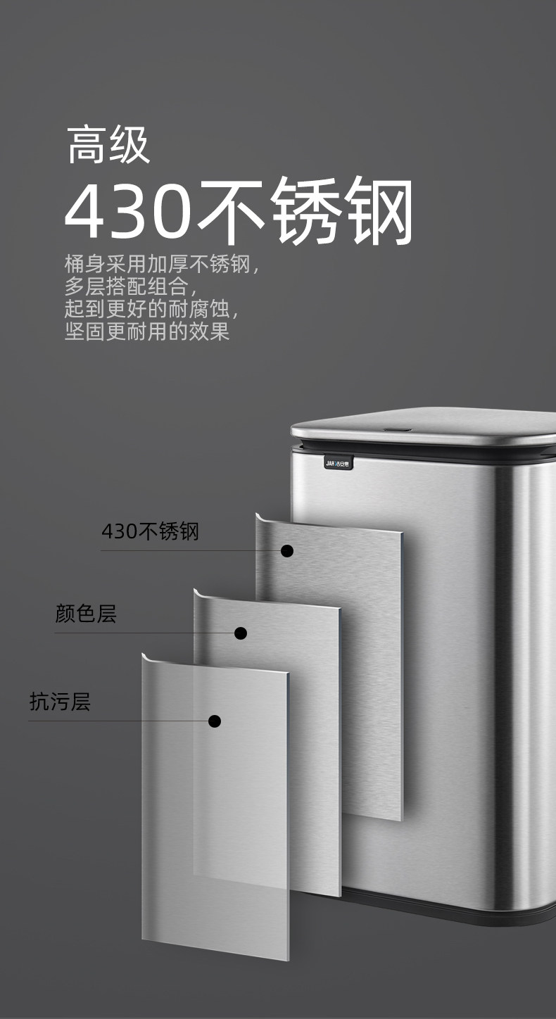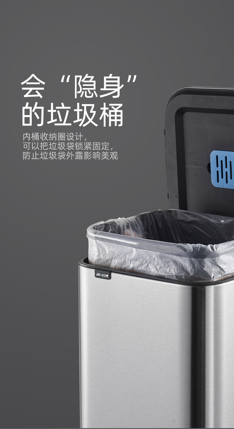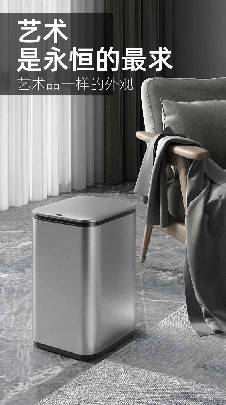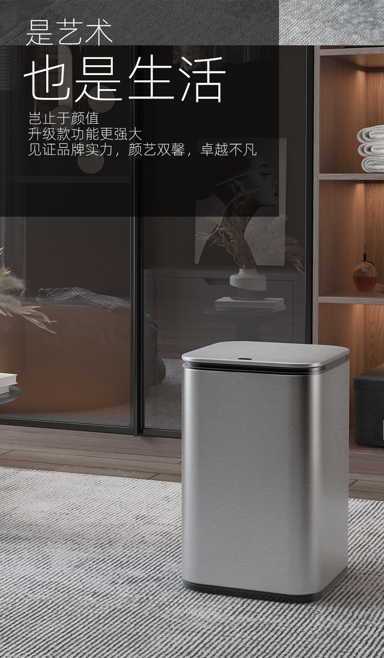 弈利亚感应垃圾桶家用客厅创意厕所卫生间厨房有盖不锈钢全自动