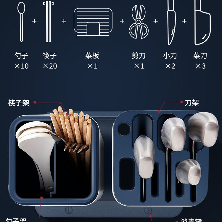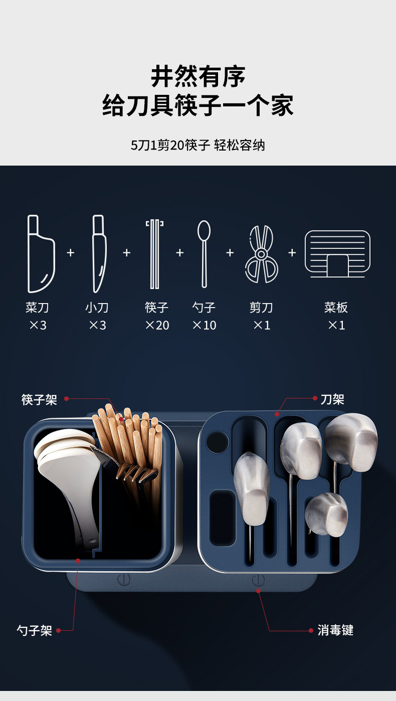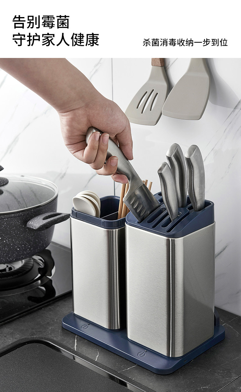 消毒刀架筷子笼一体厨房多功能用品不锈钢收纳智能刀座批发