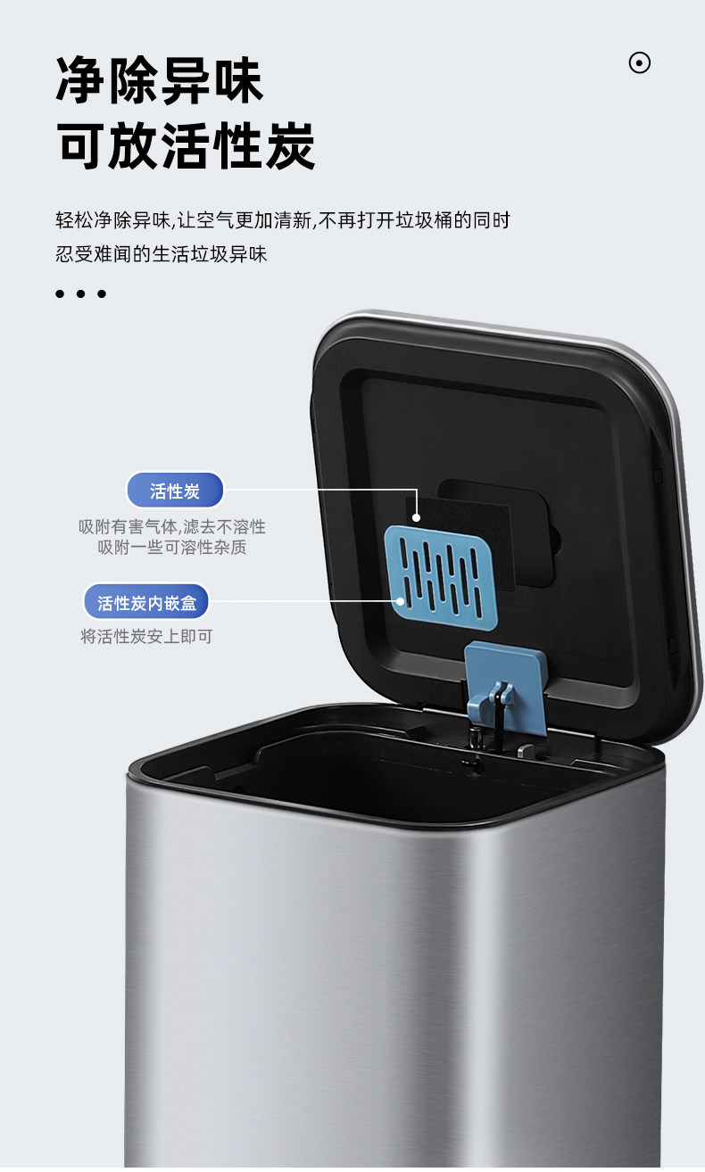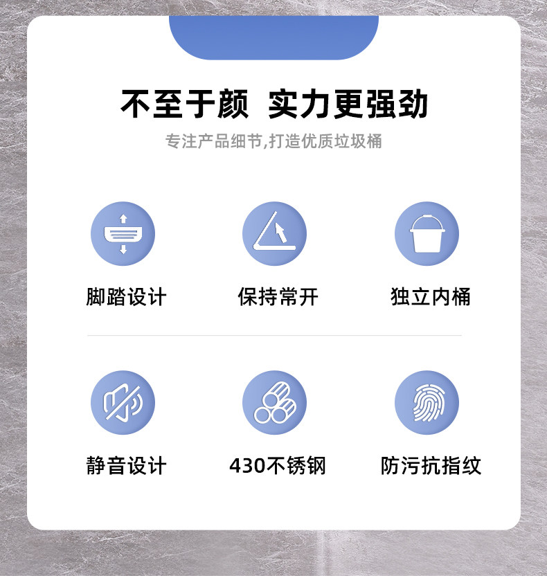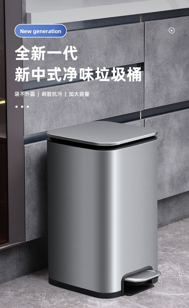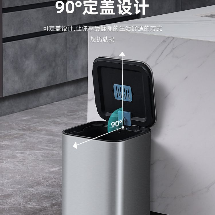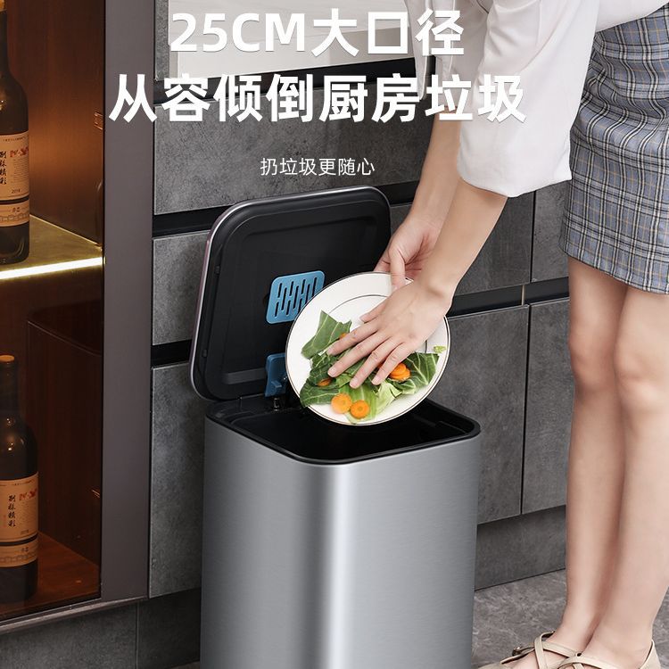 弈利亚厨房垃圾桶家用不锈钢客厅厕所办公室脚踏式带盖大号大容量