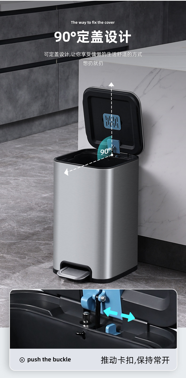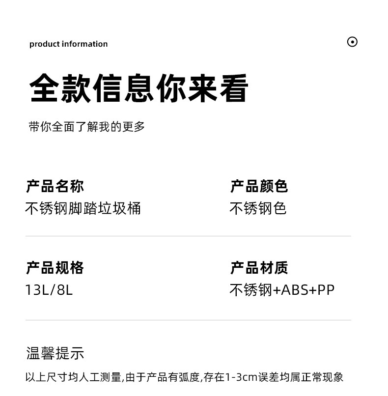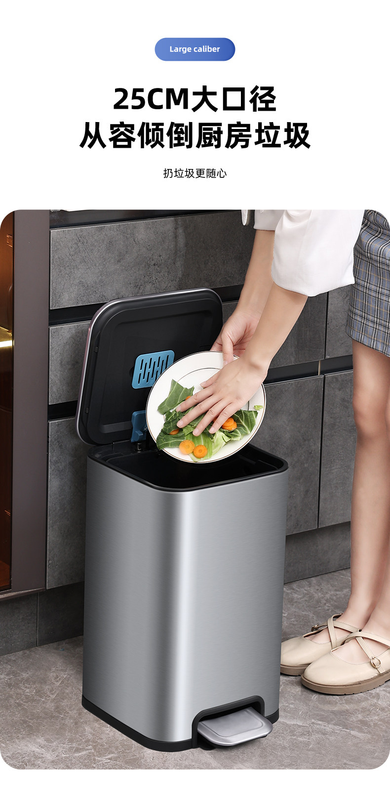 弈利亚厨房垃圾桶家用不锈钢客厅厕所办公室脚踏式带盖大号大容量