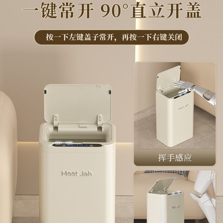 弈利亚智能感应垃圾桶家用带盖奶白色卧室厨房客厅自动轻奢垃圾桶
