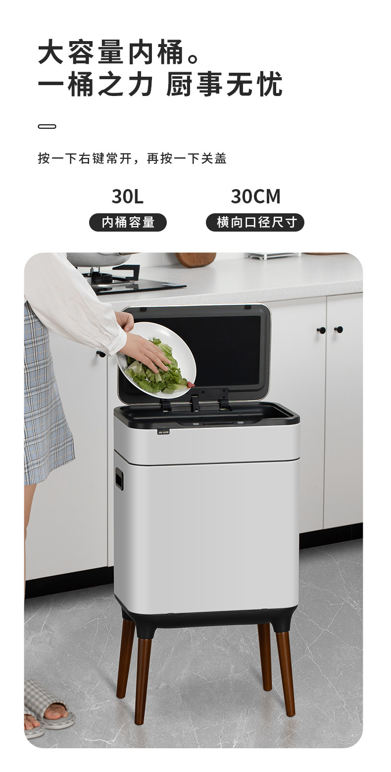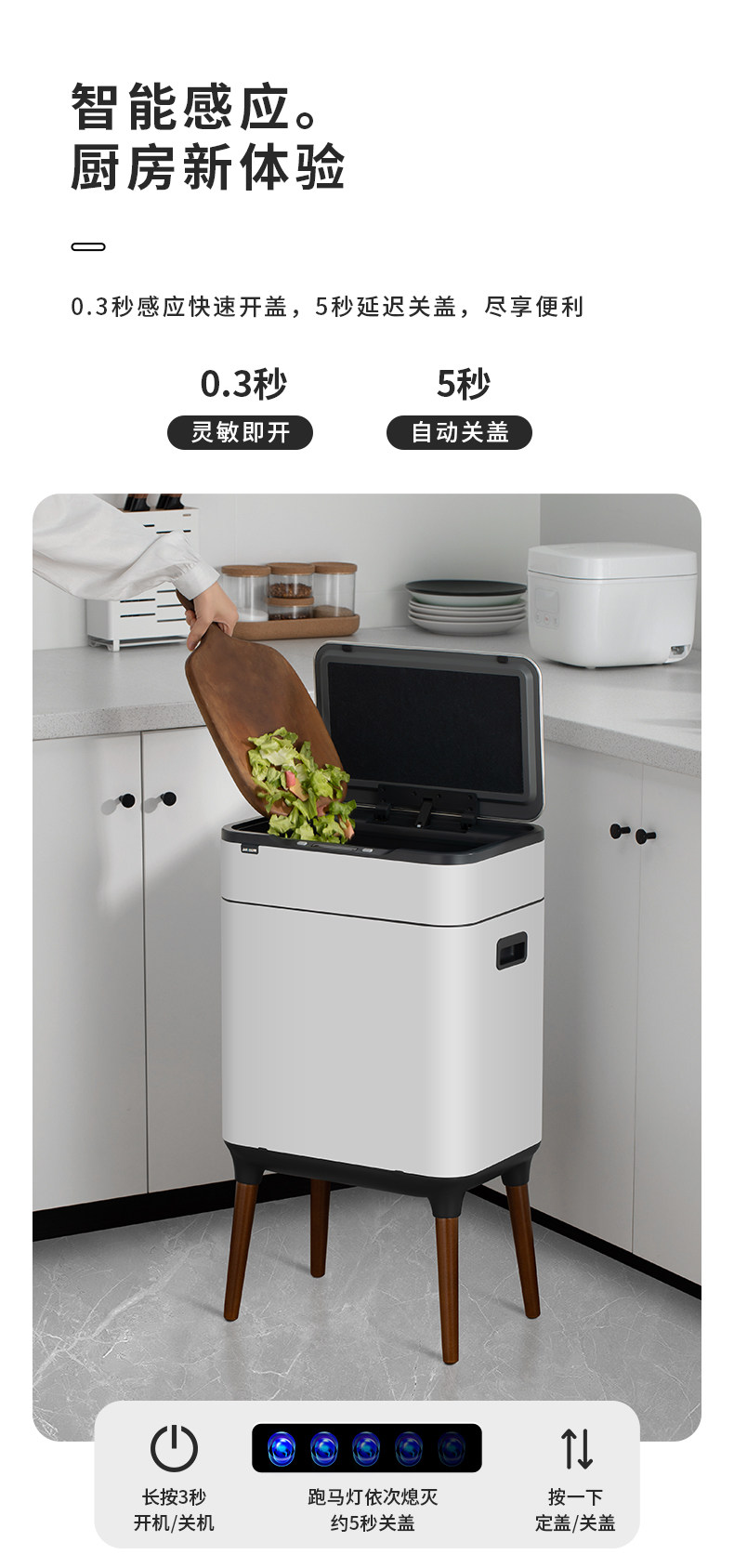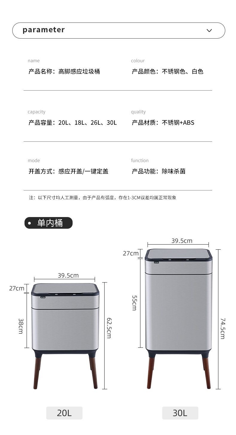 弈利亚智能感应垃圾桶家用厨房客厅办公室不锈钢高脚带盖大容量