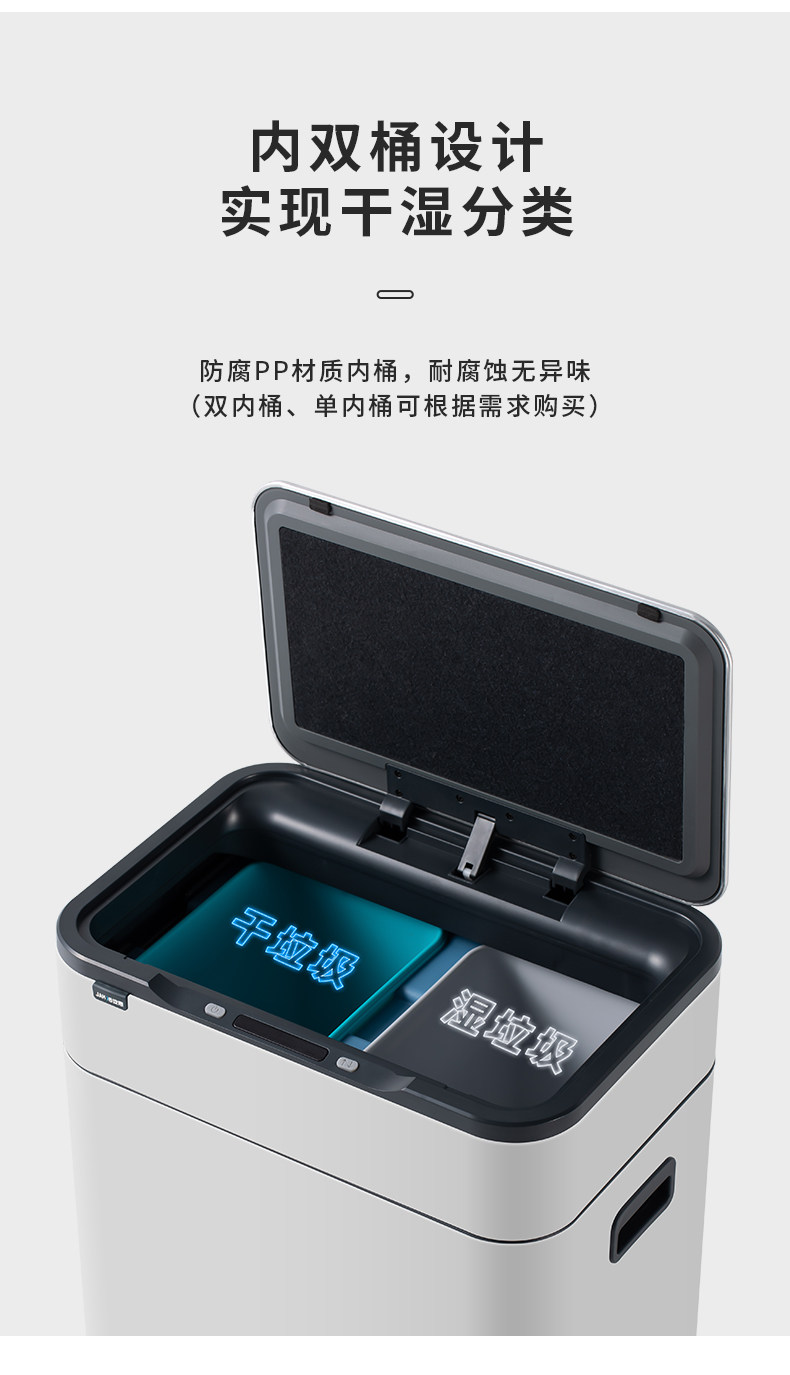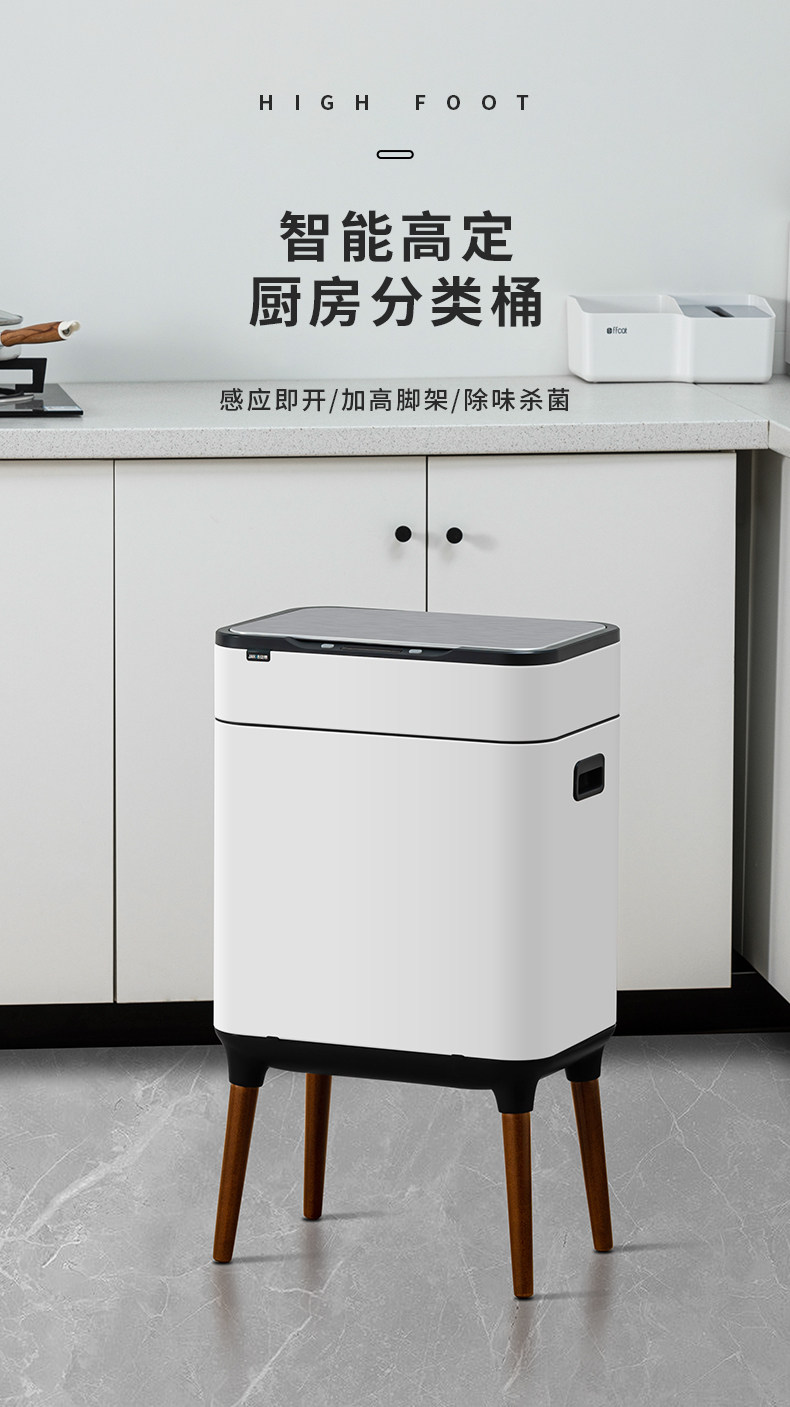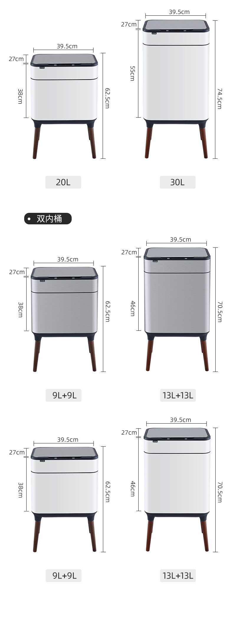 弈利亚智能感应垃圾桶家用厨房客厅办公室不锈钢高脚带盖大容量