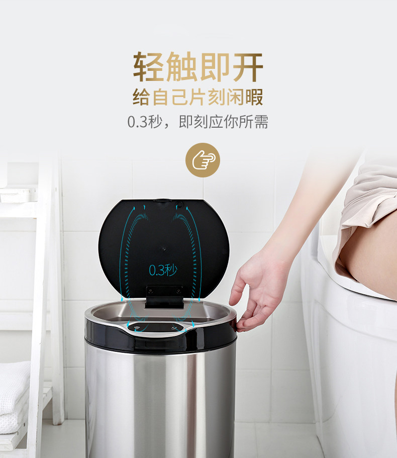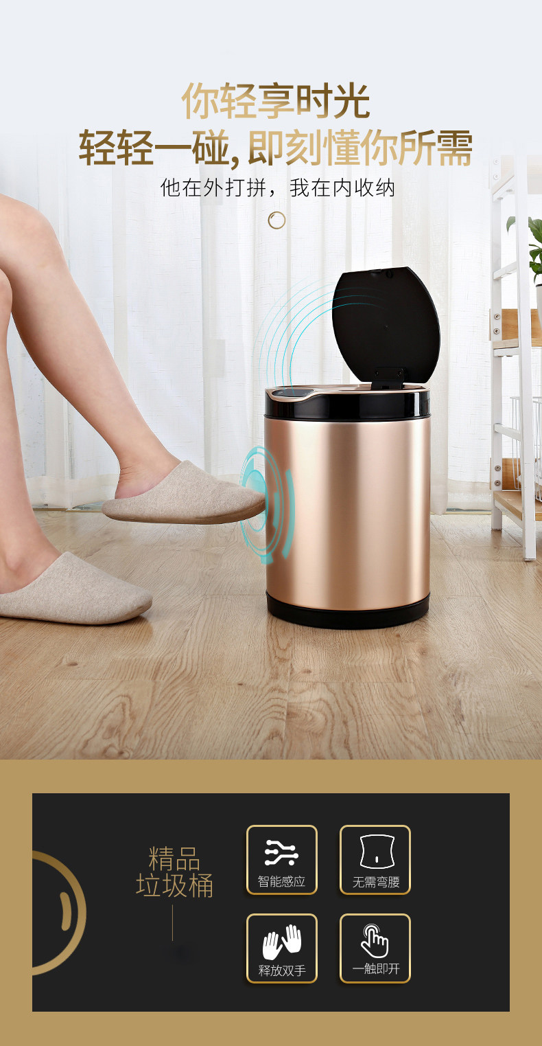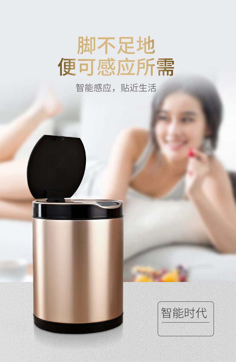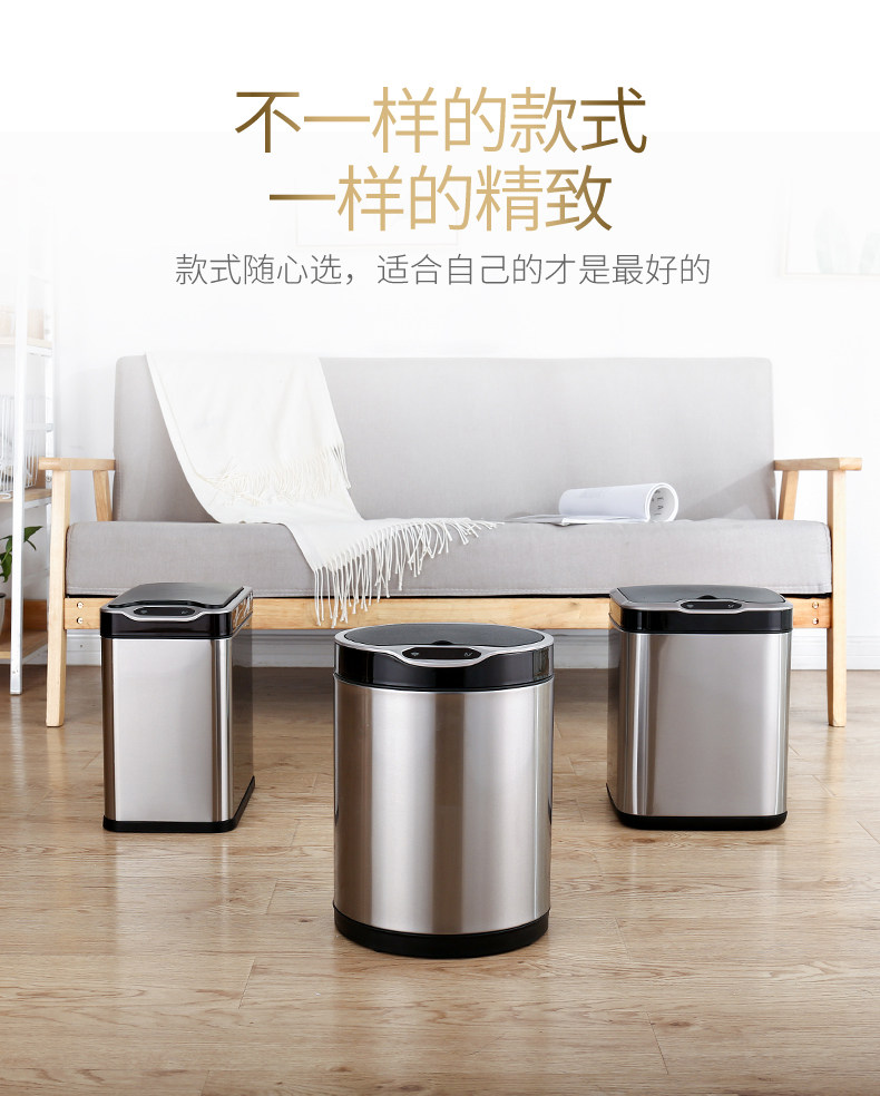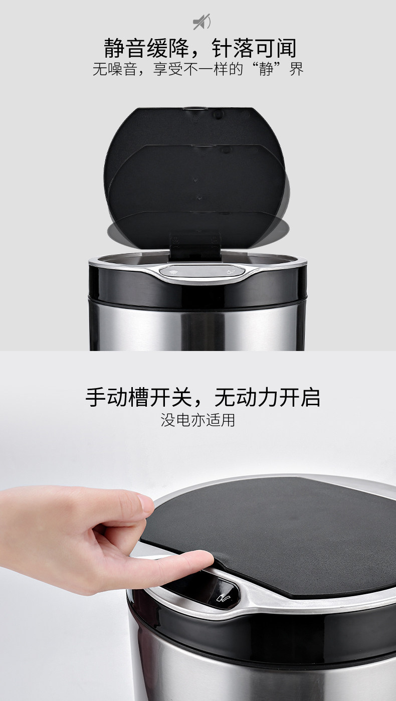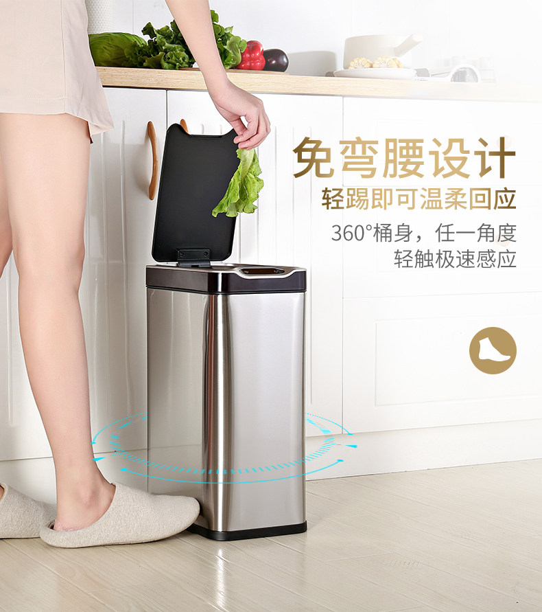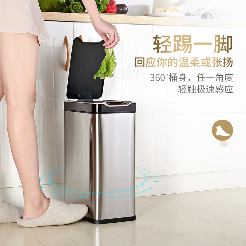 弈利亚跨境智能垃圾桶感应式客厅厨房卫生间带盖大号不锈钢全自动