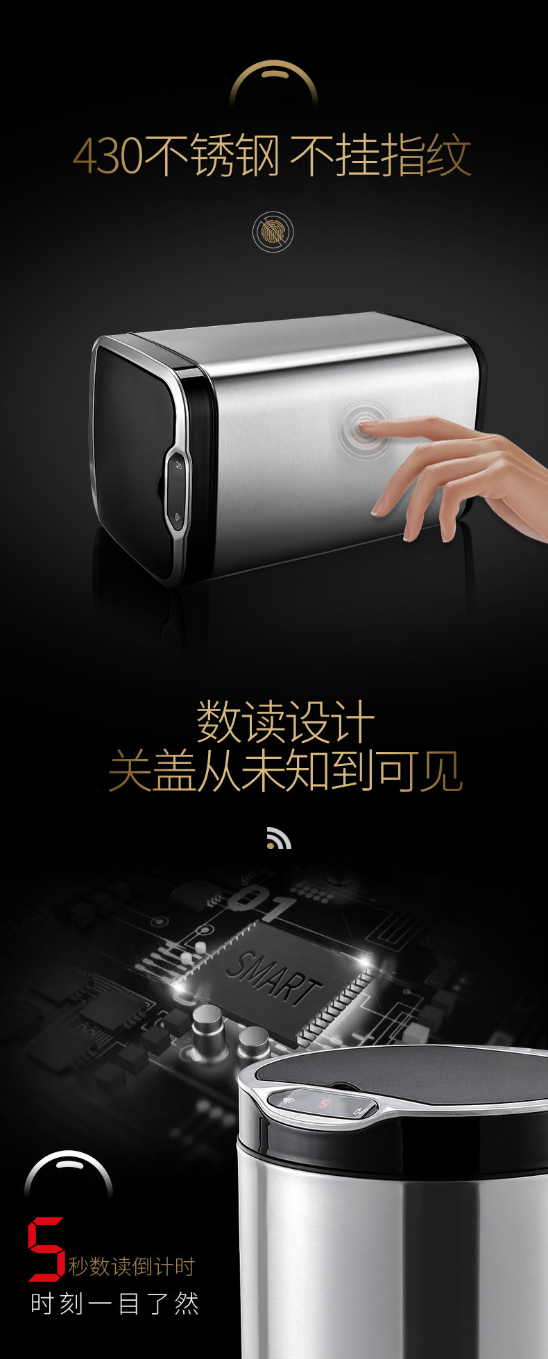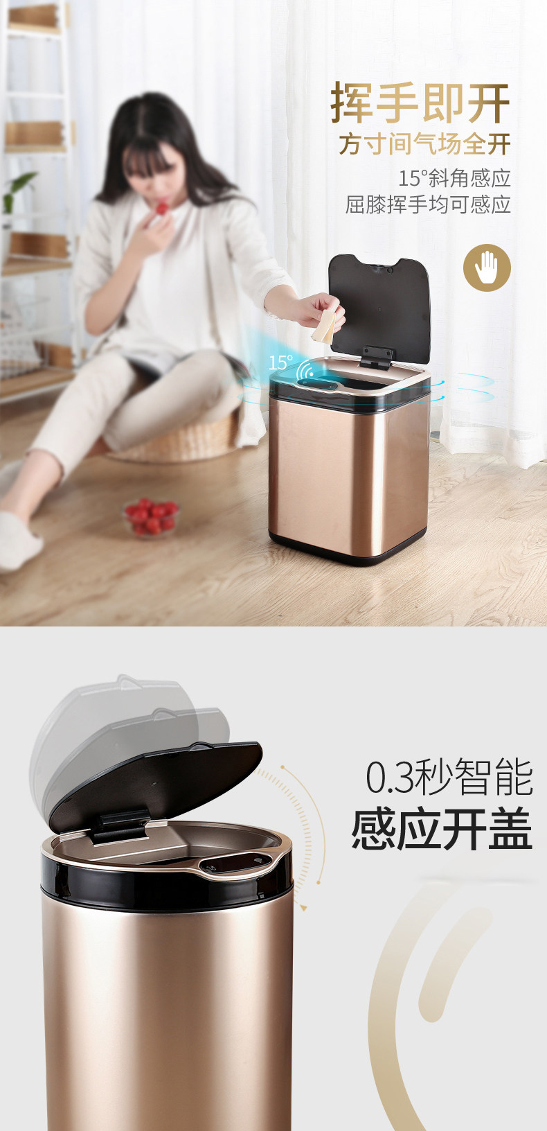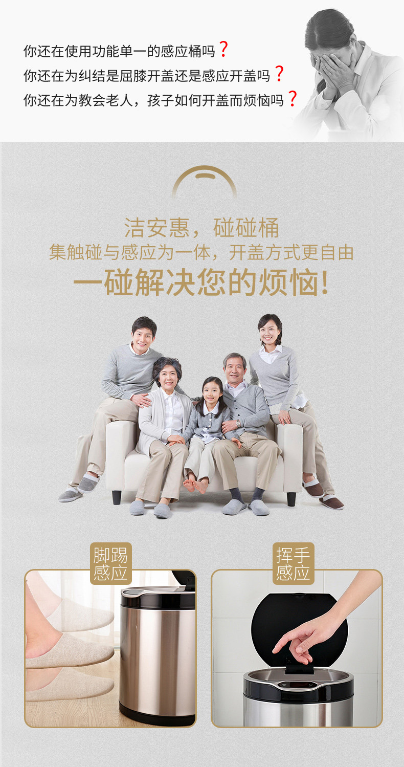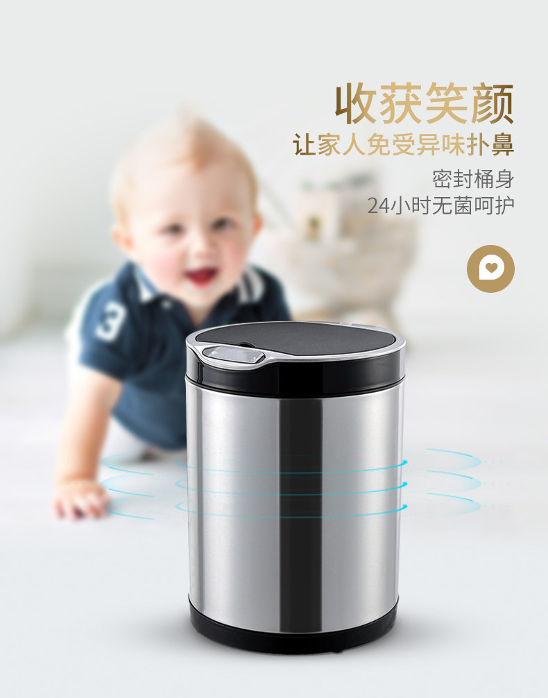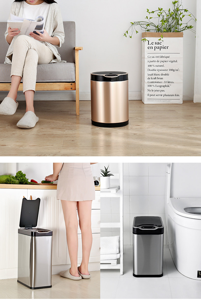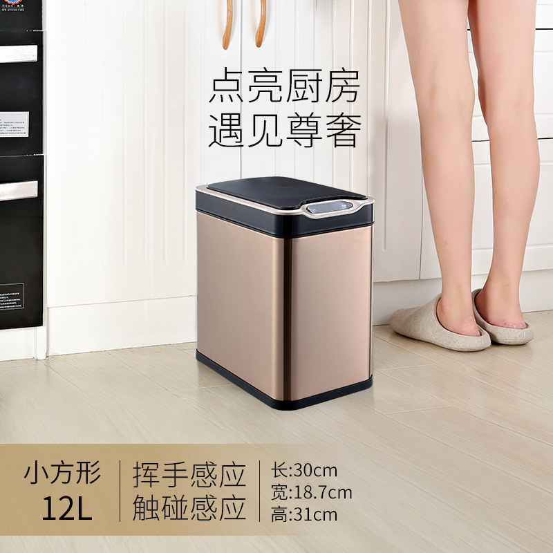 弈利亚跨境智能垃圾桶感应式客厅厨房卫生间带盖大号不锈钢全自动