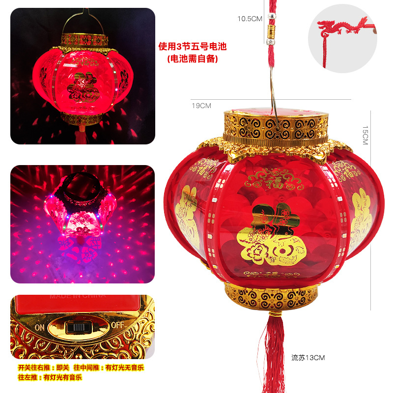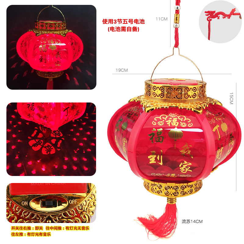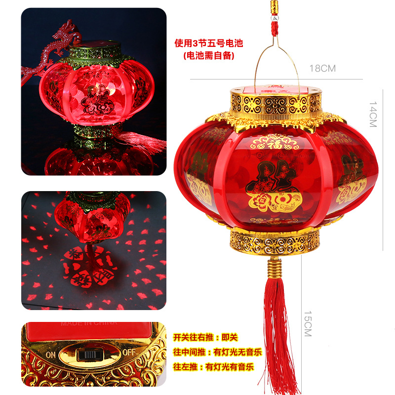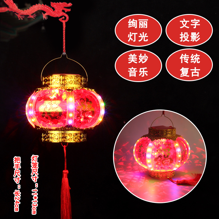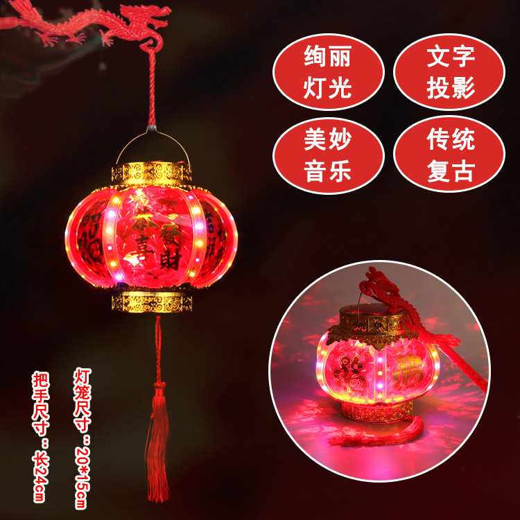 春节元宵新年福字大灯笼发光手提灯笼 LED带音乐投影灯笼过年批发
