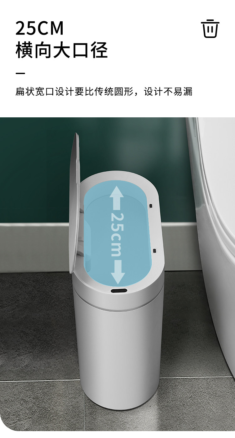 弈利亚跨境智能感应垃圾桶家用厕所卫生间电动带盖夹缝自动窄轻奢