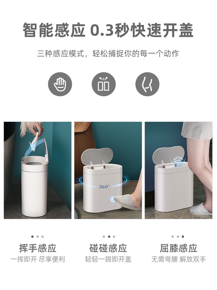 跨境智能感应式垃圾桶家用自动卫生间厕所纸篓窄夹缝带盖电动批发