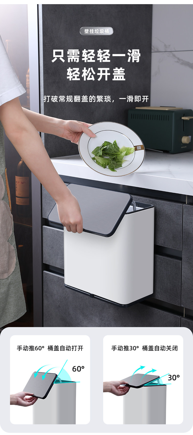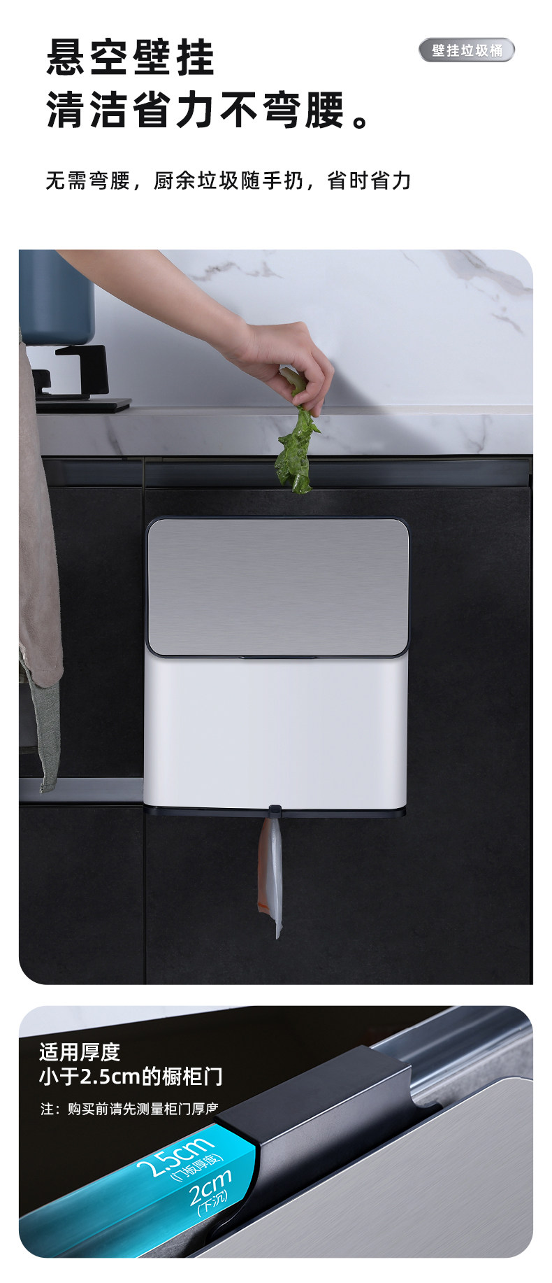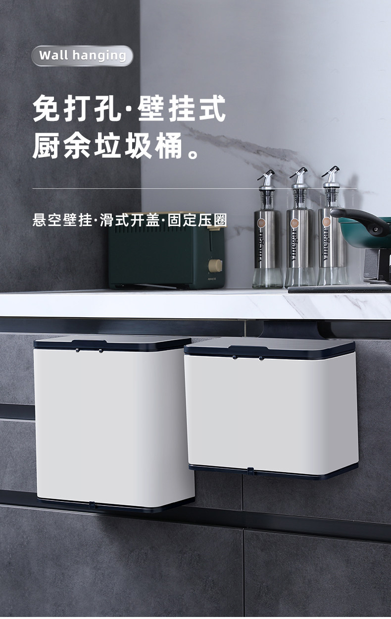 跨境厨房挂式垃圾桶家用壁挂创意厨余橱柜门悬挂式挂壁垃圾筒批发