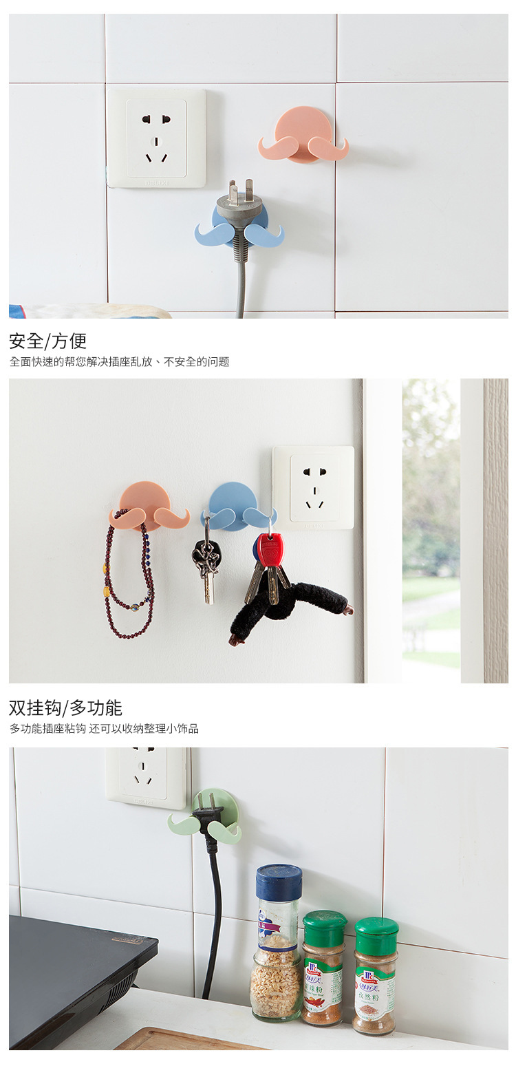 跨境胡须插头挂钩 粘贴式胡子挂钩 电源插头挂钩 整理挂架9g批发