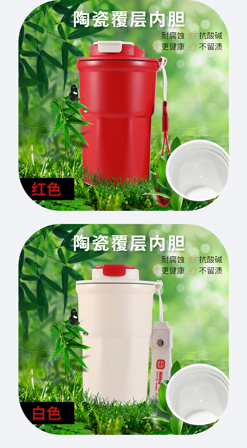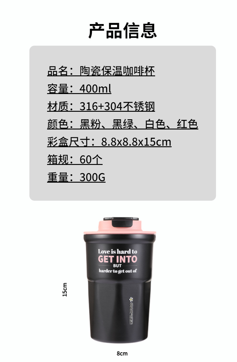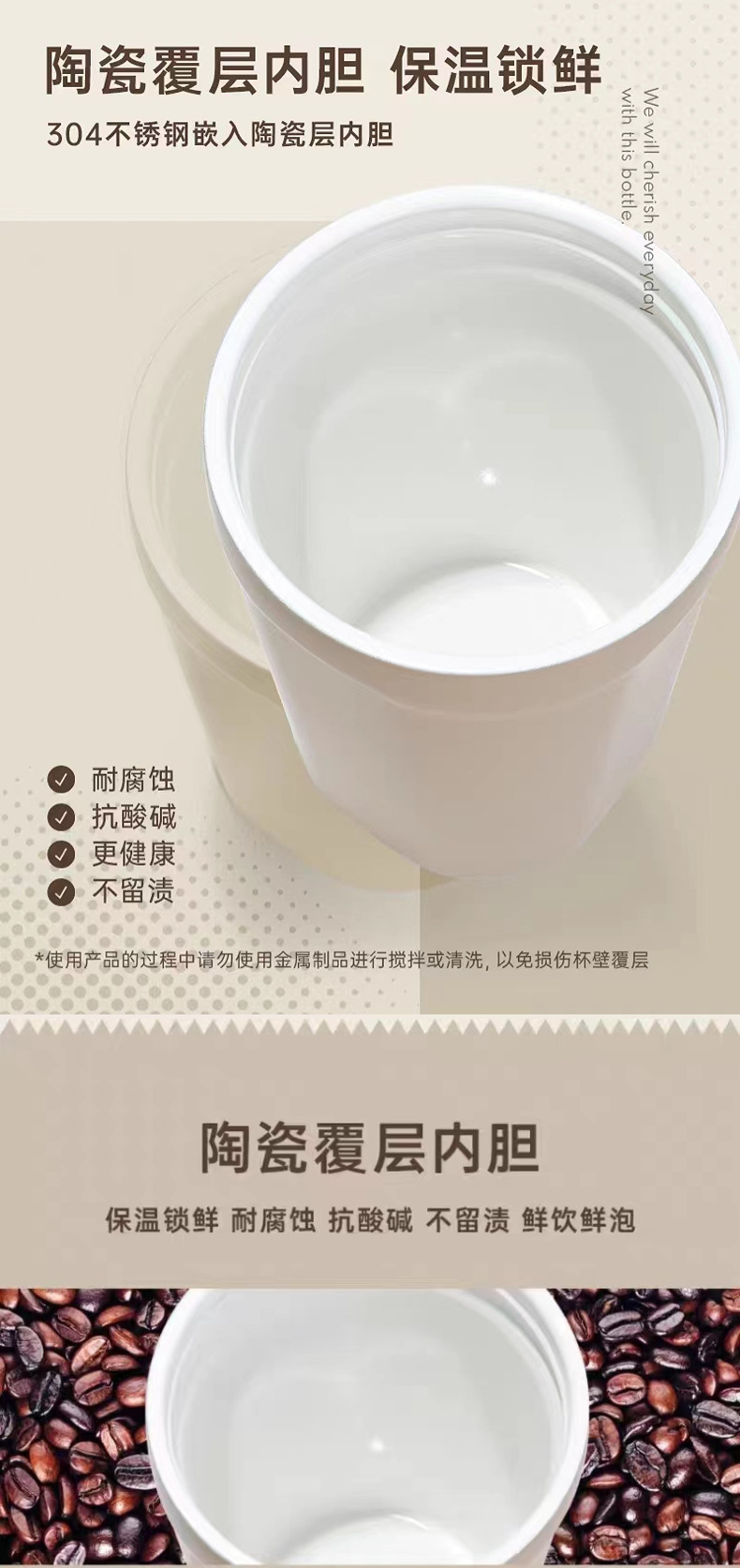 高颜值陶瓷咖啡保温杯316不锈钢便携式车载保冷随行水杯礼品杯子