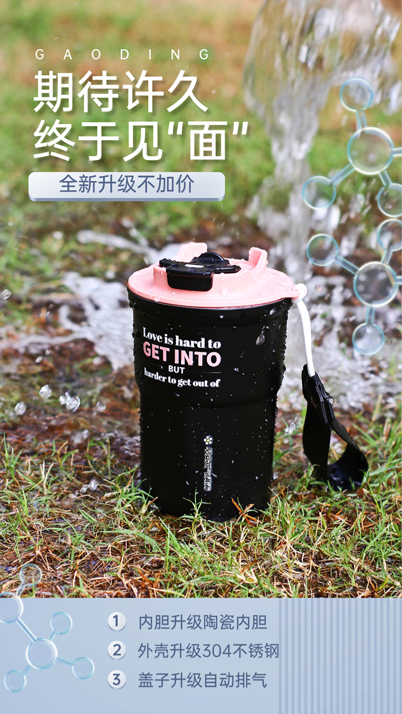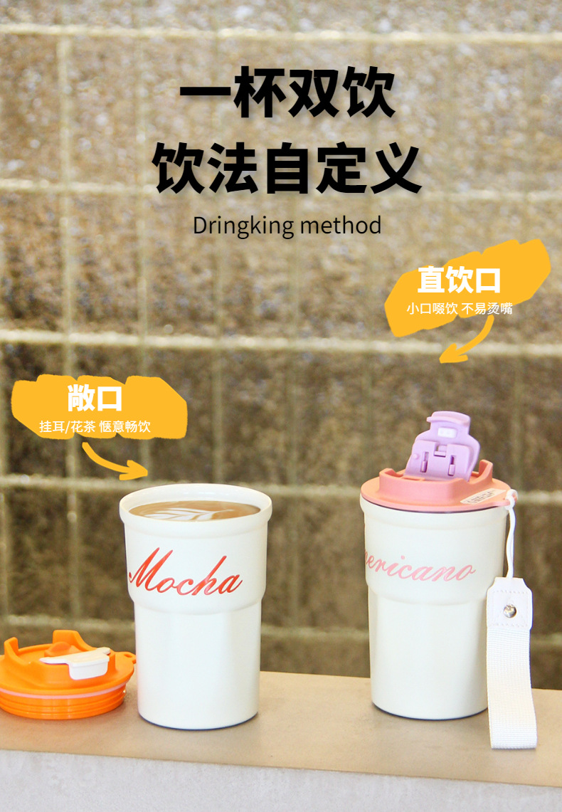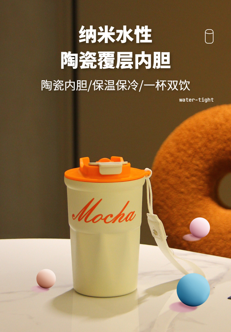 高颜值陶瓷咖啡保温杯316不锈钢便携式车载保冷随行水杯礼品杯子