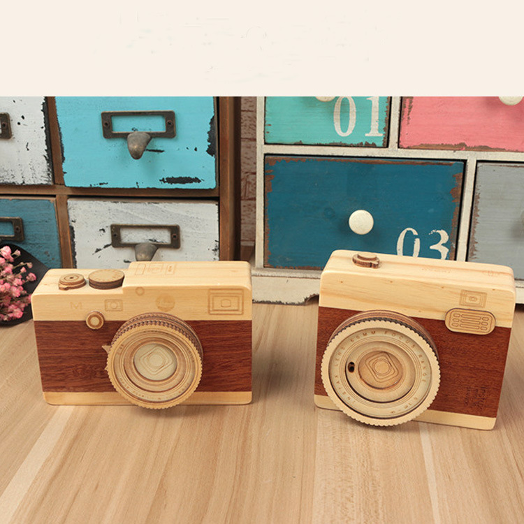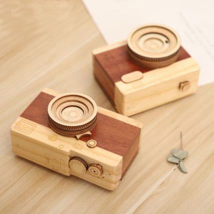 创意手工木质音乐盒八音盒发条式diy相机女生儿童生日礼物小摆设