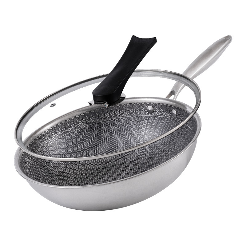 双面蜂窝316 不锈钢炒锅三层钢无涂层不沾锅少烟平底锅具厂家直供