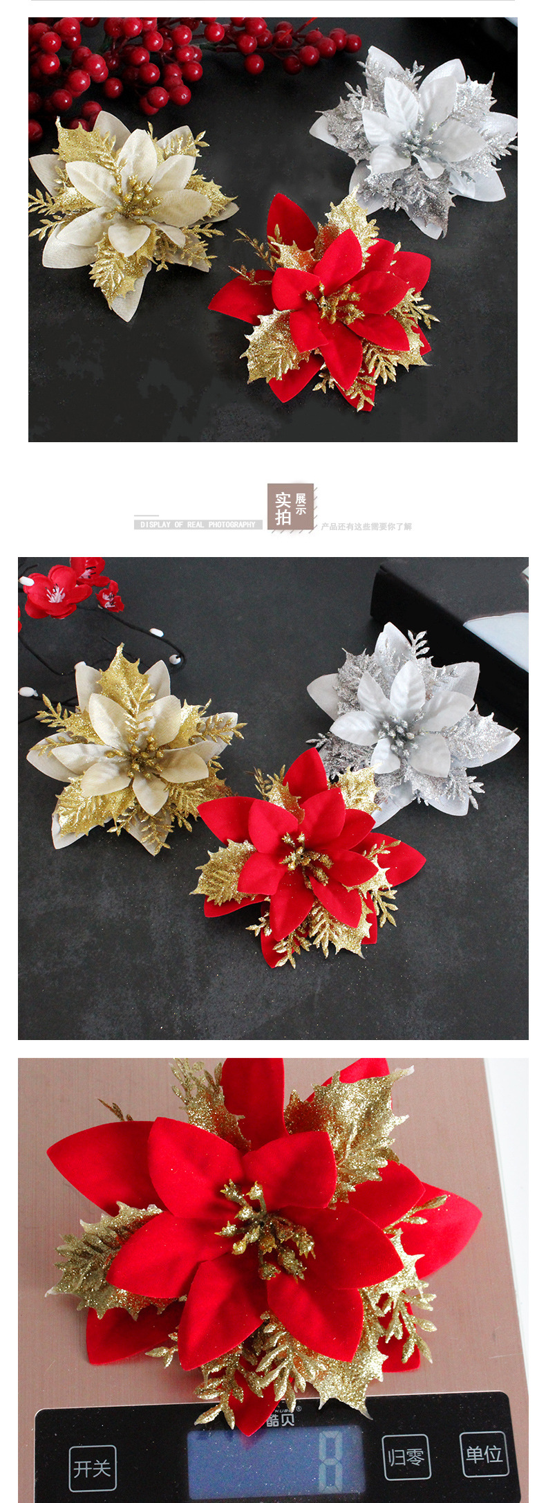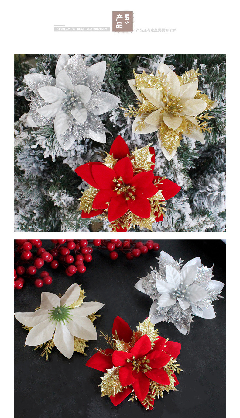 圣诞节装饰品2023圣诞花港之恋金银红三层仿真花圣诞树挂饰拍摄道