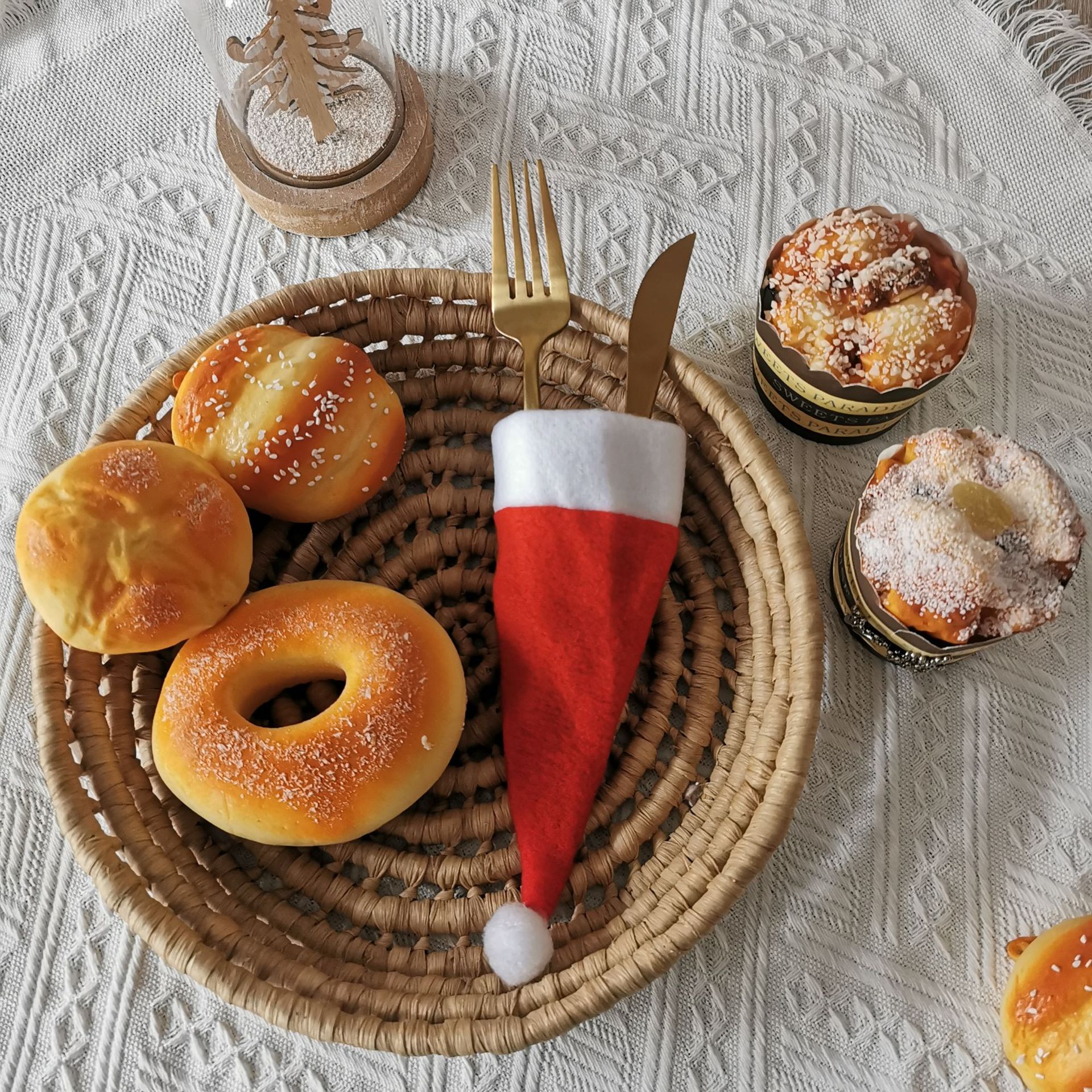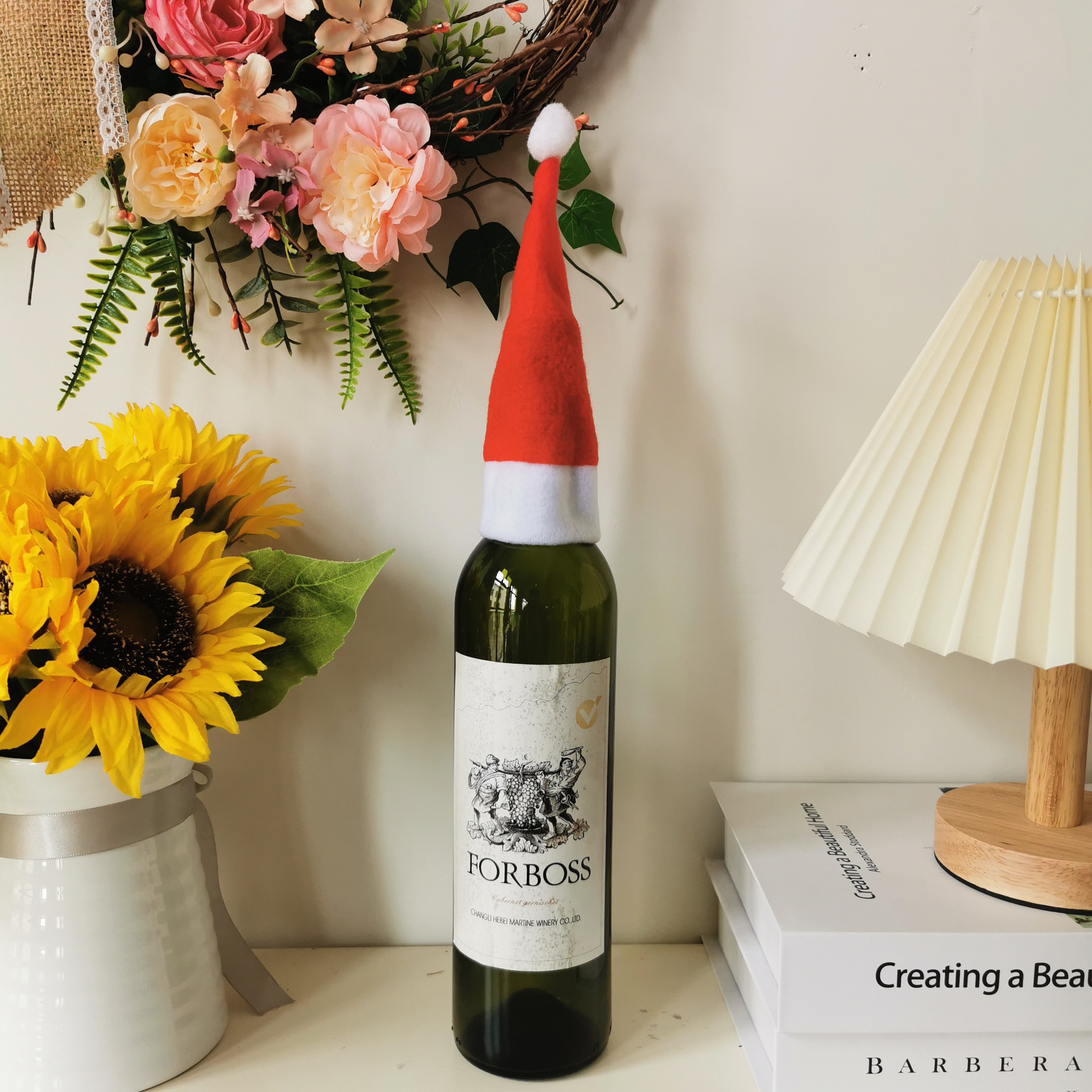 圣诞新款装饰用品18*7.5cm迷你圣诞帽普通帽刀叉套餐具套红酒瓶套