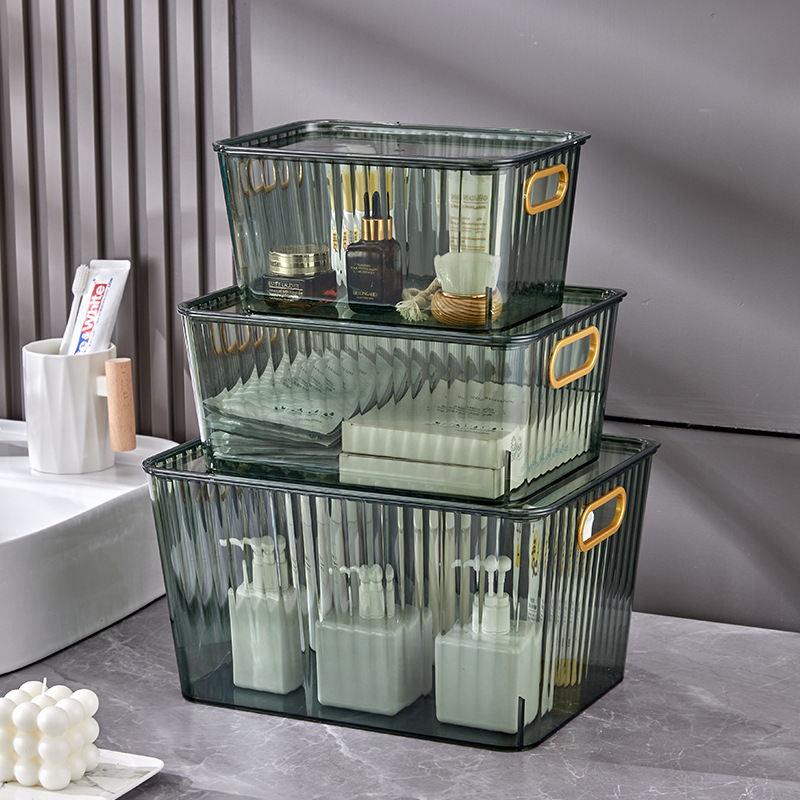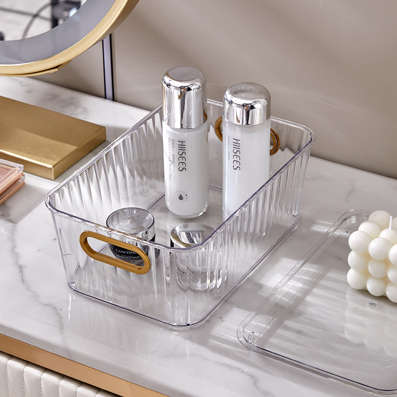 桌面收纳盒透明化妆品面膜整理盒零食筐家用厨房杂物储物盒
