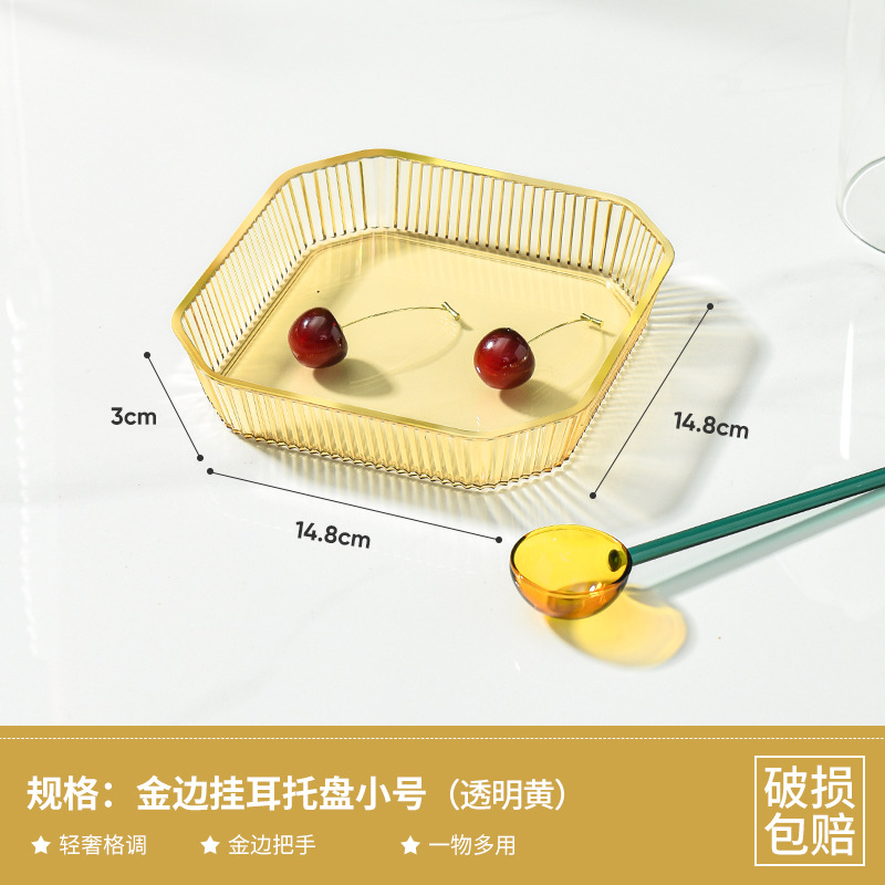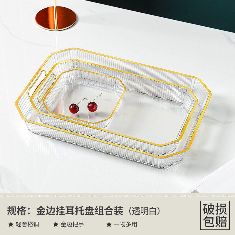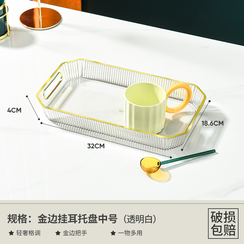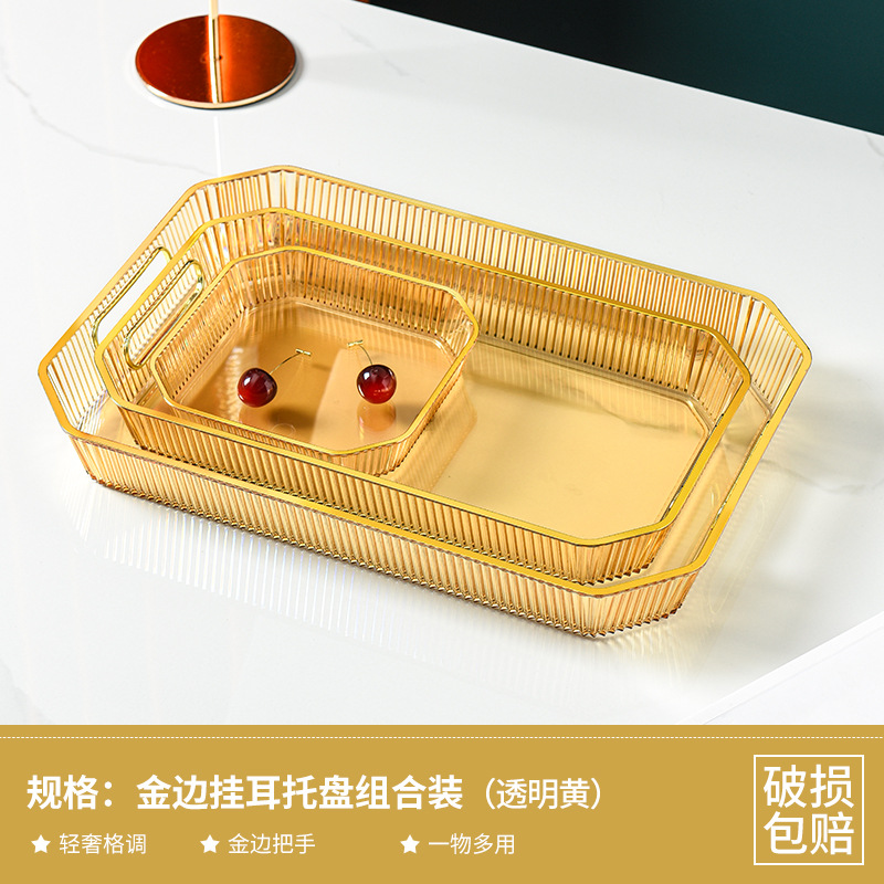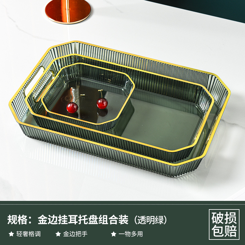 北欧轻奢风托盘长方形盘子金属收纳托盘摆件家用客厅摆盘水果盘