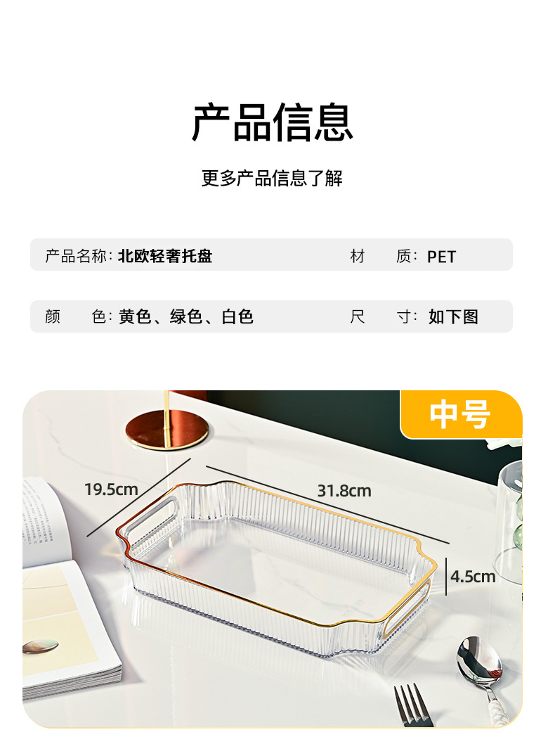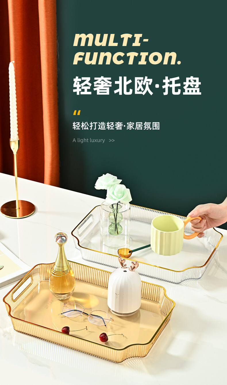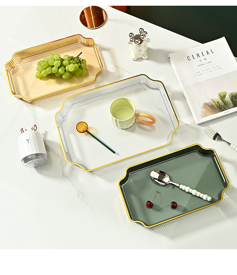 PET盘子ins风长方形放茶杯水杯托盘家用塑料餐盘水果盘茶盘