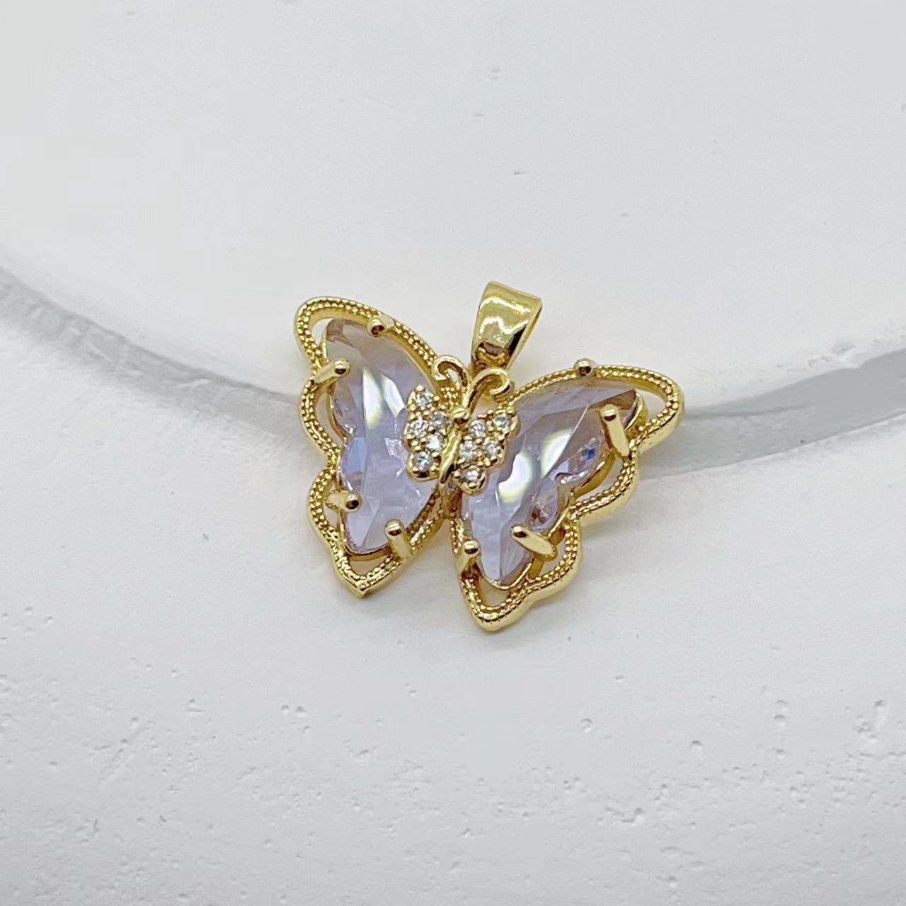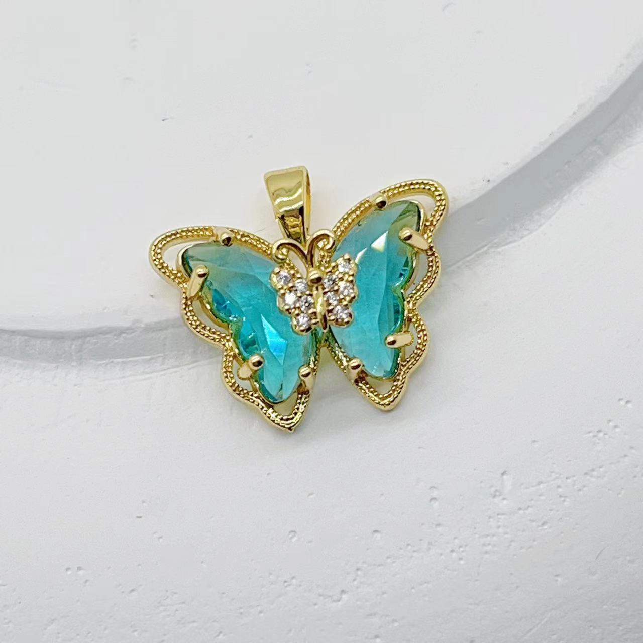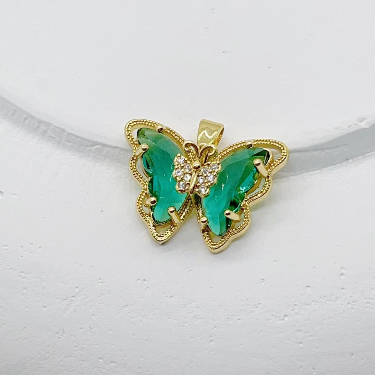 欧美跨境热销新款彩色水晶蝴蝶微镶铜锆石手链项链DIY吊坠饰品