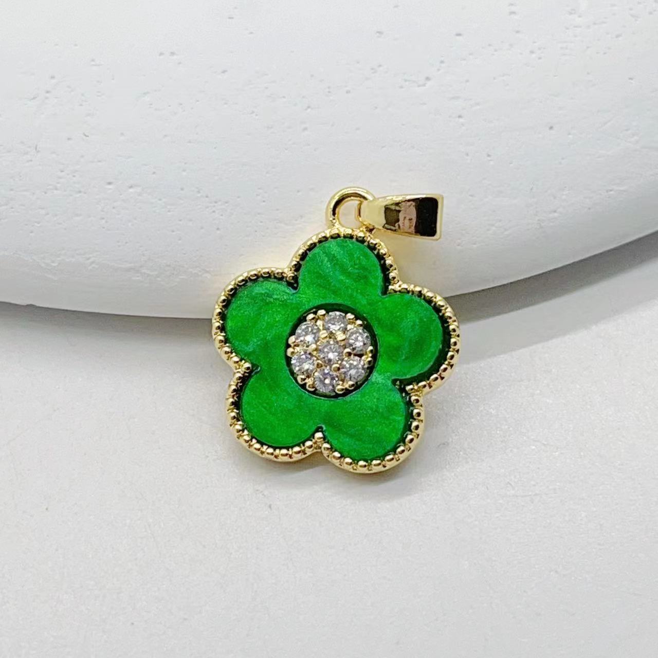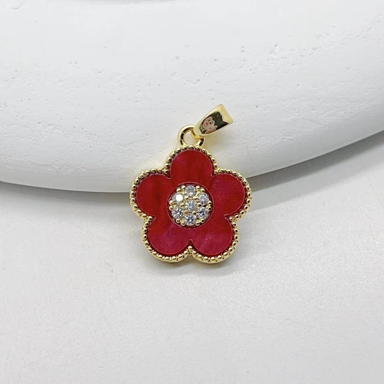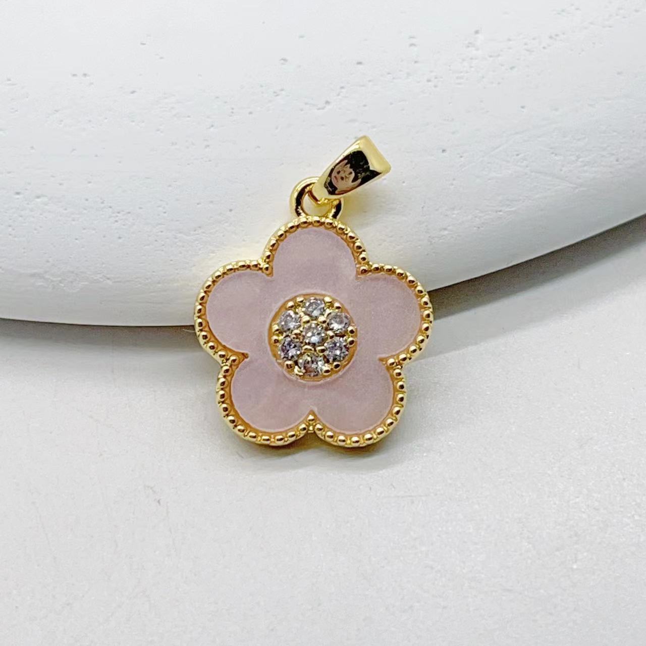网红新款铜镀真金彩色精美山茶花樱花项链吊坠DI手链项链挂件配件