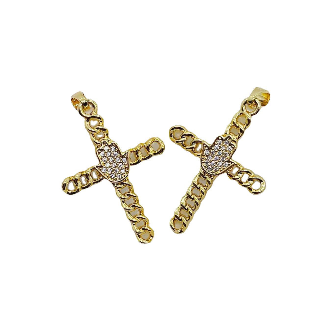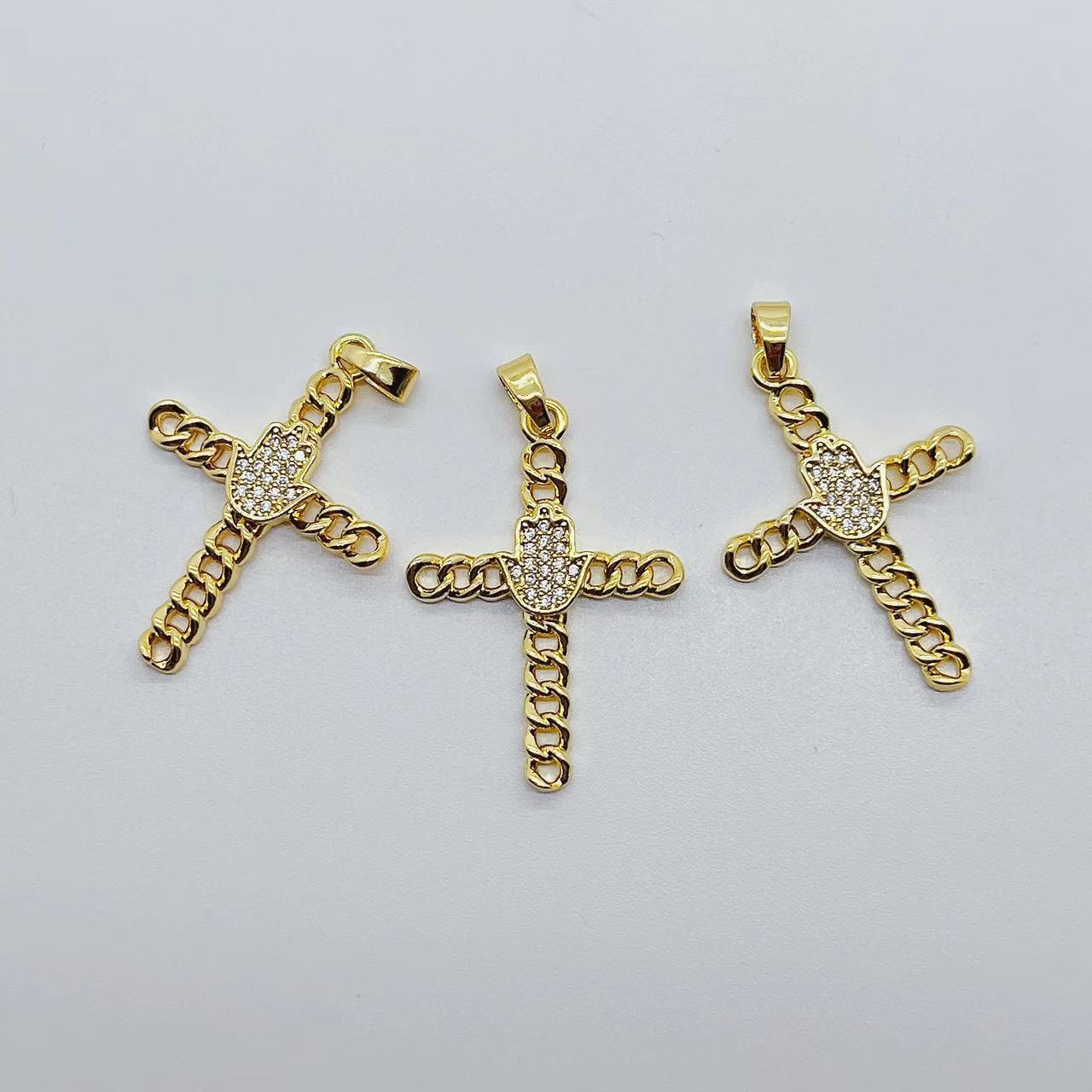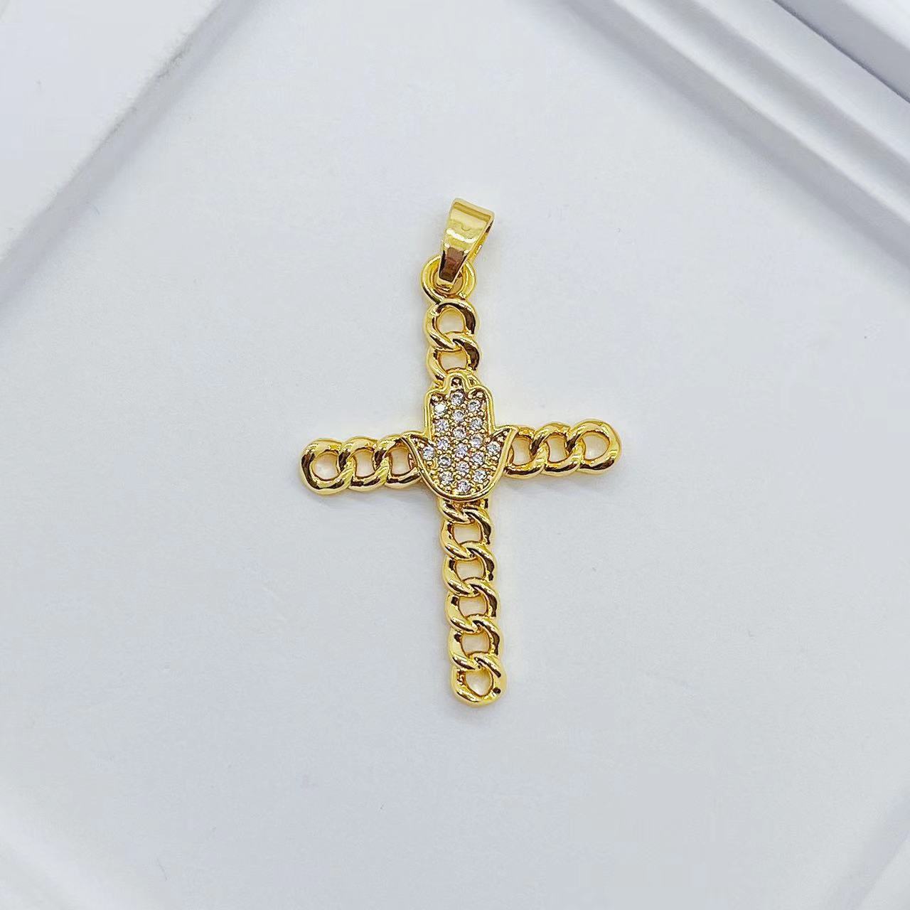 跨境欧美热卖款手掌十字架吊坠挂坠微镶锆石铜镀真金项链手链挂件