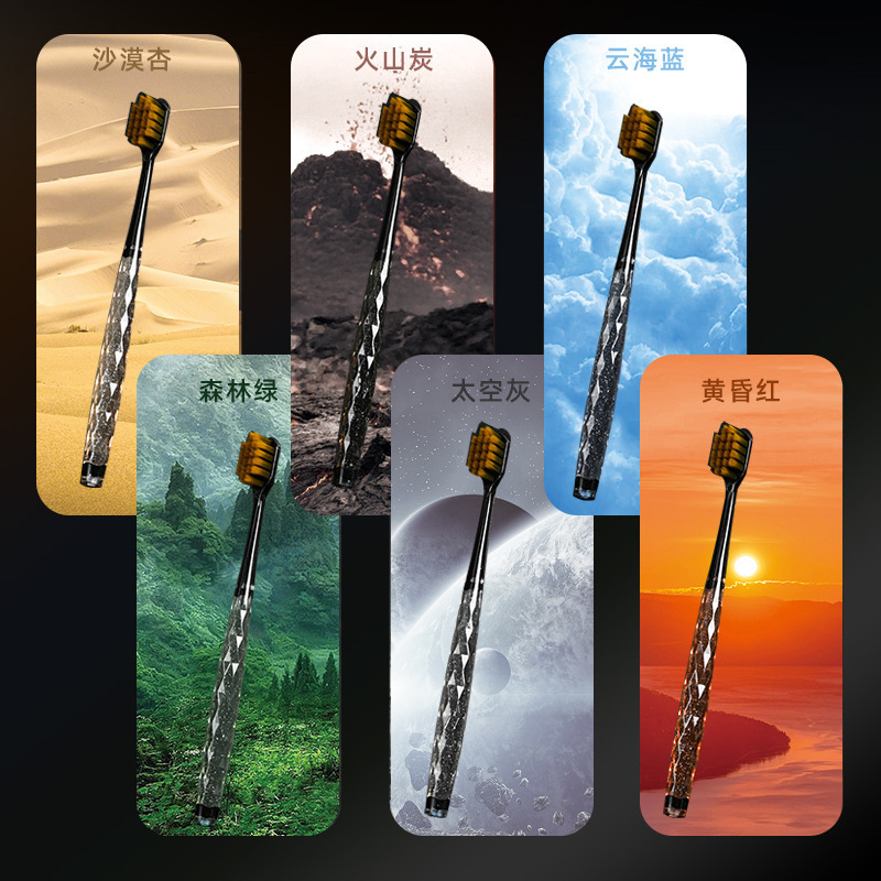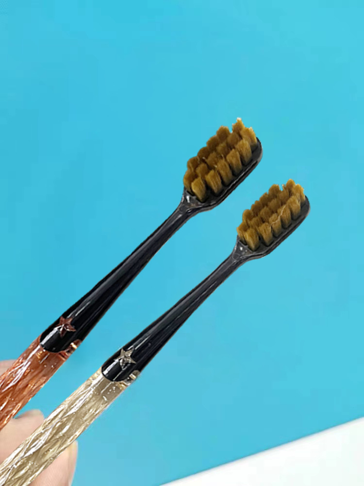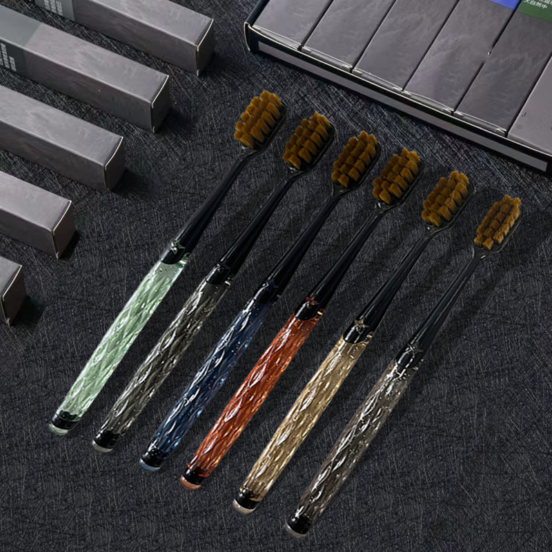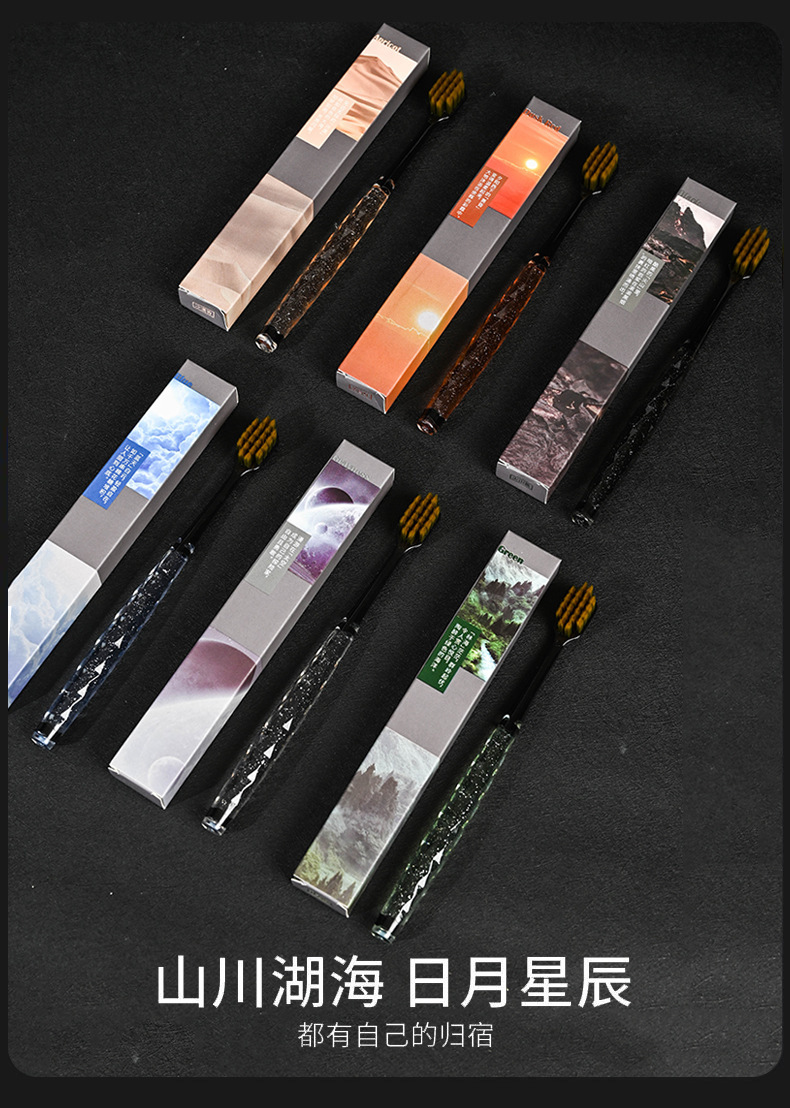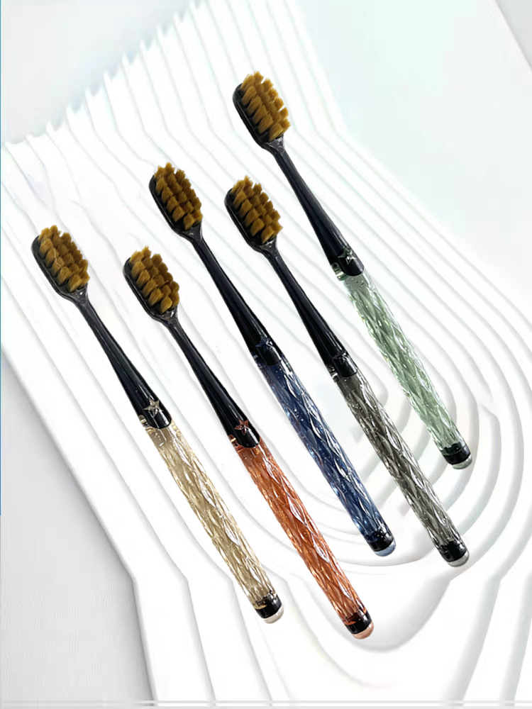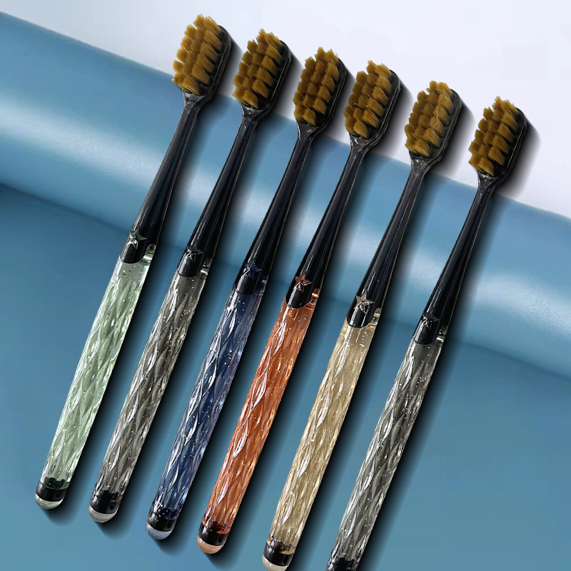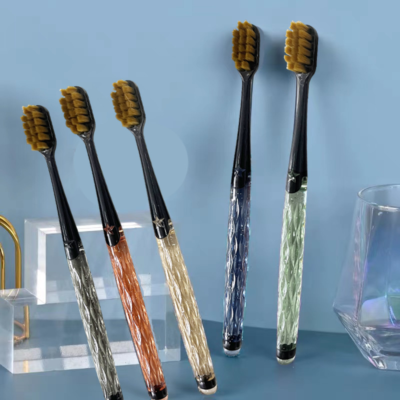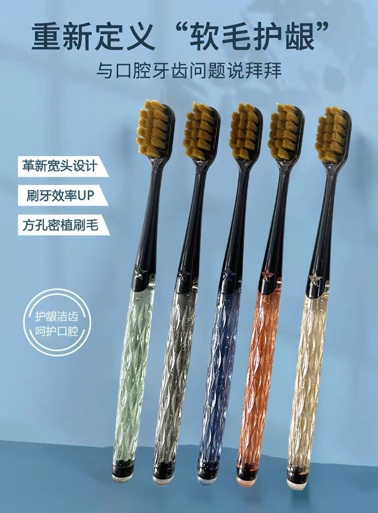 【6支礼盒装】轻奢细丝软毛牙刷彩晶柄宽头成人家用情侣牙刷批发