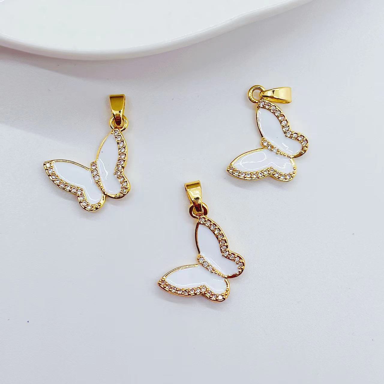欧美跨境新品货源 DIY材料配件滴油精美花边蝴蝶手链项链吊坠配饰