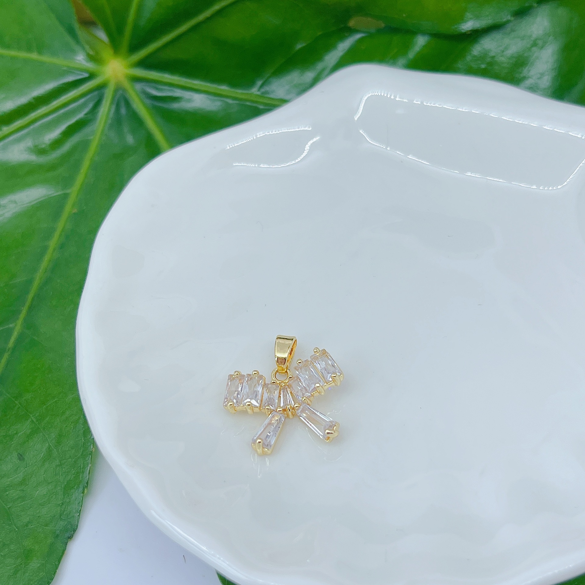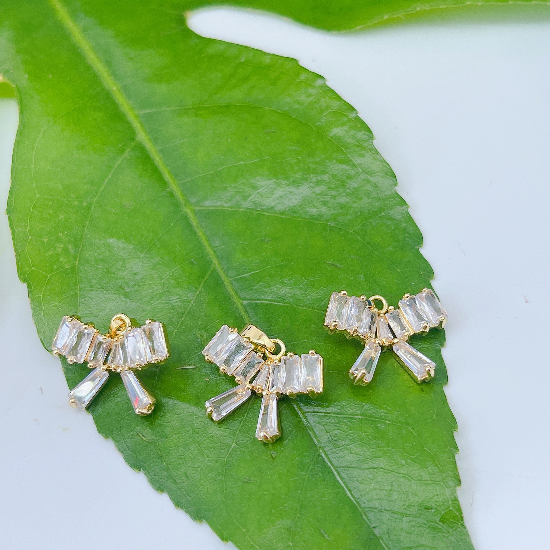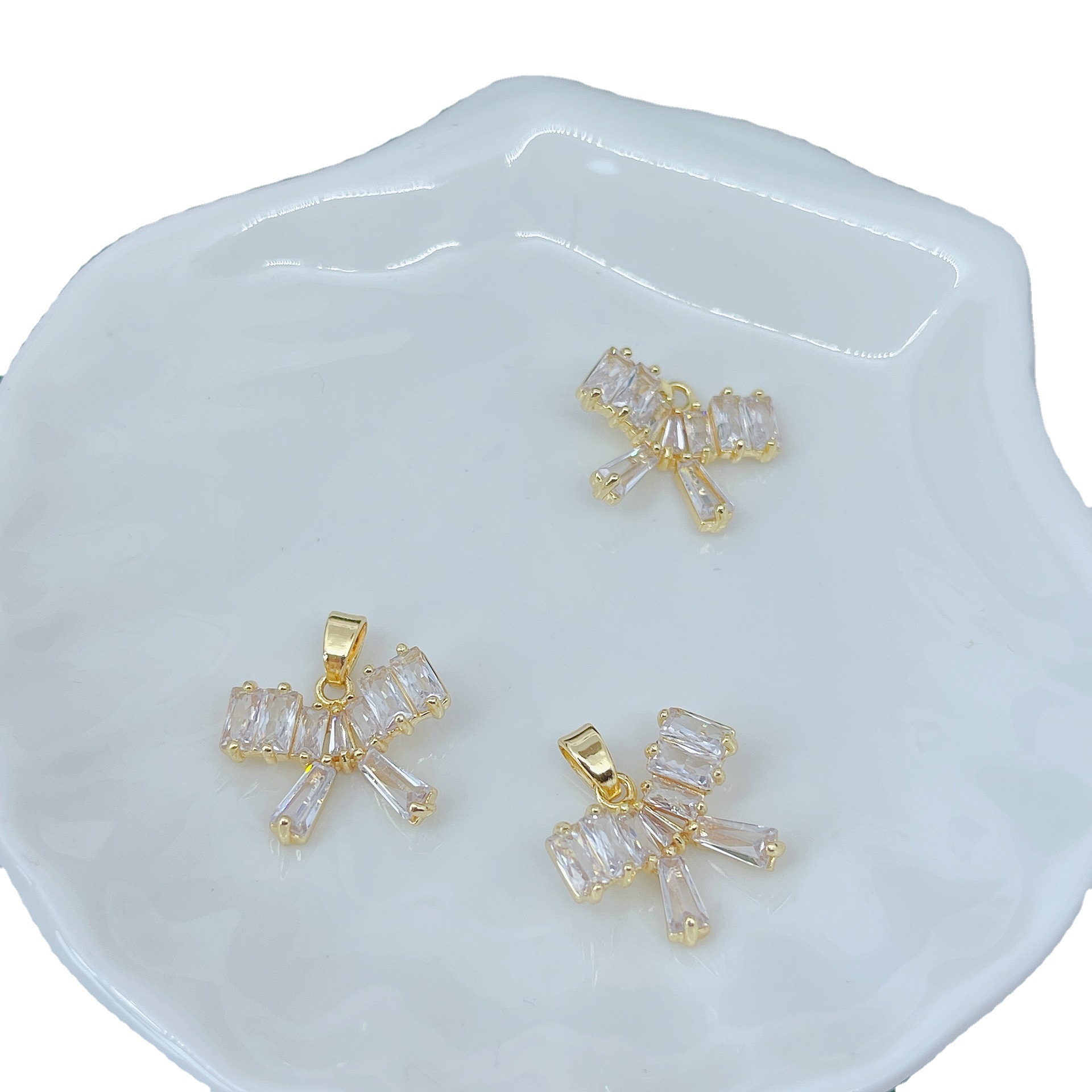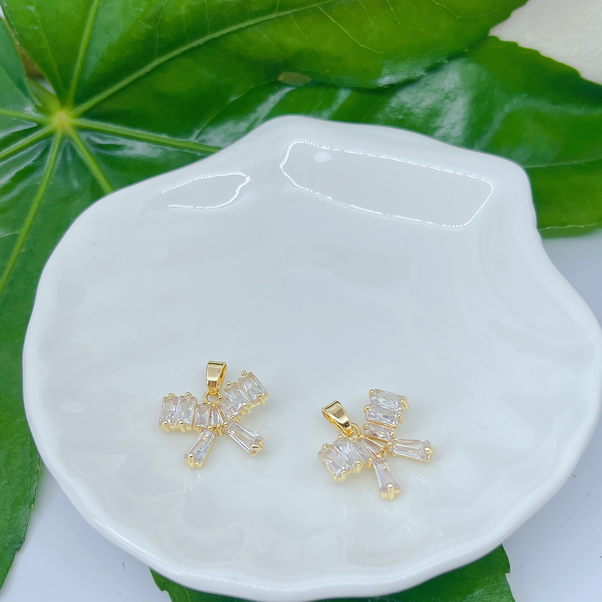 新款热卖款欧美时尚闪亮梯方蝴蝶结项链吊坠耳环服饰DIY配件源头