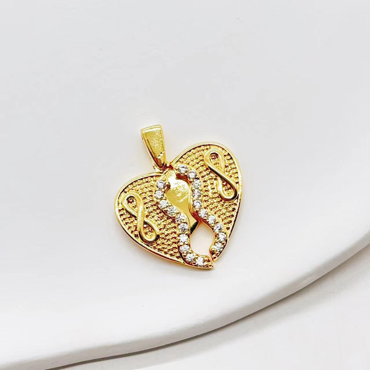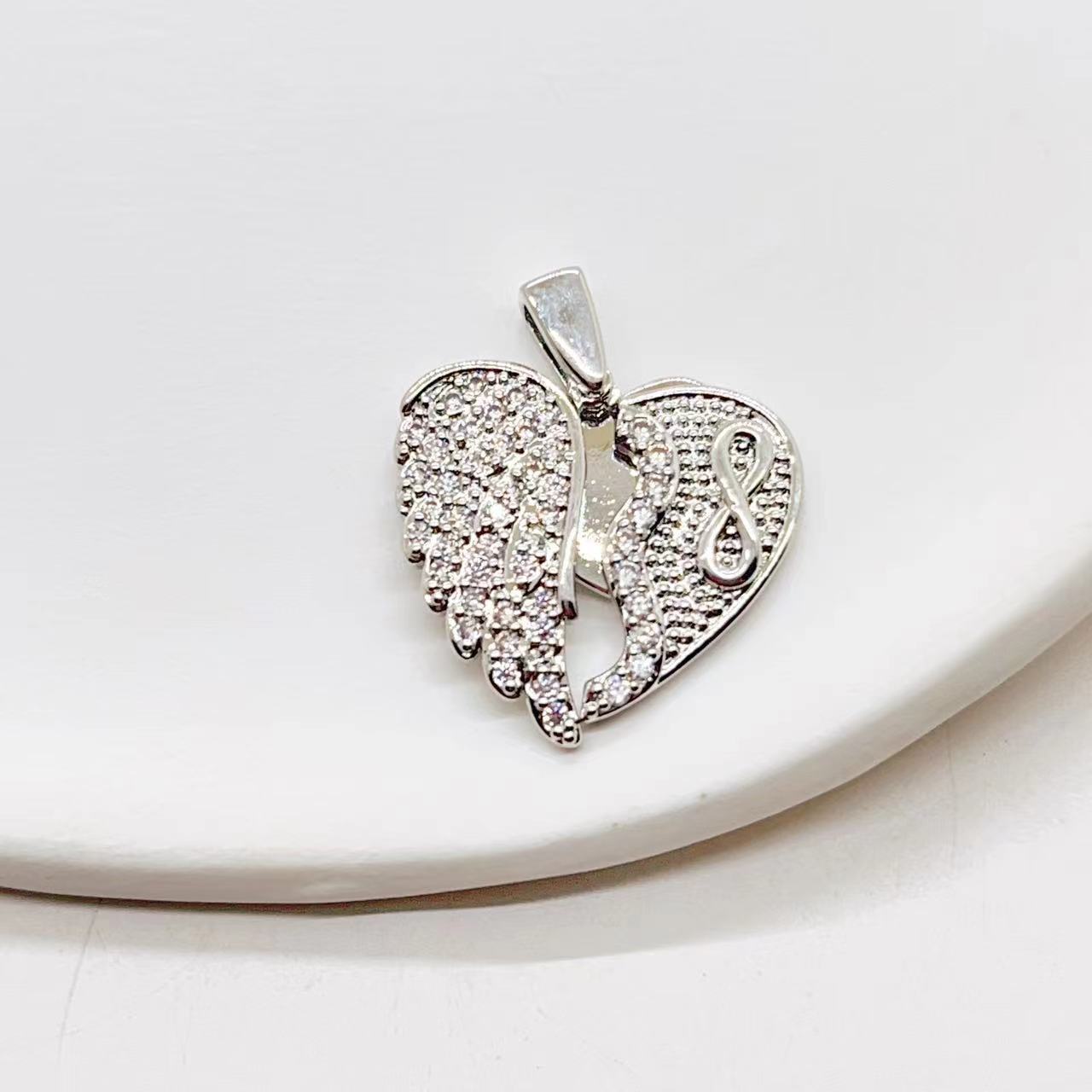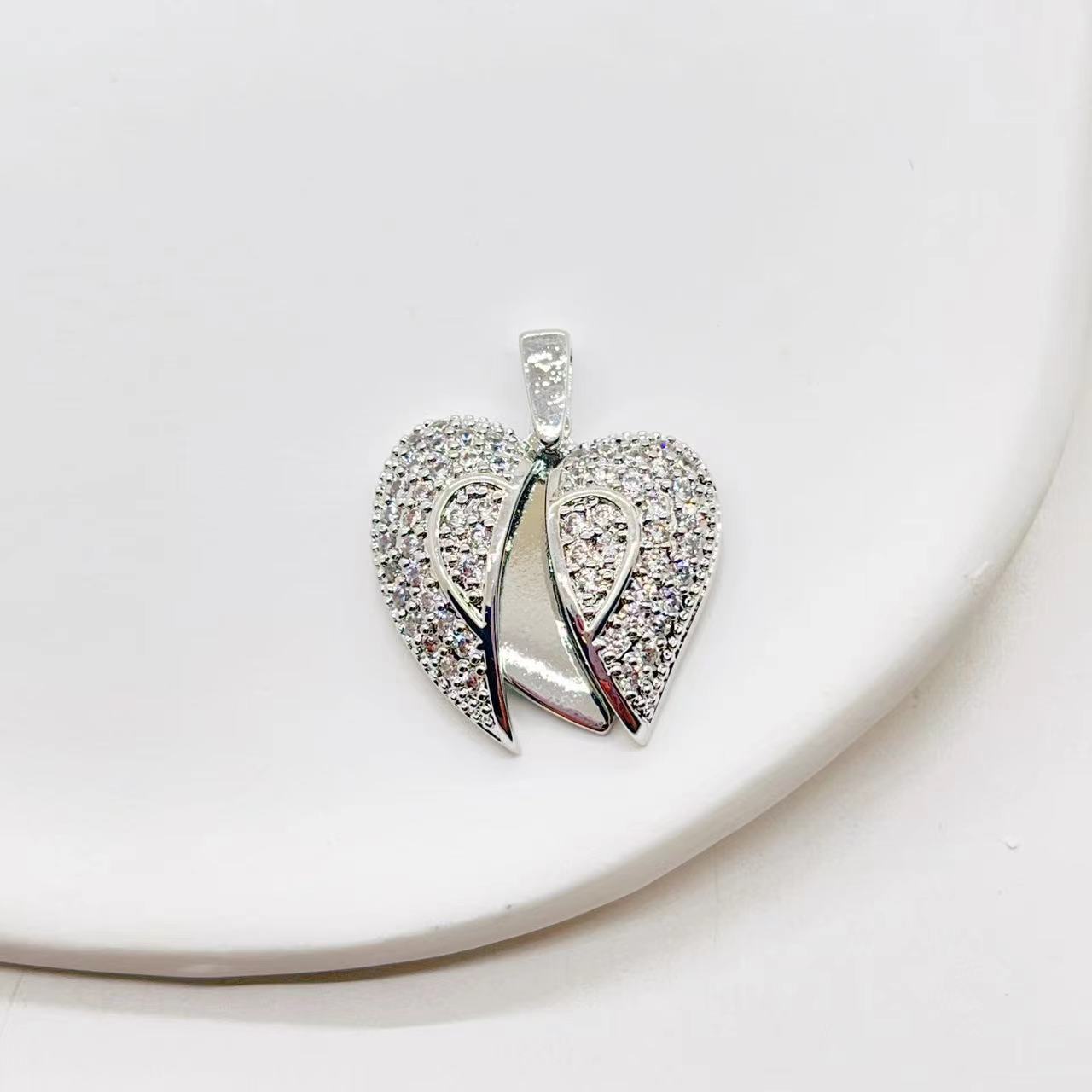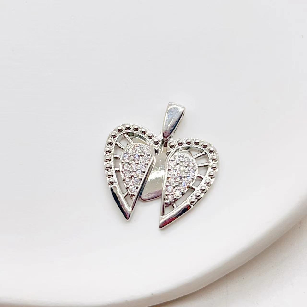 欧美跨境新品桃心开合铜镀真金微镶锆石吊坠DIY手链项链挂件