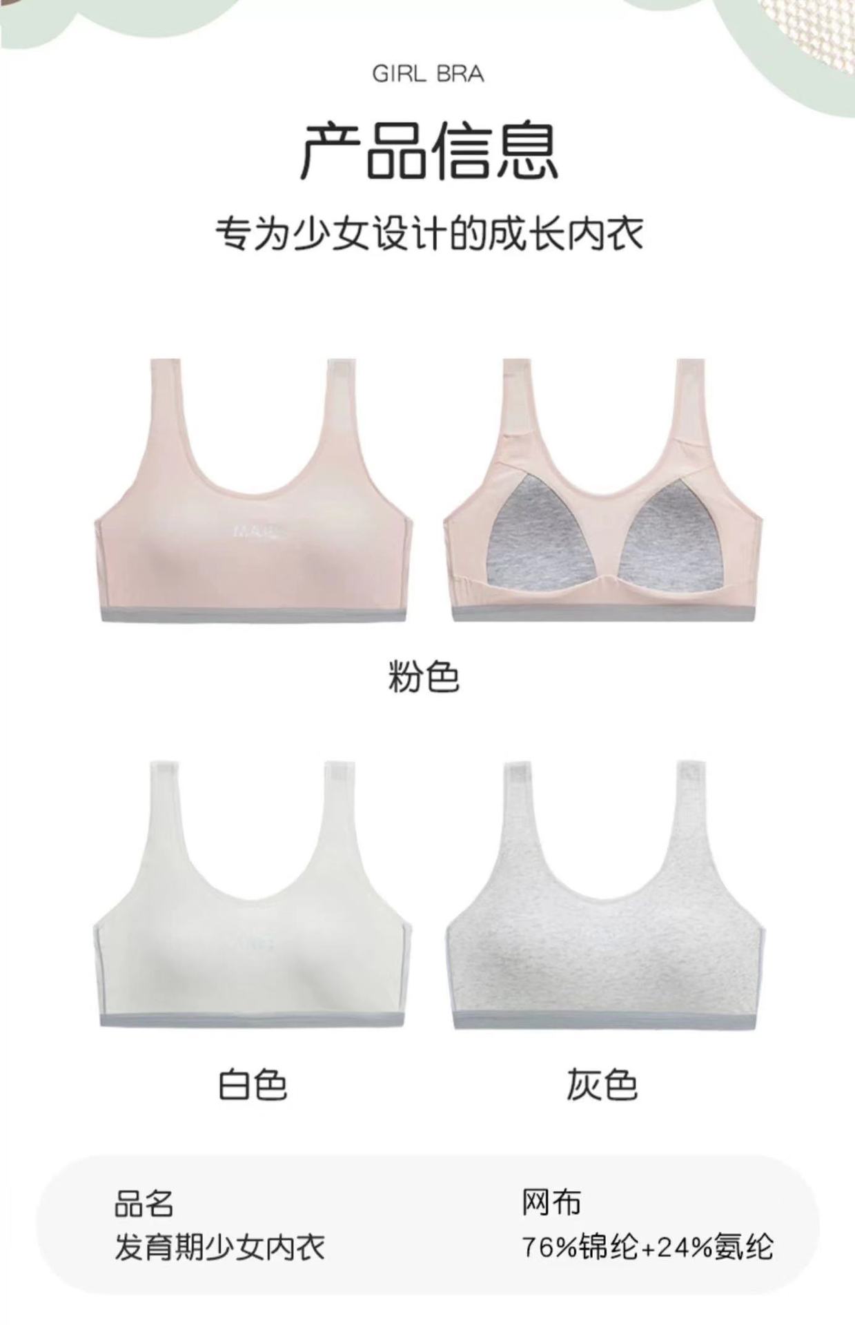 发育期少女款无痕内衣中学生文胸女孩纯棉无痕舒适薄款透气小背心