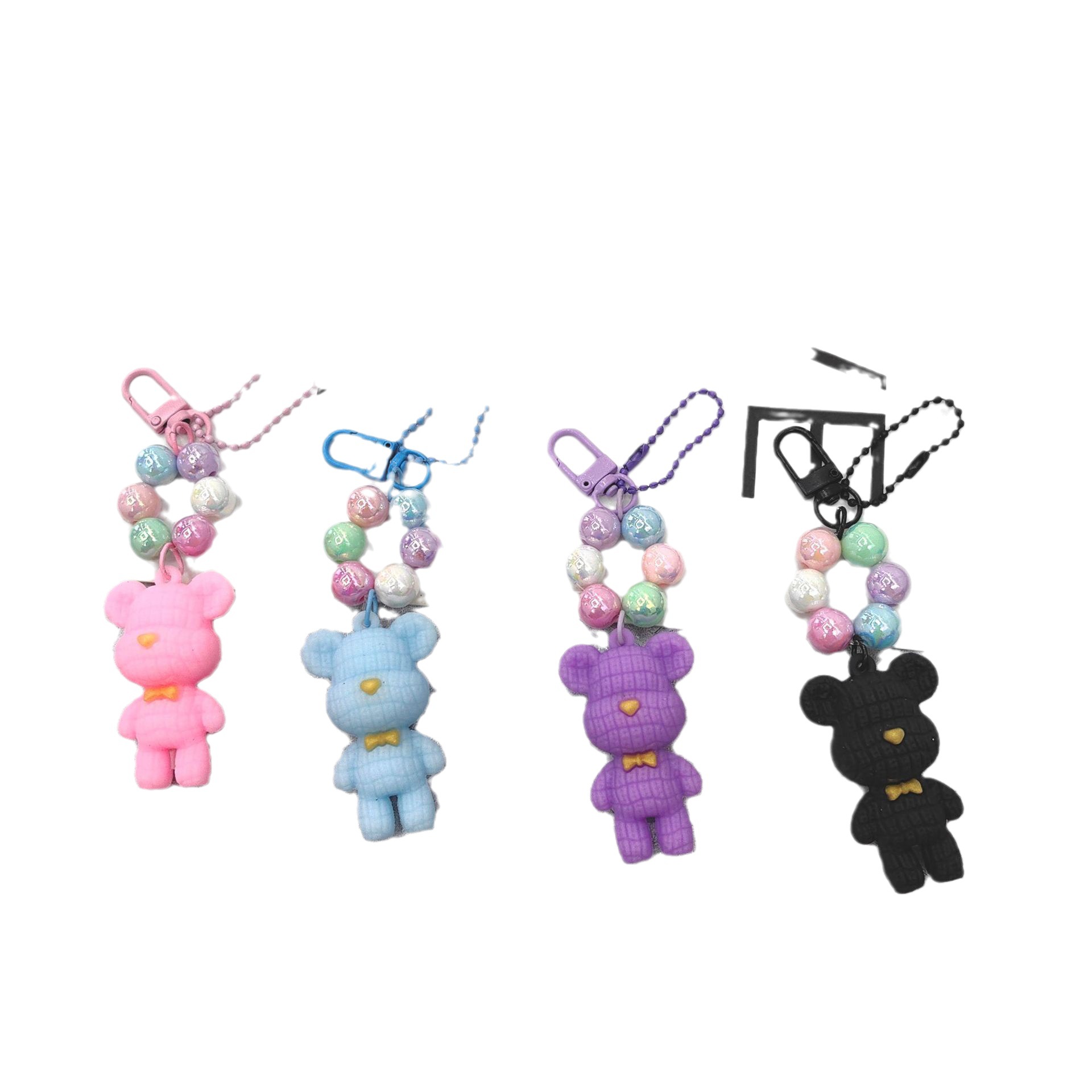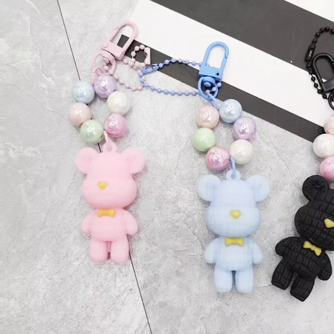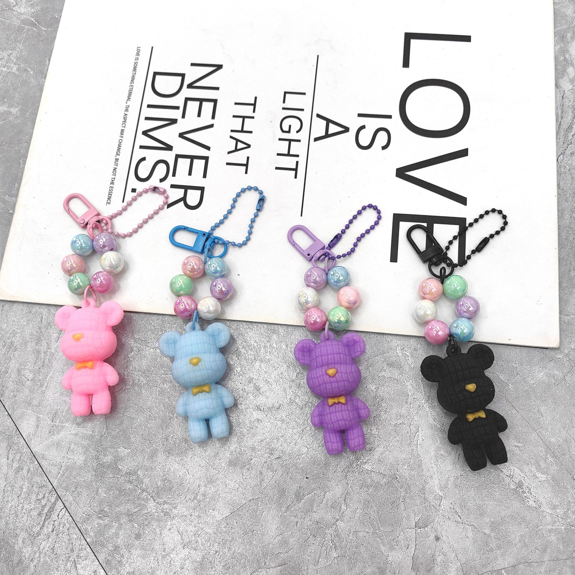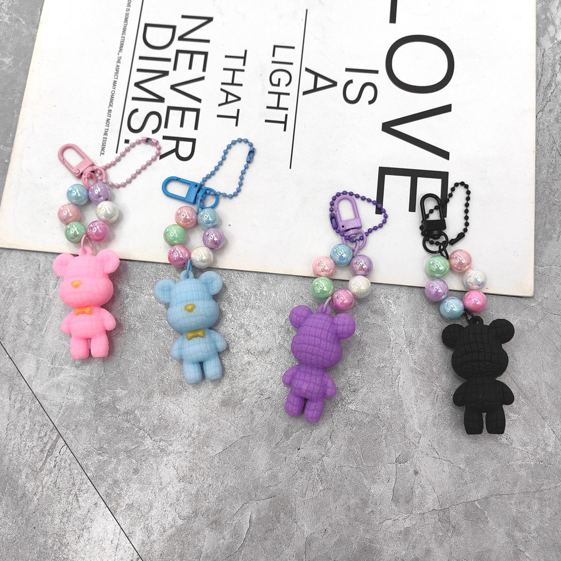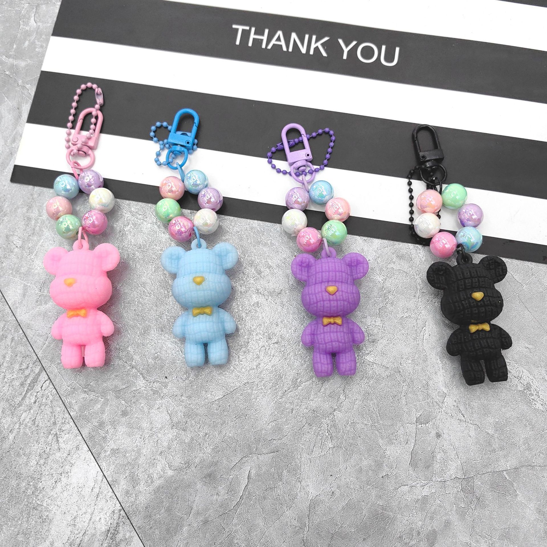 新款珠子软胶毛线熊钥匙扣挂件彩色小熊钥匙链暴力熊包包挂件批发