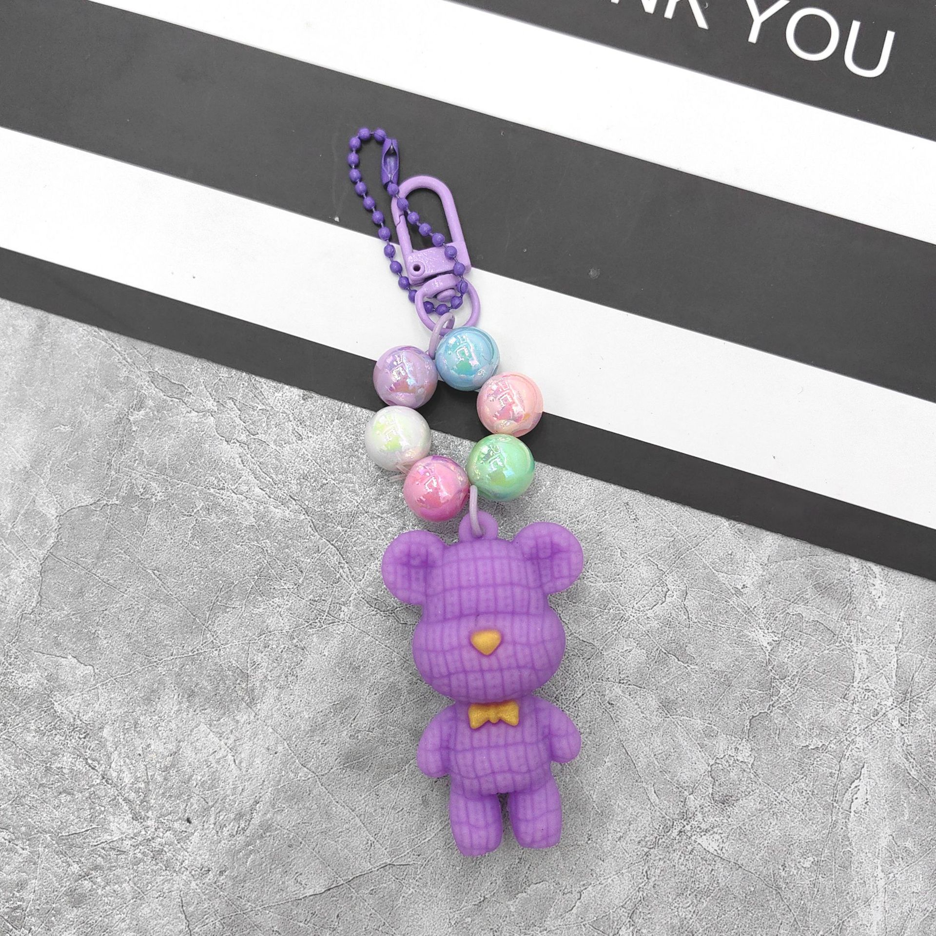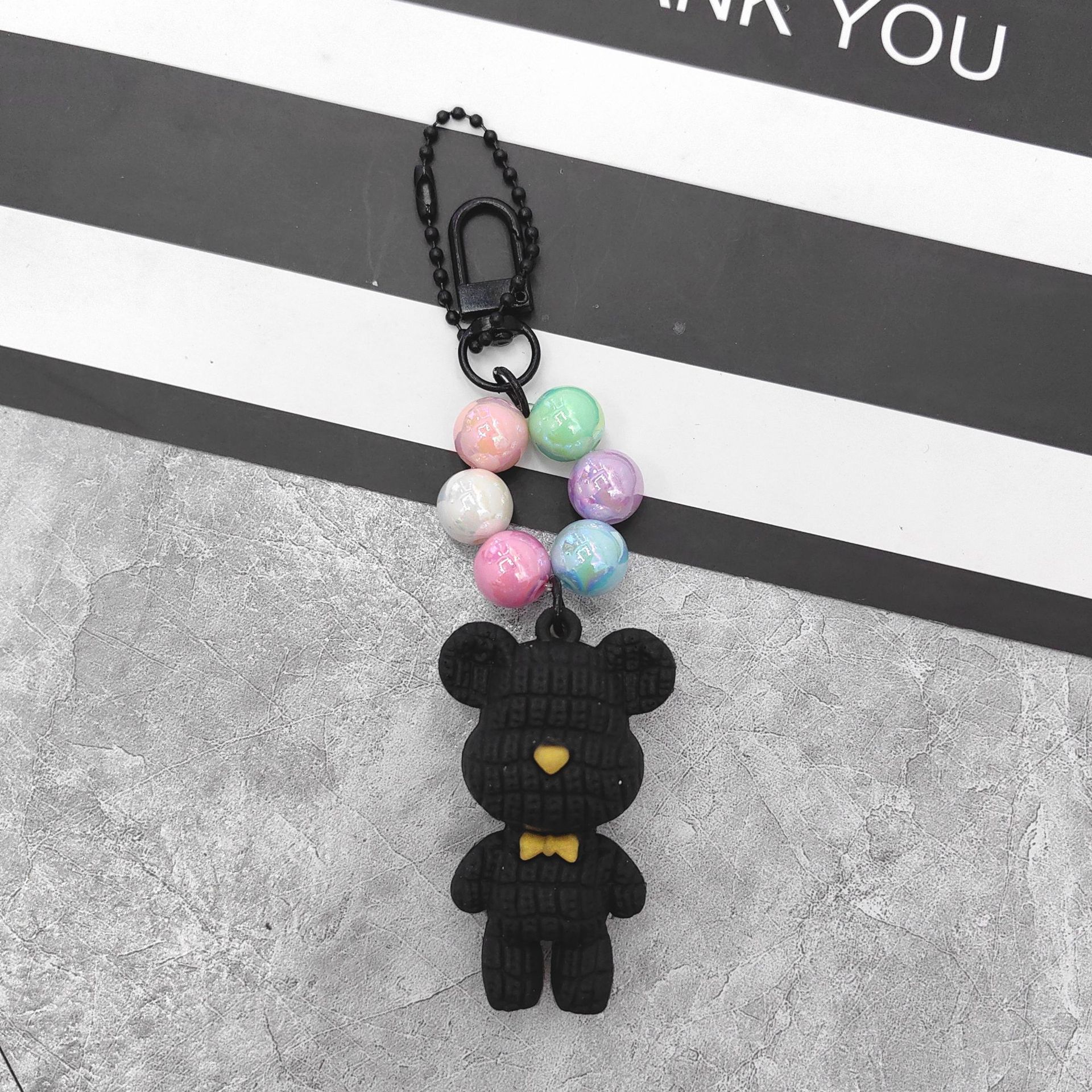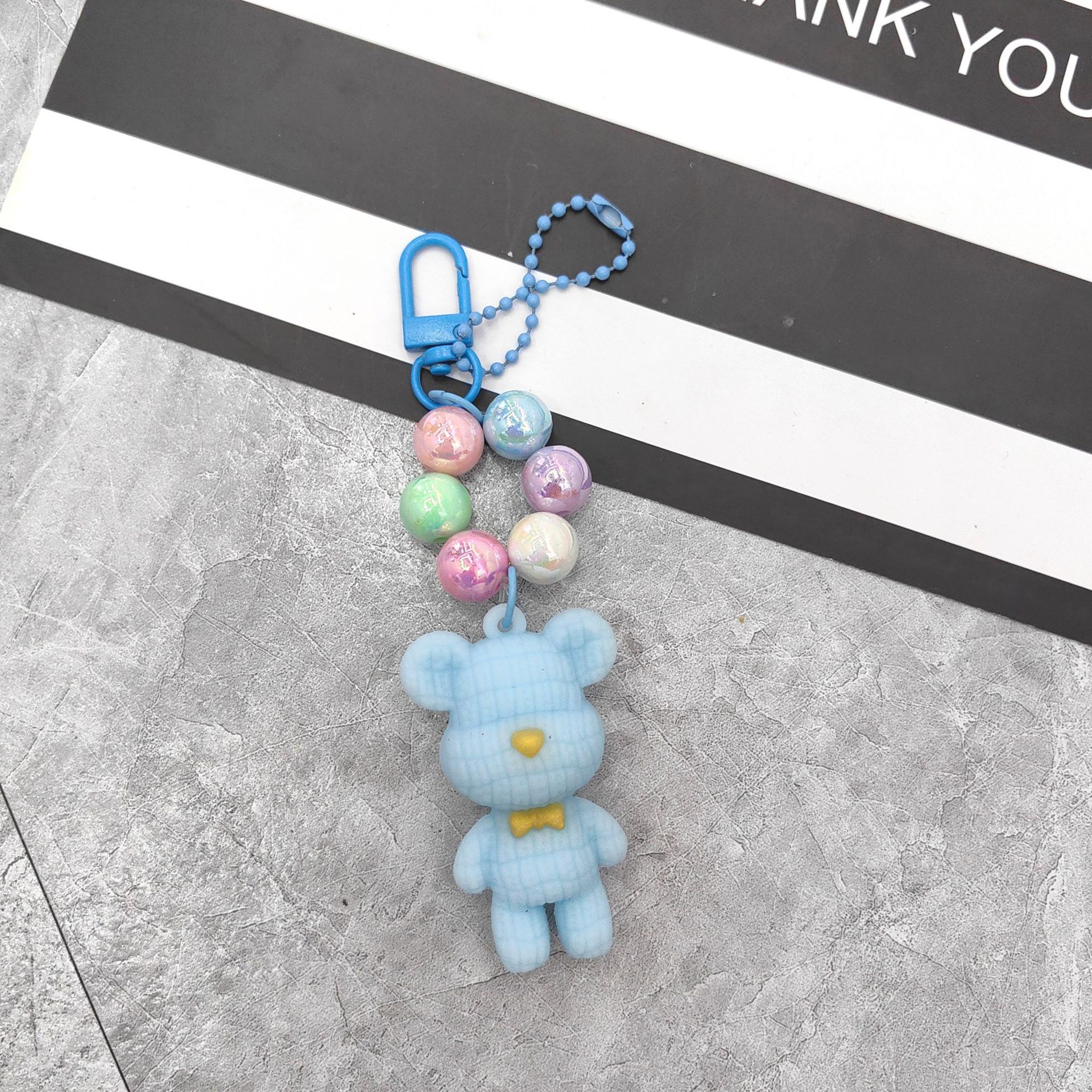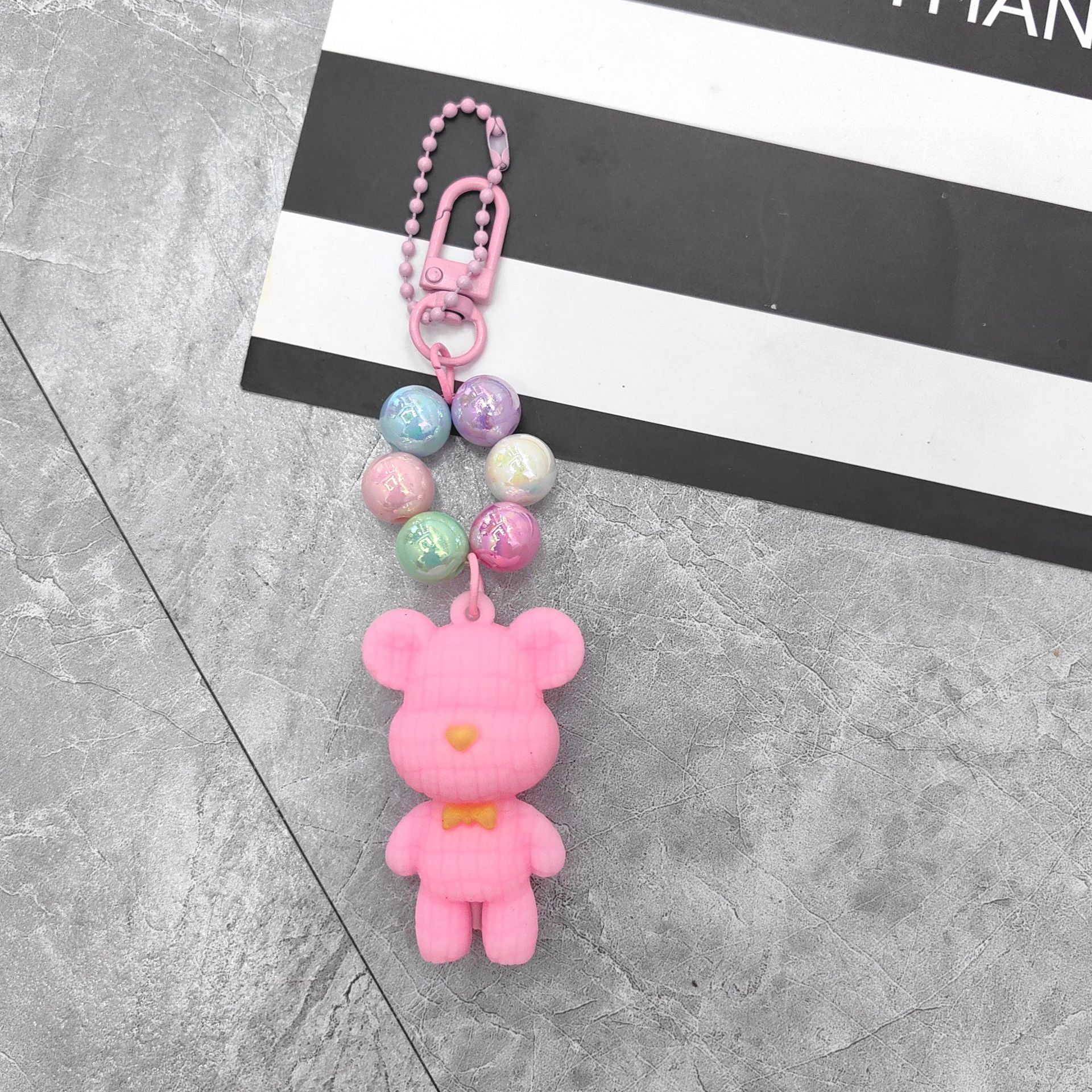新款珠子软胶毛线熊钥匙扣挂件彩色小熊钥匙链暴力熊包包挂件批发