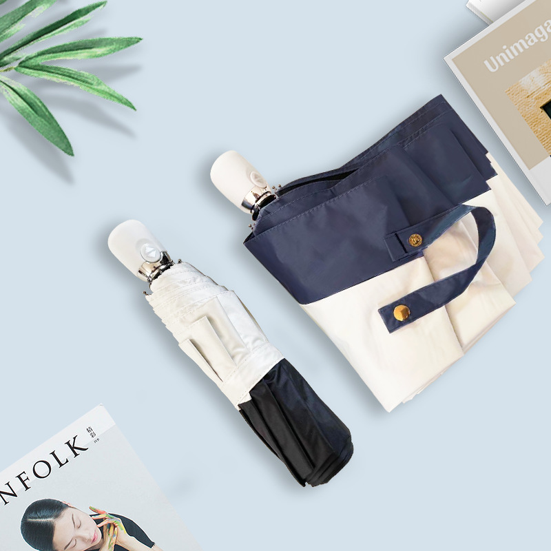 全自动折叠太阳伞拼色雨伞三折黑胶防晒遮阳晴雨两用伞礼品广告伞